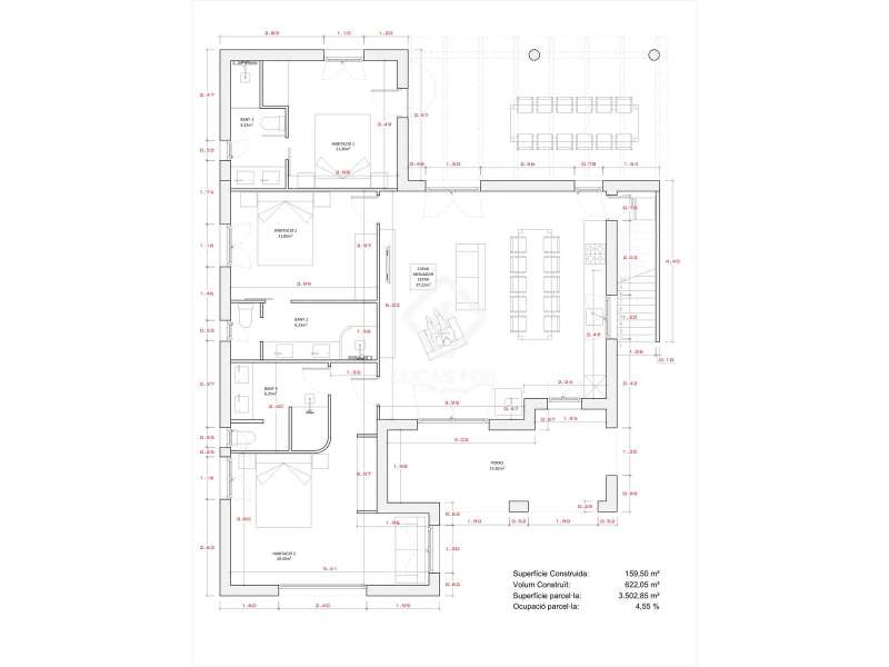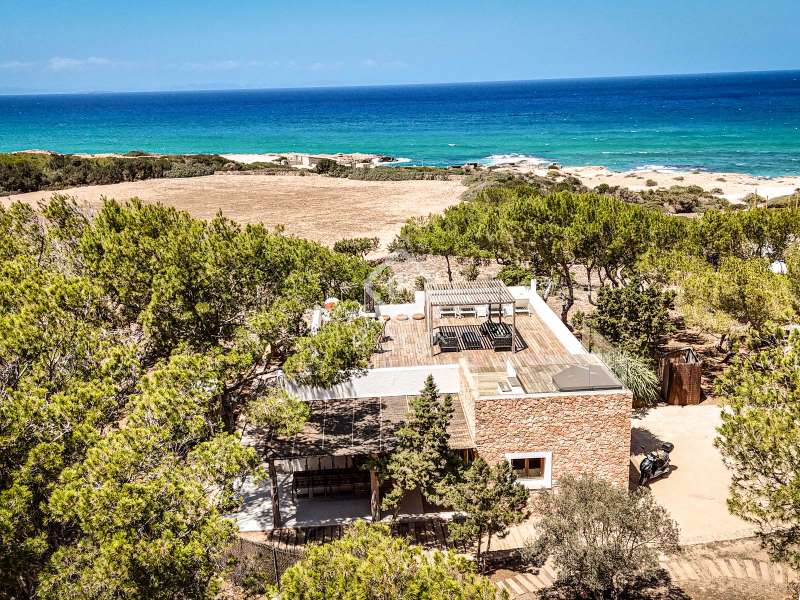 Exclusive and unique opportunity on the island of Formentera, one of the jewels of the Balearic Islands. This traditional house with a flat, whitewashed roof offers genuine style and an unparalleled living environment, just a few metres from the beach. With a generous area of 150 m², this villa is designed for comfort and well-being. From the moment you arrive, you will be captivated by the spacious 40 m2 living room, filled with natural light and offering an impressive view of the nature. The 3 bedrooms, each with their own bathroom and toilet, provide intimate and luxurious resting spaces, perfect for rejuvenating after a day enjoying the sun and sea. It also offers a rooftop terrace, a true paradise with sea views, a jacuzzi invites you to relax while admiring the views. With seating areas, a pergola for shade during the day, and an ideal space for outdoor dining. The wooded garden of 2,600 m² offers a preserved natural environment, with a pétanque court for family entertainment in the afternoons and a covered garage to securely store your vehicles. Please contact us for further information.