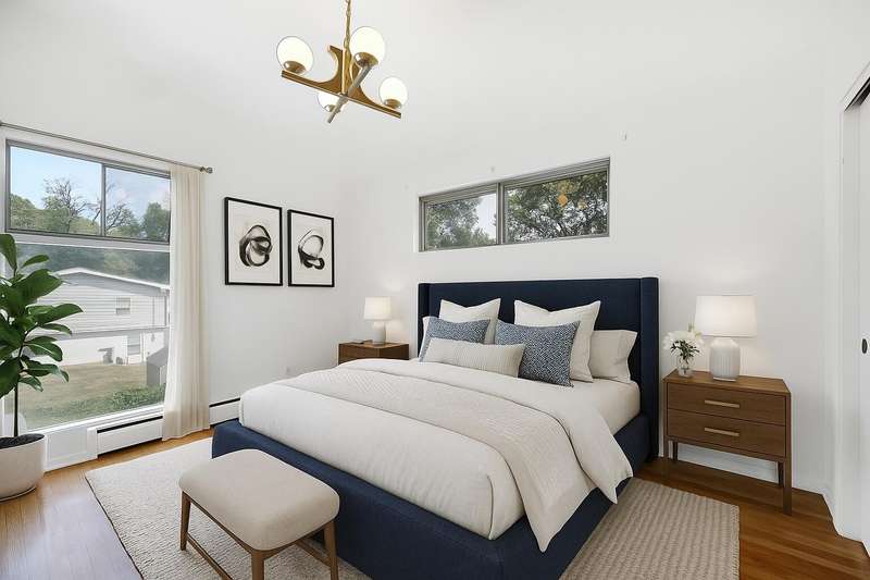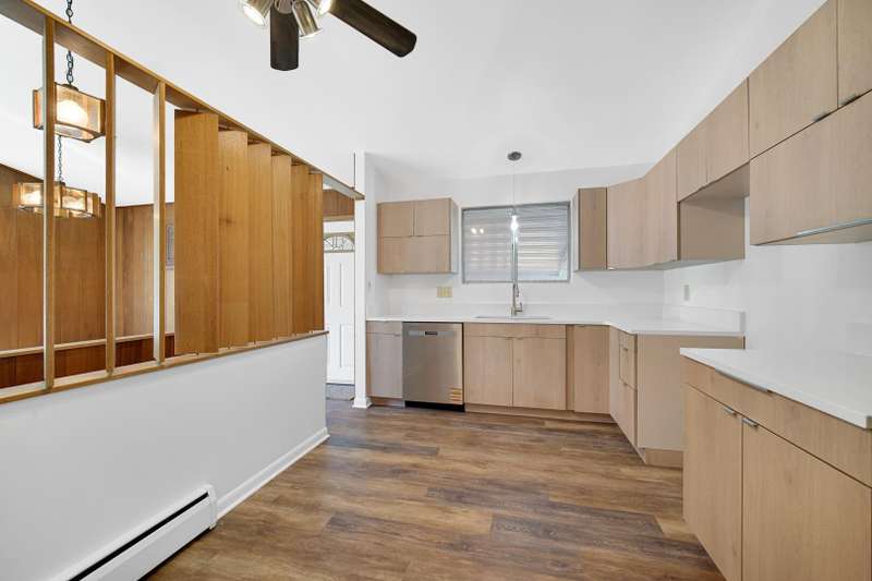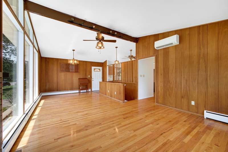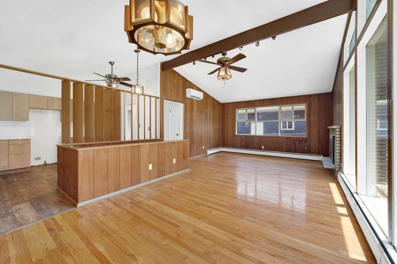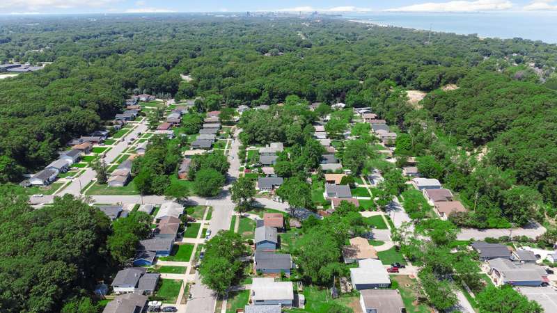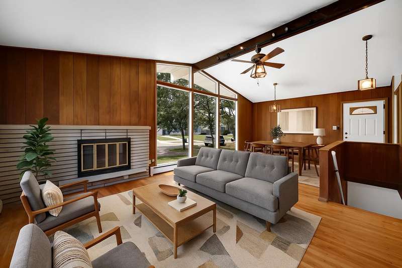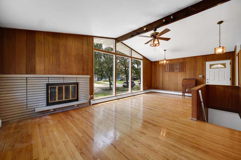 Midcentury Modern Meets 2025 in Miller Beach!Welcome to 8234 Hickory Ave. A stunning 4-bedroom, 2-bath home where iconic midcentury design blends seamlessly with contemporary upgrades. Just a few miles to the South Shore Train Station and five minutes to the beach, this is a commuter's dream and a beach lover's paradise. Step inside to vaulted, beamed ceilings, floor-to-ceiling windows, gleaming hardwood floors, and a classic midcentury layout with a wood burning, limestone faced fireplace. The fully renovated kitchen features sleek cabinetry, quartz countertops, gas range and energy-efficient stainless steel appliances. The layout also offers flexibility for a dining area adjacent to the living room or an eat-in kitchen option, perfect for casual meals or entertaining. The floor plan features three ample-sized bedrooms off the main hallway, while the primary bedroom connects directly to the main bath, offering added privacy and convenience. The fully renovated main level bathroom offers a soaking tub, floating vanity, LED mirror, and spa-like finishes. The living room and all bedrooms are equipped with modern split systems, providing efficient cooling in the summer, while the entire home stays cozy in winter with efficient boiler heat. The walk-out basement offers a spacious family room, a fourth bedroom or office, a fully renovated modern three-quarter bath, a laundry area with a utility sink, plenty of storage and a bonus workshop space. Located on a quiet, dead-end street this house is ready to your new home!