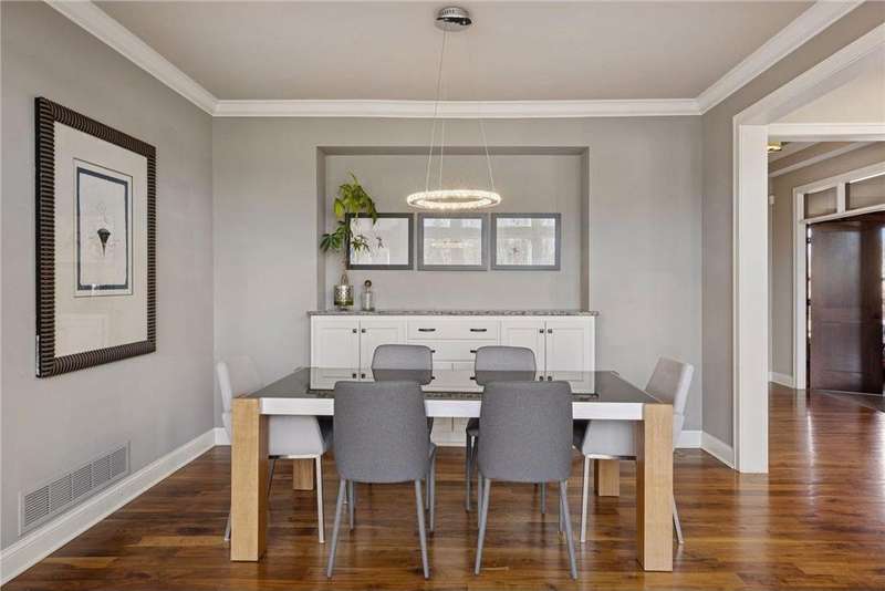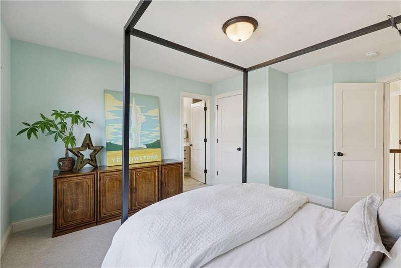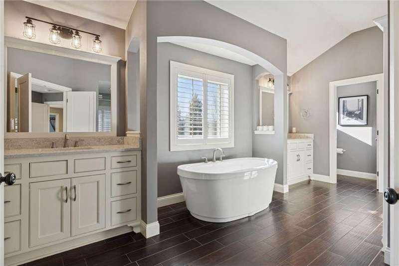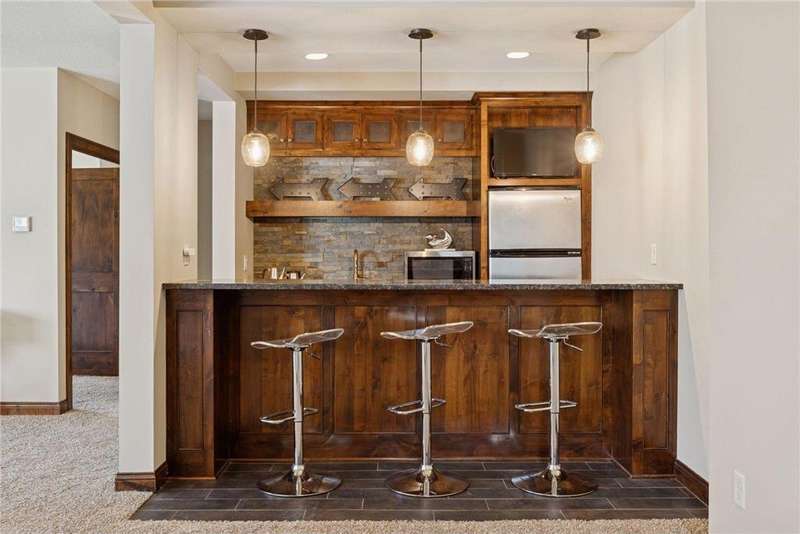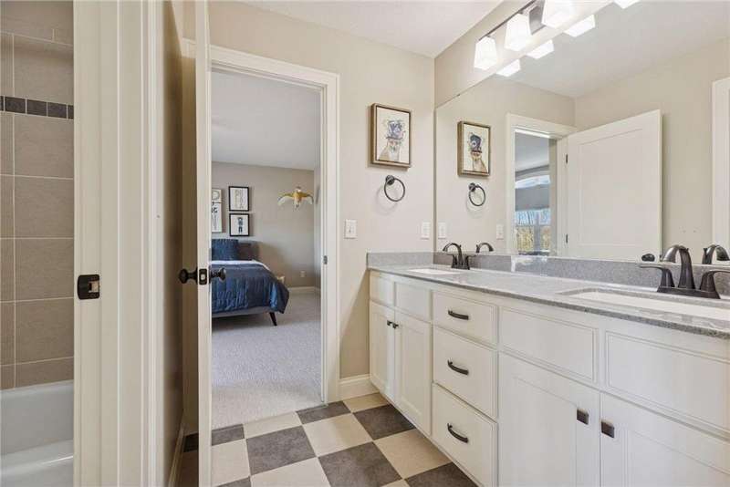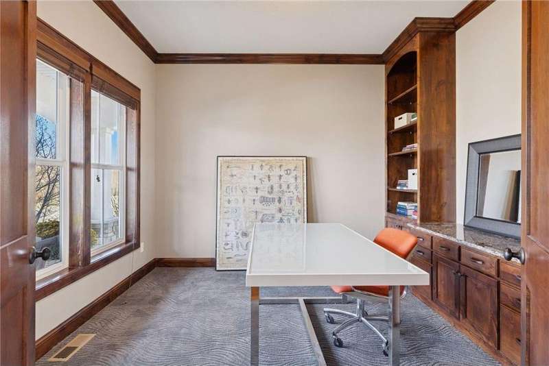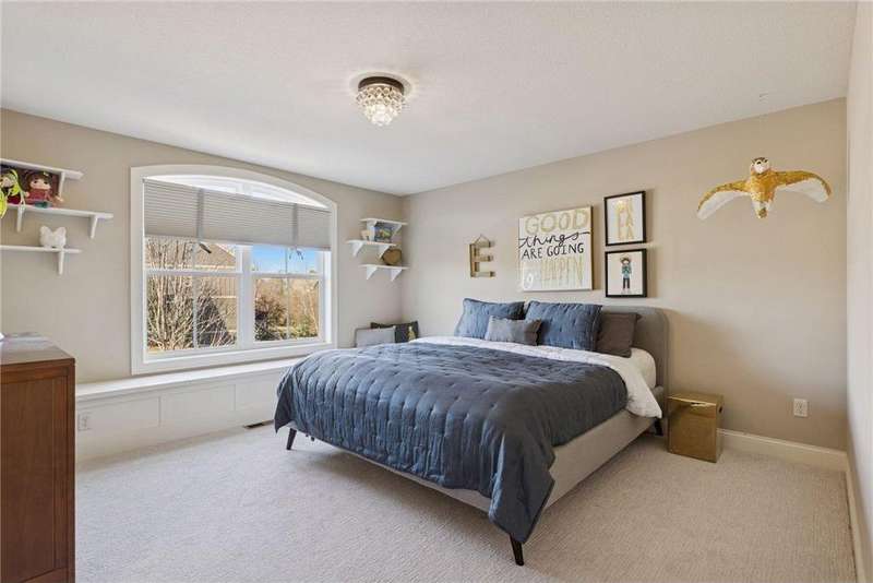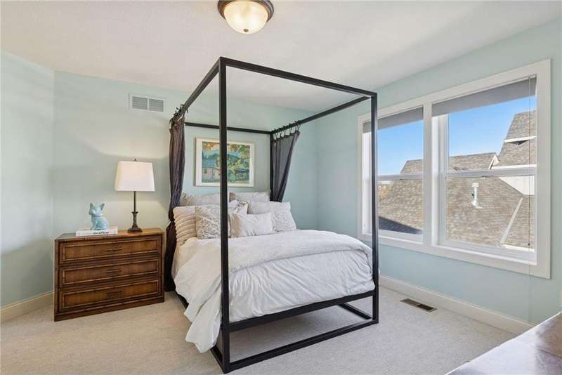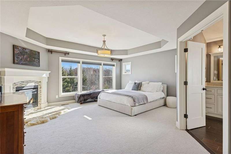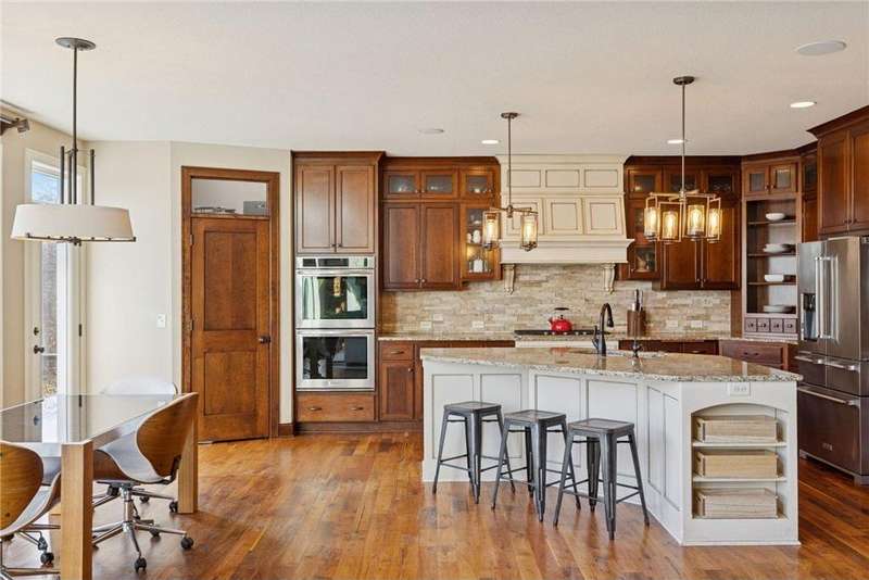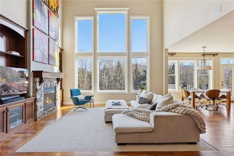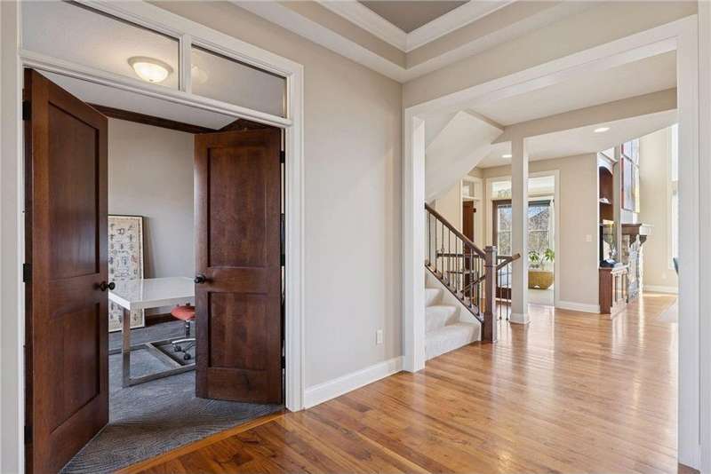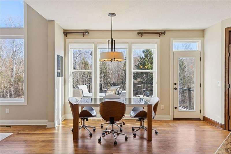 Beautifully finished 2-story home set on a quiet cul-de-sac with a private, fenced backyard overlooking serene nature views. Rich architectural details, wood floors, and sun-filled spaces create a warm, move-in-ready setting. The main level features a grand 2-story Great Room with a full wall of windows and a 2-sided fireplace shared with the inviting Sunroom. The large Kitchen impresses with an enameled island with breakfast bar, walk-in pantry, double wall ovens, and furniture-style cabinetry for the cooktop. Formal and Informal Dining spaces offer flexibility for everyday living and gatherings. A spacious Mud Room provides built-in seating, open locker-style storage, and its own walk-in closet, plus a convenient half Bath. Upstairs, the Primary Suite feels luxurious with a fireplace-accented seating area and an inset ceiling for added definition. The private spa-like Bath includes dual vanities, soaking tub, separate shower, and private water closet plus a large closet with an organized closet system. Bedroom 2 has a full en-suite Bath with tub, while Bedrooms 3 and 4 share a Jack & Jill Bath. The large upper-level Laundry features upper cabinets and open shelving under the counter for easy organization. The walkout lower level adds exceptional versatility - ideal for multi-generational living or effortless entertaining. Highlights include a 5th Bedroom, 3/4 Bath, Wet Bar with fridge & seating, media-ready Family Room, Recreation Room, Flex/Storage Room, and built-in cabinetry. Step out to the expansive Patio or enjoy the newer Deck above. Neighborhood amenities just steps away include an outdoor pool, clubhouse, walking trails, and an outdoor sports court. A welcoming covered front porch completes this exceptional home!