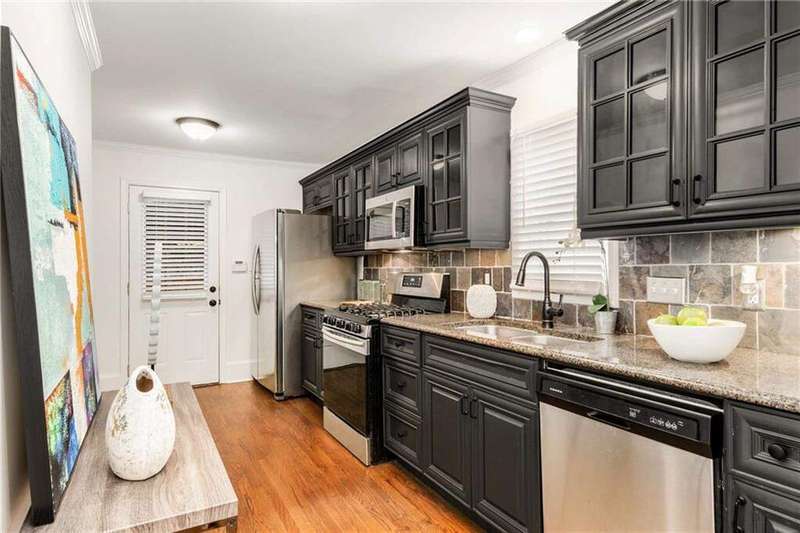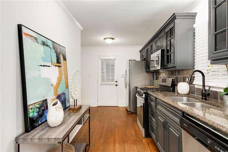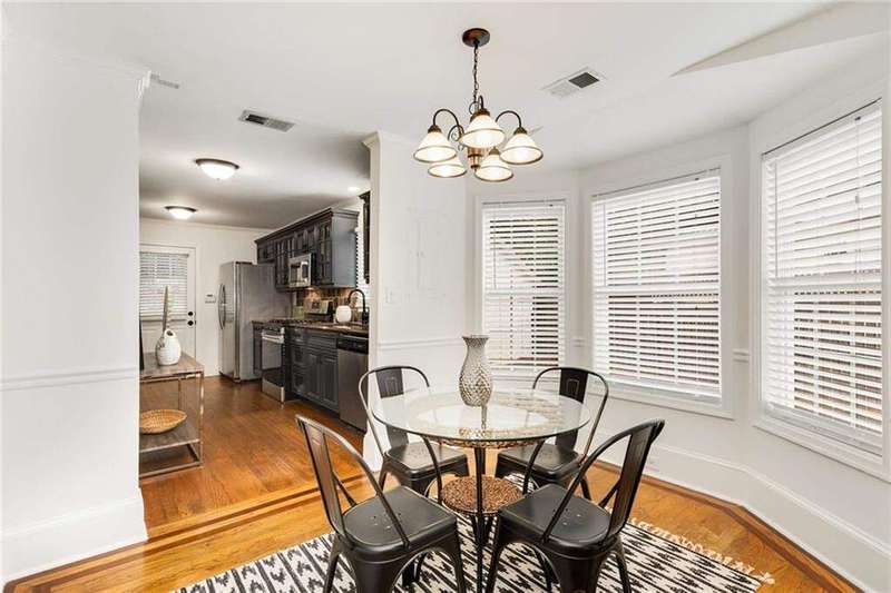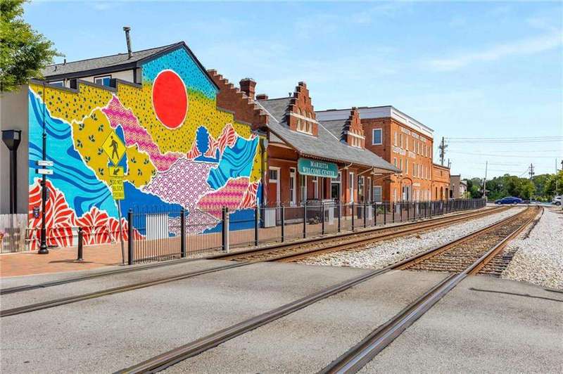 Discover the perfect blend of character, convenience, and comfort with this charming bungalow, ideally located within walking distance of Marietta's vibrant Town Square. Offering timeless details and modern upgrades, this property provides a lifestyle that's as welcoming as it is practical. Step inside to find a warm and inviting family room highlighted by gleaming hardwood floors, built-in shelving, and a decorative fireplace that creates the perfect centerpiece for gatherings or quiet evenings in. The thoughtfully designed kitchen features stained cabinetry, granite countertops, and stainless-steel appliances, while the bay-window dining nook provides an ideal spot to enjoy meals with natural light streaming in. The spacious primary suite offers a private retreat with its own ensuite bathroom and walk-in closet. A second bedroom, paired with a nearby full bathroom, makes this home ideal for a family, guests, or a home office. Conveniently located, the laundry area includes a washer and dryer for added ease. Step outside to enjoy a large deck overlooking a private backyard-perfect for entertaining, relaxing, or weekend cookouts. The detached garage provides space for one car and a workshop, with extra parking available in the driveway. Beyond the property, you'll love being just steps from Marietta Square, where you can explore locally owned restaurants, boutique shops, art galleries, and the lively weekend farmer's market. This home combines small-town charm with modern living in one of Marietta's most sought-after locations.