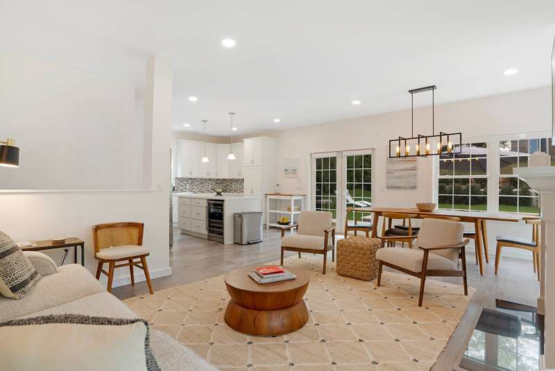 RR# 25-1074 Available for rent, this 2024 custom modular home offers four bedrooms and 3.5 baths across 2,100+\- square feet of thoughtfully designed living space in the heart of East Hampton. This single-level residence combines modern design, high-end finishes, and an ideal location close to East Hampton Grill, Nick & Toni's, and Serafina. The open-concept living, dining, and chef's kitchen areas are filled with natural light, creating a welcoming flow for entertaining and relaxation. The living room is centered around a sleek custom gas fireplace. At the same time, the designer kitchen features a cultured white marble statement island, custom cabinetry, stainless-steel appliances, an integrated double sink, a wine cooler, and a professional-grade gas stove. Every room is equipped with a high-definition flat-screen television, and Wi-Fi extends throughout the property to meet both indoor and outdoor needs. Stylishly curated furnishings, contemporary artwork, and elevated fixtures add sophistication throughout the home. A sparkling heated 20X20 pool with stone patio and a custom outdoor shower, together with illuminated perennial gardens, provide ample outdoor space for relaxing or entertaining. This home offers both convenience and luxury in one of the most desirable East Hampton locations. Ready for occupancy January 2026 Annual or Seasonal Listing ID: 926181