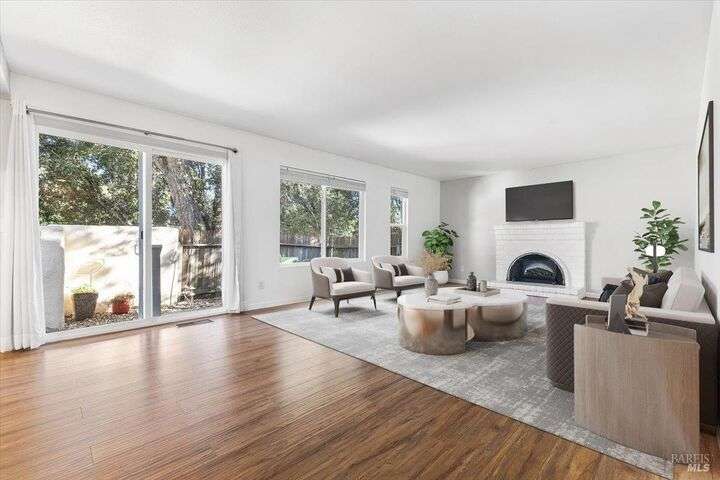 Nestled towards the back of the desirable Brush Creek Villas, 802 Adobe Drive offers tranquil, single-level living with easy access to the scenic Brush Creek Trail and community amenities. This 2-bedroom, 2-bath home features 1,100 sq. ft of light-filled space with a cozy fireplace, and two private patios. Both bedrooms designed with comfort and accessibility in mind, featuring sliding glass doors that lead to a private, fenced patio sitting area for your own personal oasis. 2 well-appointed bathrooms, providing ample space for relaxation and daily living. Enjoy the convenience of an attached 2-car garage and low-maintenance lifestyle. The well-kept community offers exceptional amenities including a pool, tennis courts, bocce ball, and a club house set among beautifully landscaped grounds. Close to parks, shopping, and local wineries, this peaceful retreat offers the perfect blend of nature, comfort, and community.