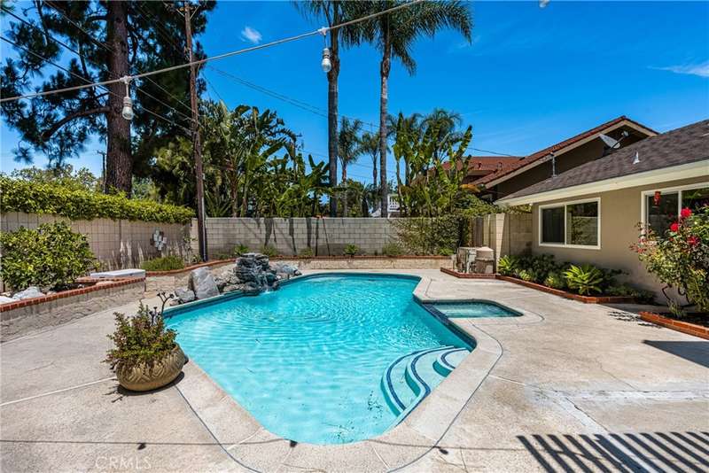 Outdoors, you'll find a sparkling pool with a new pump, a relaxing spa, and a charming fountain--all recently refreshed with acid washing. A covered patio provides the perfect spot for outdoor dining, and a convenient half bath with backyard access makes pool days a breeze.