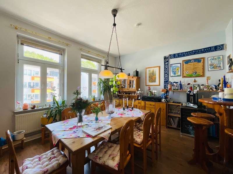 Our charming investment, built in 1913, has been lovingly maintained by the owners over the years, continuously modernized and is now in a very good general condition that does not require any further inventions. The three-family house is divided into two residential units of 73 m² each (ground floor and second floor) and one unit (second floor) with approx. 60 m² of living space. The two larger apartments have been rented to the same tenants for many years. The apartment on the second floor, which is ready to move into, is to be let to a new tenant in the short term. With a total annual net cold rent of EUR 17,040, the house certainly offers further development potential. The new owner is already achieving a factor of 19.3. The rent per square meter for the ground and second floor apartments is EUR 5.75 and EUR 6.85 respectively. We will be happy to send you an online viewing link of the property if you are interested.