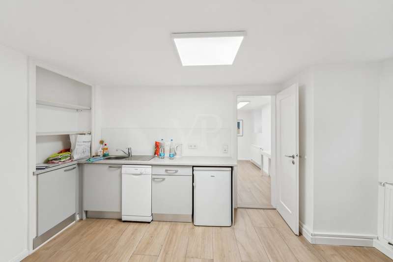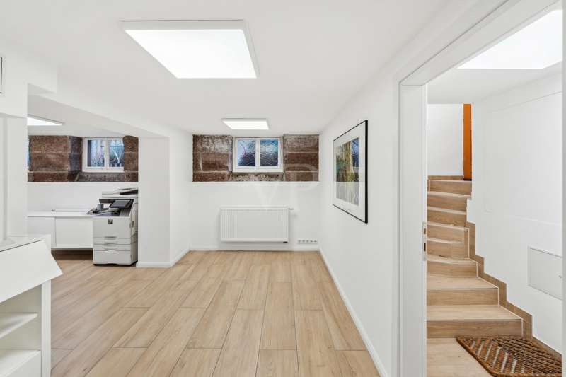 This special property boasts a prime inner-city location. The building was constructed around 1870 and is a listed building. On the first floor there is a currently rented 5-room apartment with a living space of approx. 139.9 m² and a considerable ceiling height of approx. 2.58 m, which conveys a spacious feeling of living despite the suspended ceilings. In the basement there is a vacant office unit with a further 82.1 m² and a room height of 2.17 m. Both units could also be connected via an internal staircase. The living space is distributed over five rooms, two shower bathrooms with window and washbasin, one with space for a washing machine, one with WC and towel radiator. A separate guest WC underlines the comfort of this property. The central hub of the apartment is a spacious eat-in kitchen, which is equipped with a fully fitted kitchen and large electrical appliances. The fittings are practical and designed to last. Wooden insulated glass windows with manual shutters ensure a pleasant living atmosphere, while heating is provided by a gas central heating system with hot water preparation. The floors are fitted with hard-wearing designer vinyl flooring on the first floor and wood-look tiles in the basement, while easy-care tiles have been laid in the bathrooms and toilets. The exposed sandstone walls at parapet height in the basement give this unit a special touch. A kitchenette increases the functionality of these rooms and enables versatile use as a separate office or spacious hobby room. The apartment on the first floor is currently rented out to students on a room-by-room basis. The annual rental income amounts to €26,880 plus ancillary costs. The office in the basement was last rented for € 14,778 / year. All in all, this property is an attractive opportunity for buyers looking for a spacious home with historical character and contemporary furnishings or investors looking for a sustainable investment with special depreciation opportunities. Arrange a viewing today and see the benefits of this property for yourself.