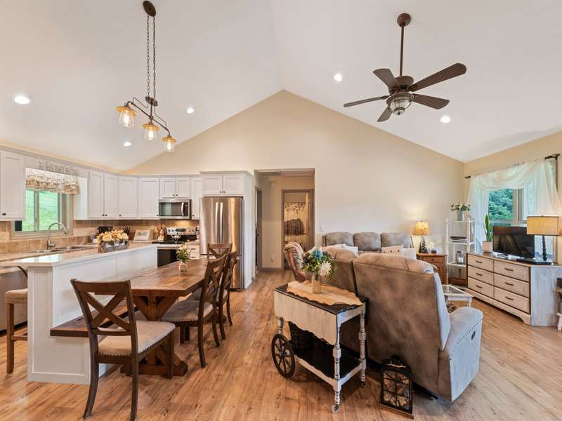 Looking for a serene setting for enjoying life not so fast paced? Welcome to 153 Trinity DR. in the sought after Crabtree area. This well cared for & maintained home provides a split bedroom open floor plan sure to please any busy lifestyle. Cozy up on the couch and gaze out at pastoral & mountain views while your pets have room to roam! Gather fresh eggs from the chicken coop and serve at the built in breakfast bar in kitchen with custom cabinets and newer stainless appliances. Large Primary suite presents with room for king sized bed, bath with garden tub & shower in addition to daylight walk in closet. Bonus Den on lower level can offer a flex space or movie room near the 2 car oversized drive in garage! The sky is the limit and easily seen from this charming home! Waynesville 20 min. Asheville 35 min. I-40 10 minutes.