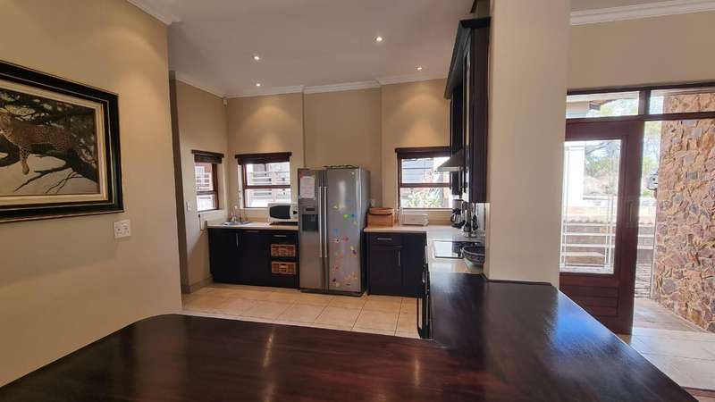 This stunning lodge is situated in a quiet area in the beautiful Elements Private Golf Estate with a great view. Lovely open plan kitchen, dining and lounge/bar area with a fireplace. Rooms are spacious, all on-suite and 2 bedrooms with outside showers and own balconies. Domestic accommodation with ample storage place. Furniture can be negotiated. Elements Private Golf Estate is a mere 2 hours from Gauteng and is currently rated as number 14 in SA. This is one for the golf enthusiast !