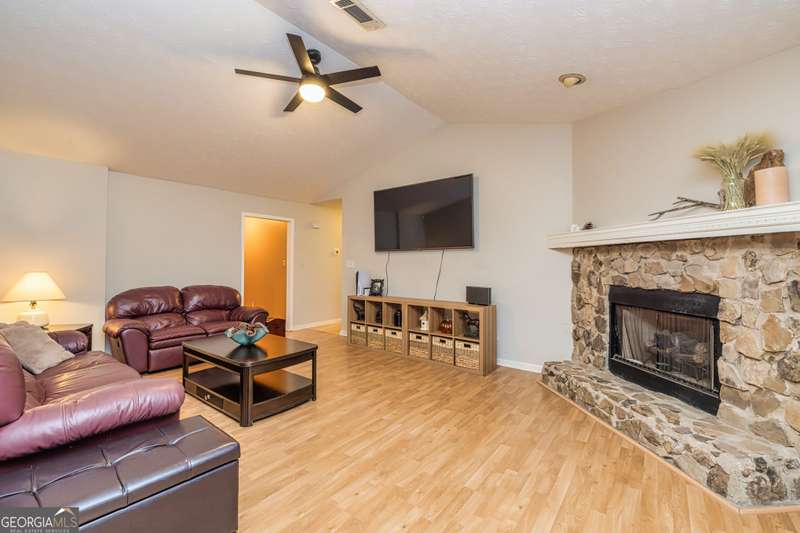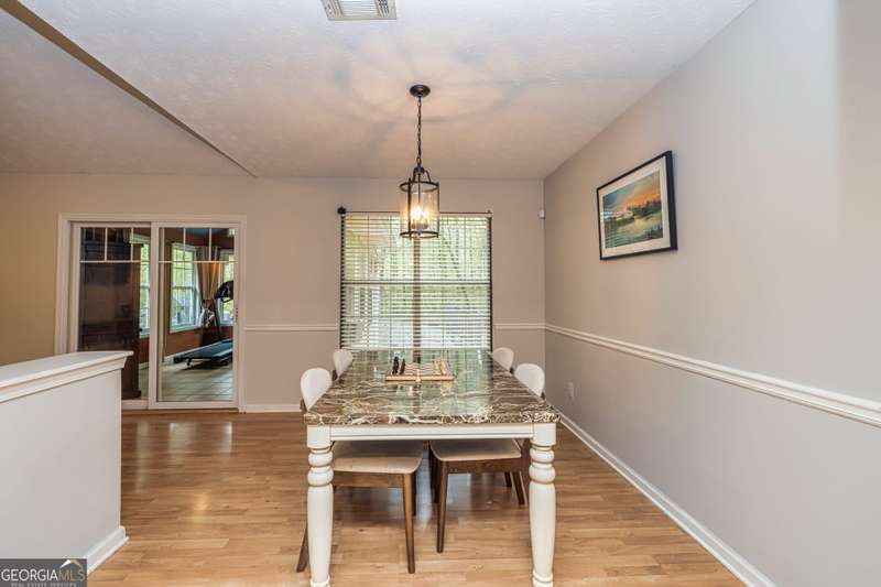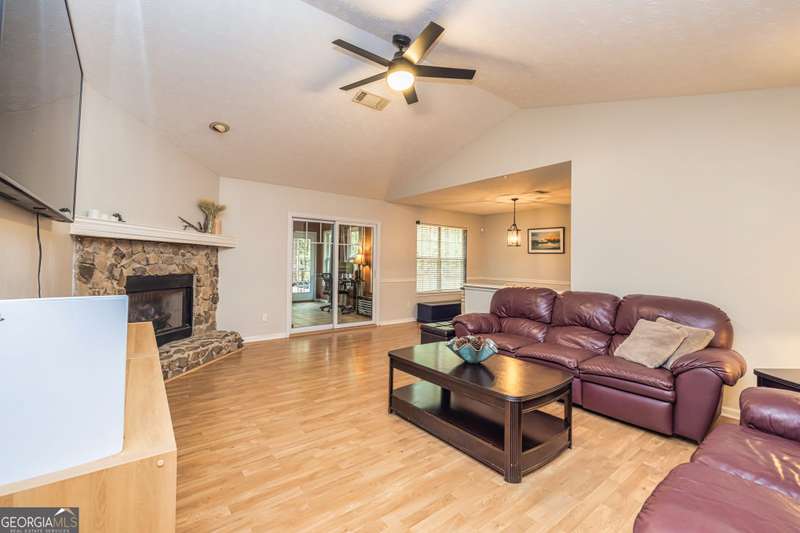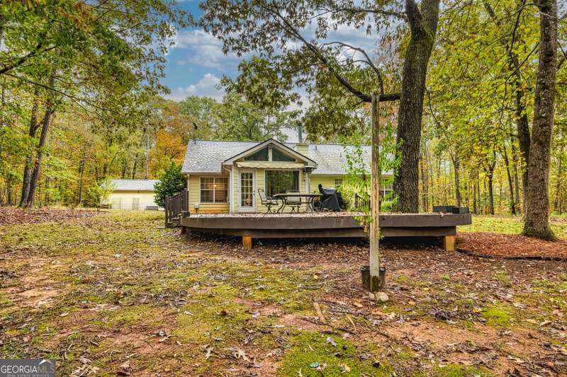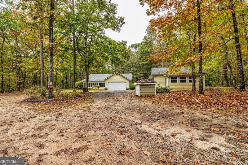This charming and spacious ranch home is set on 3.5 acres in a private, country setting, just 10 minutes from Publix and local restaurants. It includes a powered workshop that can double as a gym or office, along with an outbuilding for storage. The home features a large, vaulted family room with a stone fireplace, an open dining room, and a bright vaulted sunroom that opens to a generous deck. From the screened front porch to the welcoming foyer, the kitchen boasts soft-close cabinets, stainless steel appliances, a pantry, a full appliance package, and a cozy breakfast area. Don't miss out, so much to see!