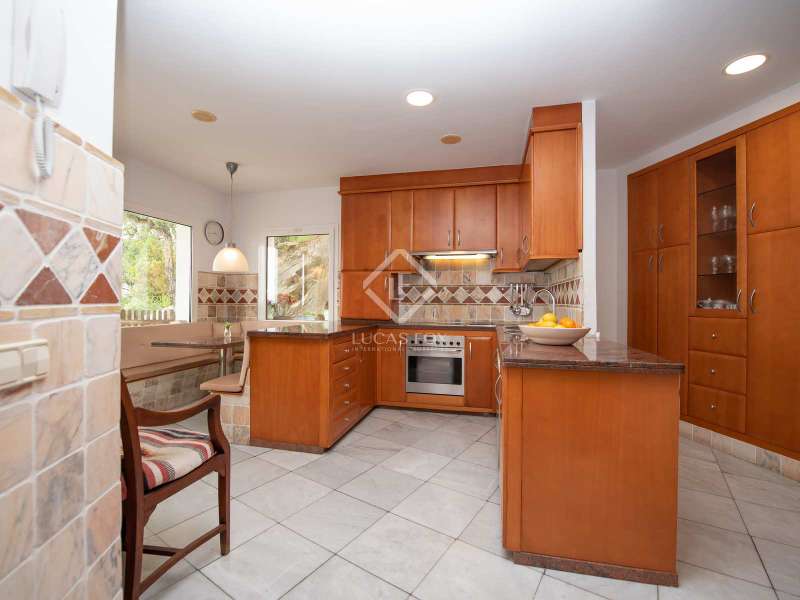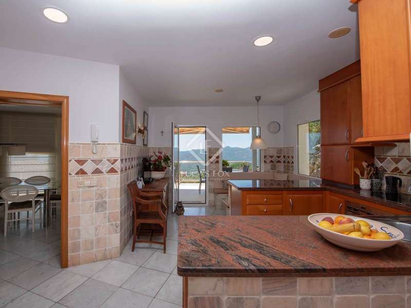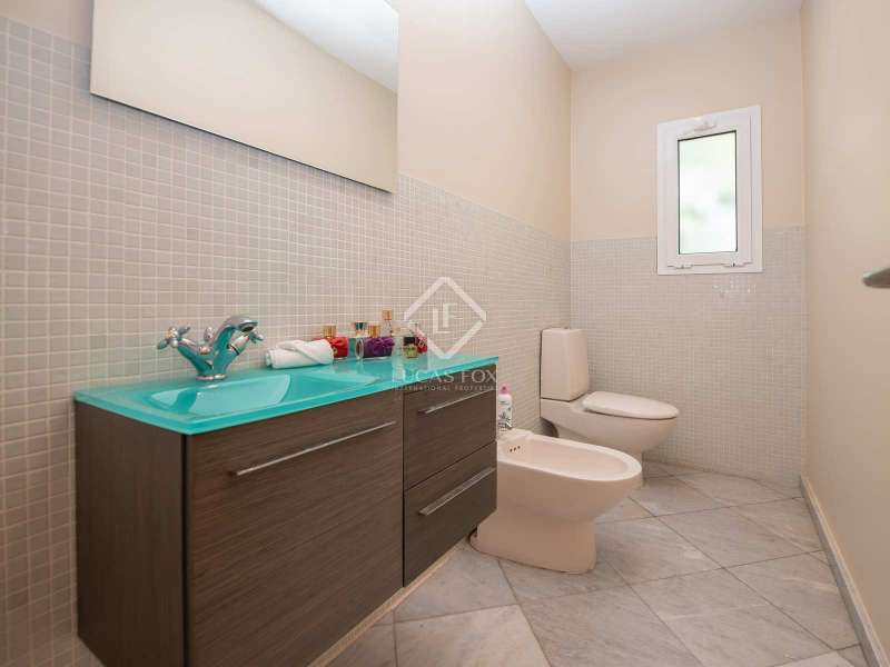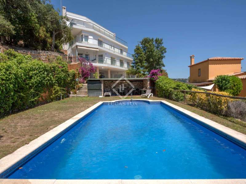 This high-end house, located in the Les Teules development and surrounded by large terraces with impressive views, is an ideal property for those seeking light, space and privacy in a privileged setting. Its four floors are built with high-quality materials such as hardwood. The floors and bathroom details are made of marble and the windows are made of aluminium with double glazing. The building sits on solid rock, with the mountain at its feet, and its south-facing orientation, with views of the Gavarres, the Vall d'Aro and the sea that borders Sant Feliu de Guíxols and Platja d'Aro, gives it incredible interior light. On the ground floor of the property we find a spacious entrance hall, a large games room (previously a garage), a toilet and a bedroom suite with a private bathroom. On the first floor , there is an elongated dining room living room with large windows, a kitchen with a dining room and a utility room, a large study and a toilet. On the second floor, there are four large suites, each with access to the large terrace and its private bathroom. And finally, on the third floor, there is the master suite, which is divided into a bedroom, bathroom, dressing room and the bathroom area with a shower and jacuzzi, as well as a large terrace with stunning views. If we cross the porch from the kitchen or the dining room living room , we find the walkway that leads us to the saltwater pool surrounded by grass and a porch with a barbecue. At the back, there is a covered area with capacity for four cars. The house is surrounded by a large garden with a swimming pool to relax and enjoy the surroundings in privacy. Air conditioning with diesel boiler, underfloor heating with marble and rooms with built-in wardrobes. Les Teules is a development with residents all year round, located next to the protected area of Les Gavarres and just 10 minutes from the beach, a real privilege.