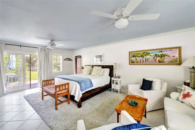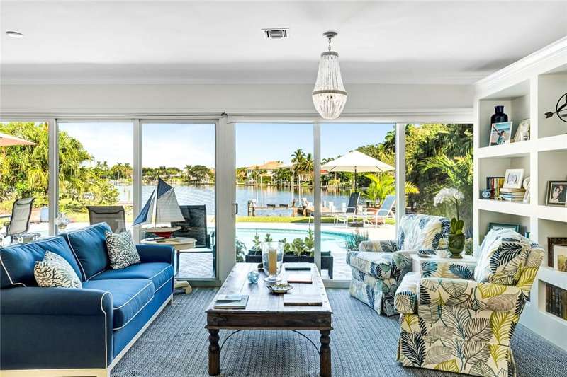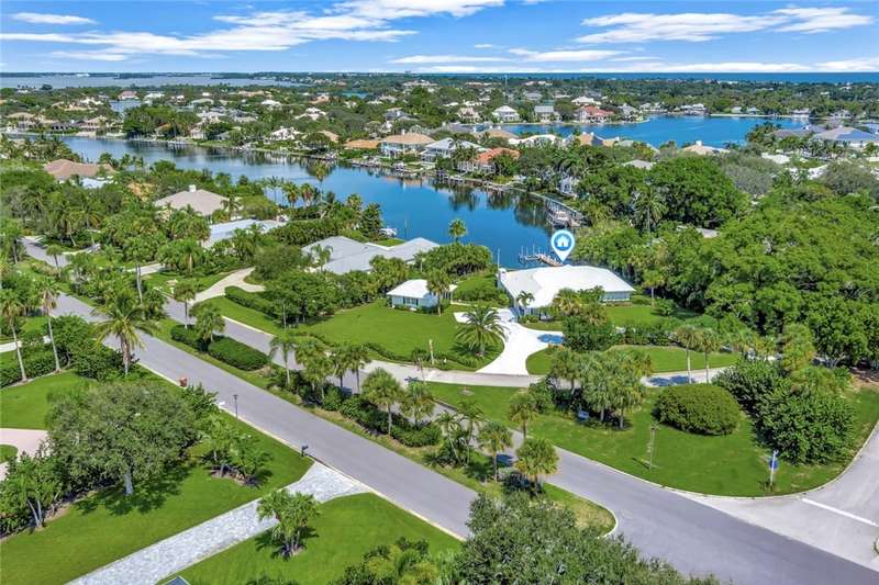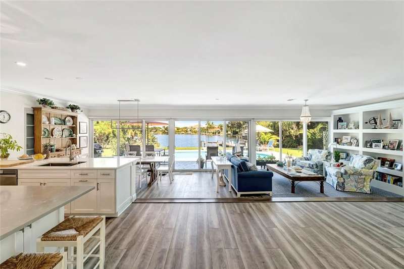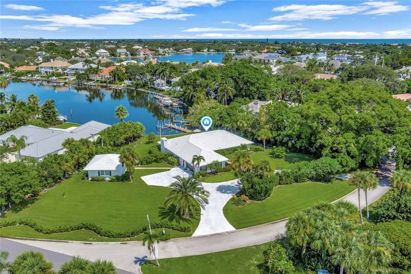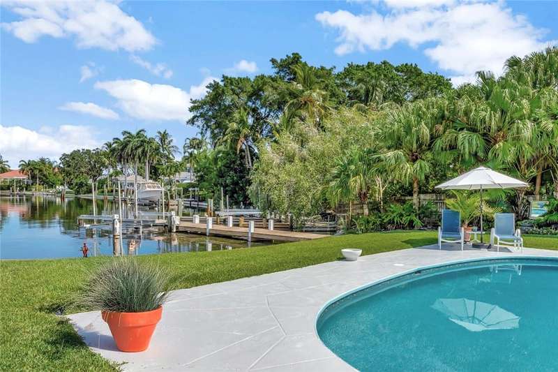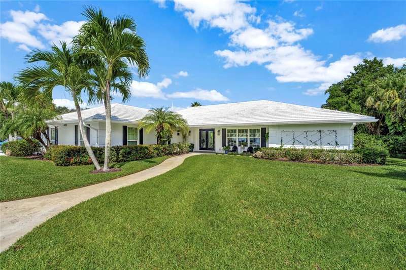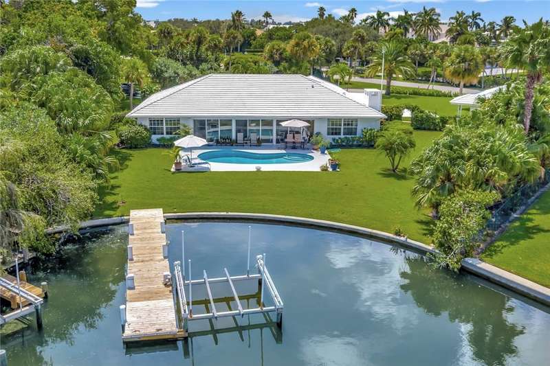 Exceptional waterfront living in the prestigious Moorings subdivision with 78 of river frontage on .63 acres. Beautifully updated home with water views from most all rooms, offers an open layout designed for comfort & entertaining. An island kitchen w/quartz counters, a primary suite w/sitting area provides a peaceful retreat. Impact glass, 2022 A/C's. Main house 3BR/2BA plus 1BR/1BA guest house. Private pool, dock w/lift & lushly landscaped fenced backyard for privacy. HOA $490 yearly is voluntary but would include private beach access & security patrol. Sizes approx./subj. to error.