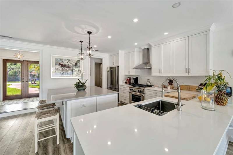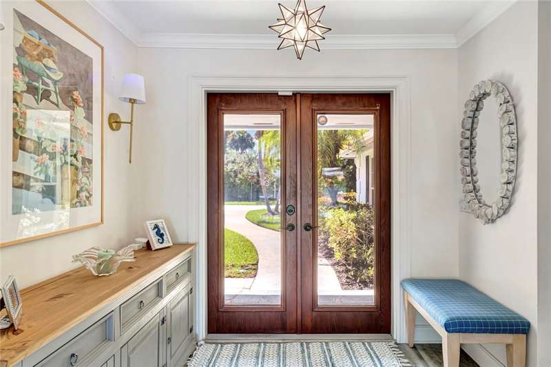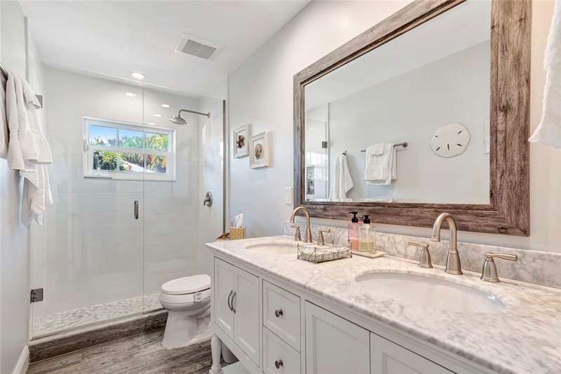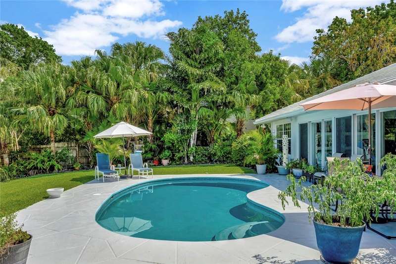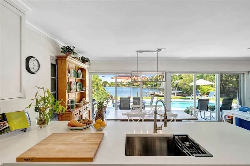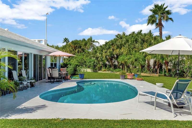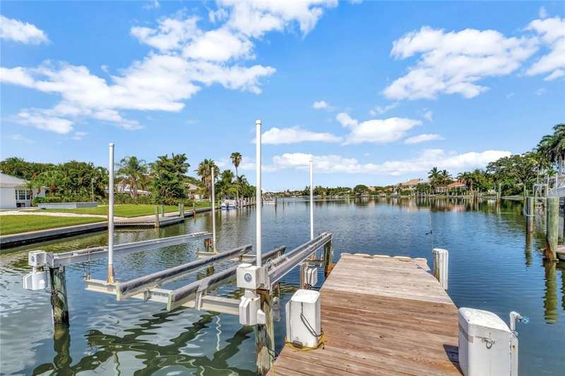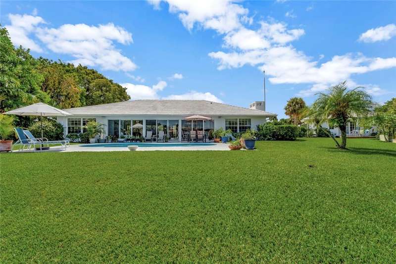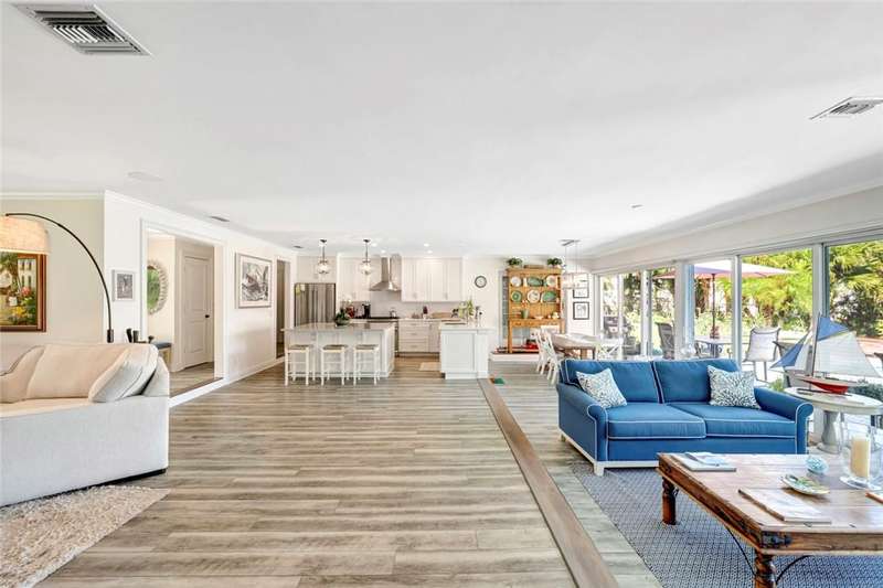 Exceptional waterfront living in the prestigious Moorings subdivision with 78 of river frontage on .63 acres. Beautifully updated home with water views from most all rooms, offers an open layout designed for comfort & entertaining. An island kitchen w/quartz counters, a primary suite w/sitting area provides a peaceful retreat. Impact glass, 2022 A/C's. Main house 3BR/2BA plus 1BR/1BA guest house. Private pool, dock w/lift & lushly landscaped fenced backyard for privacy. HOA $490 yearly is voluntary but would include private beach access & security patrol. Sizes approx./subj. to error.