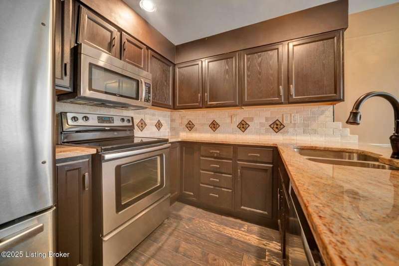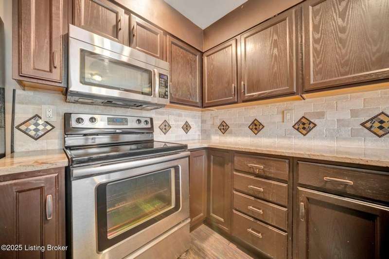 Move-in ready, this beautiful 2nd floor condo offers comfort and style in a convenient setting. Featuring LVP flooring, the home has a bright, modern feel. The living room and kitchen are filled with natural light from skylights, while the primary bedroom boasts a tray ceiling for added character. The kitchen is equipped with stainless steel appliances, and the bathrooms feature durable ceramic tile. The spacious primary suite includes a walk-in shower and relaxing jetted tub. Additional highlights include garage parking, furnace replaced in 2025, and water heater replaced in 2019. The HOA provides exterior maintenance, groundskeeping, fitness room, and pool access, making for low-maintenance and enjoyable living.