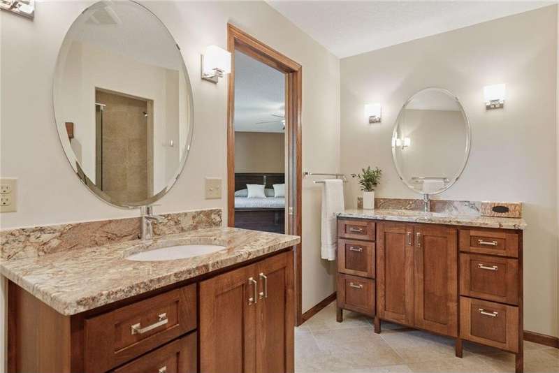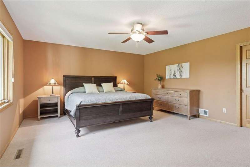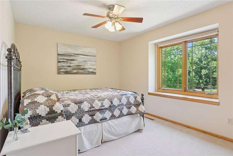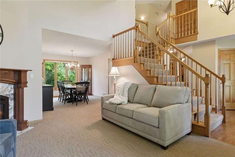 Don’t miss this Wedgewood Estates stunning, custom two-story walkout home, perfectly positioned on a beautifully landscaped half-acre corner lot with front row views of Prestwick’s signature 16th hole! Thoughtfully updated throughout, this exceptional home features a newer roof, windows, siding, remodeled kitchen and bathrooms-including luxurious baths with in-floor heat. Step inside to a grand open foyer that welcomes you into a dramatic two-story living room with a cozy gas fireplace. Adjacent is a formal dining room with expansive windows framing picturesque golf course views-an ideal space for entertaining. The chef’s kitchen is beautifully updated with granite countertops, a center island, and a charming dinette nook-perfect for casual meals while enjoying sweeping views of the fairway. Just off the kitchen, a maintenance-free Trex deck provides the ultimate outdoor retreat for relaxing or hosting guests. The spacious main-level family room is filled with natural light, featuring large picture windows and ample space for gatherings. The main floor 5th Bedroom can double as a convenient Office! Upstairs, you'll find 4 generous bedrooms, including a luxurious primary suite with a serene sitting area-ideal for unwinding with a view. The newly remodeled en-suite bathroom offers a spa-like experience with a walk-in tiled shower, dual granite vanities, and heated tile floors. The fully finished walkout lower level delivers incredible flexibility, including a large amusement room, two versatile bonus/flex rooms (potential 6th bedroom, office, or gym), and direct access to the patio and your private backyard oasis. Enjoy year-round fun with your own versatile sport court for basketball, pickleball or add a pergola for a tranquil gathering space enjoying the breathtaking fairway views. Located in the highly sought-after #833 School District: Middleton Elementary, Lake Middle School, and East Ridge High School. Thís is a rare opportunity to own a truly exceptional home in one of the area's most picturesque golf course communities. Schedule your showing today-this one won’t last!