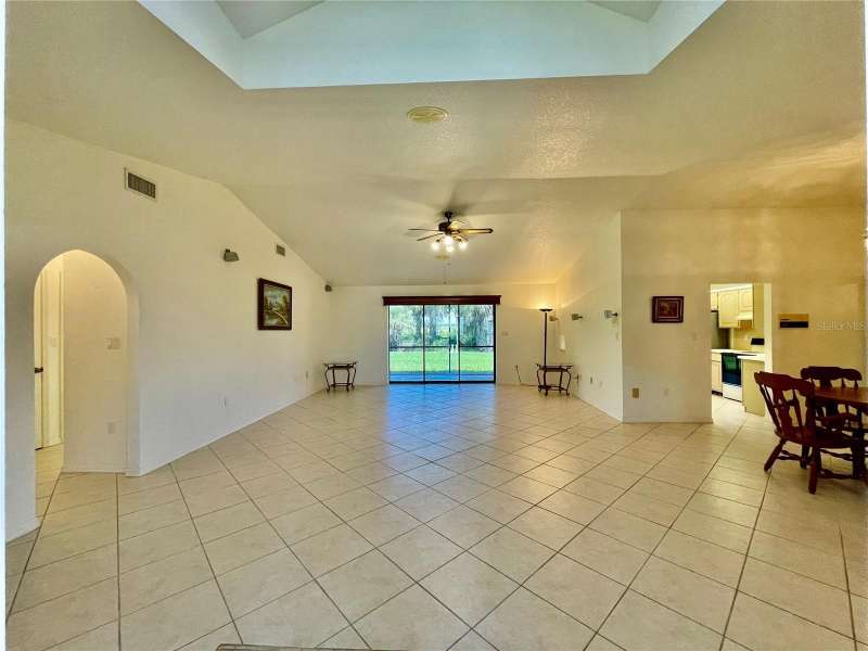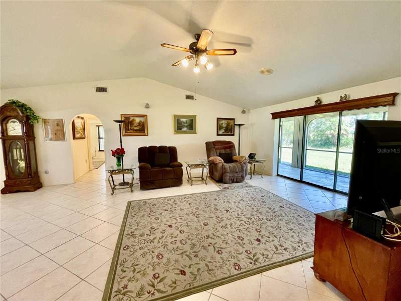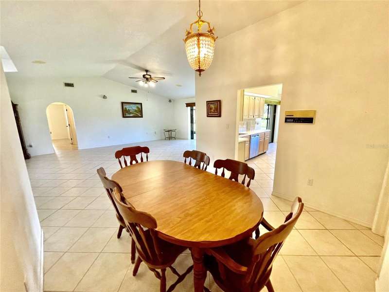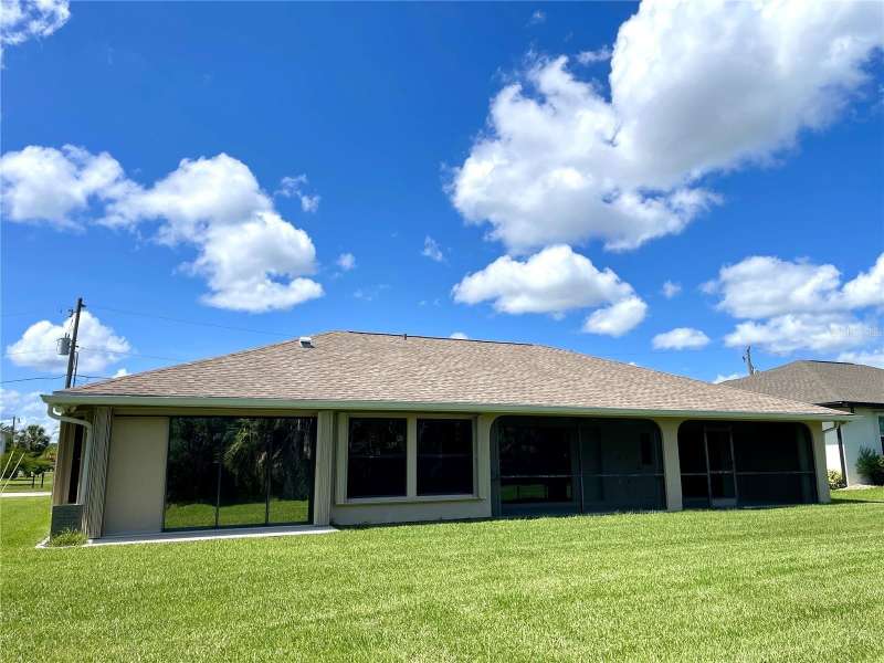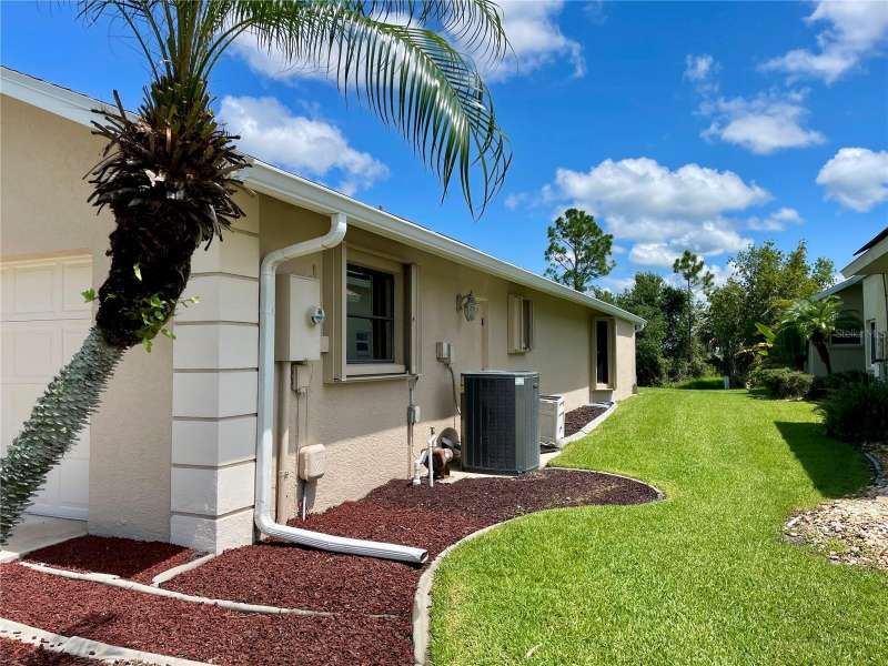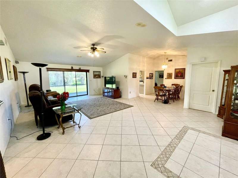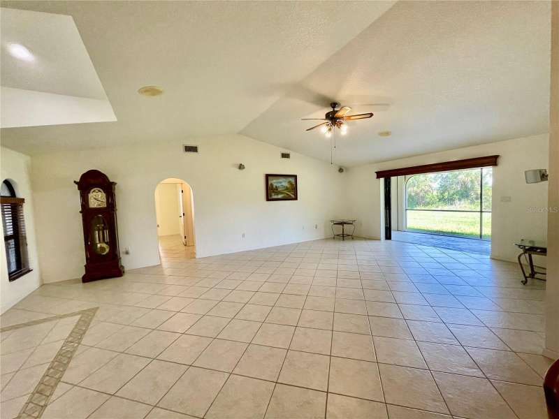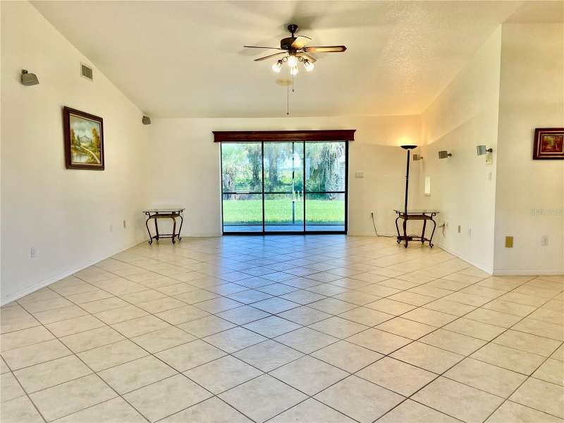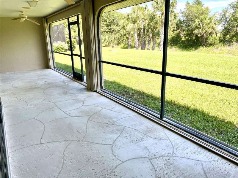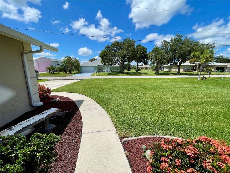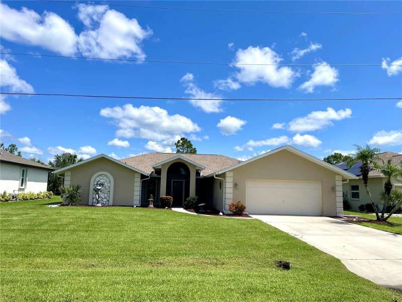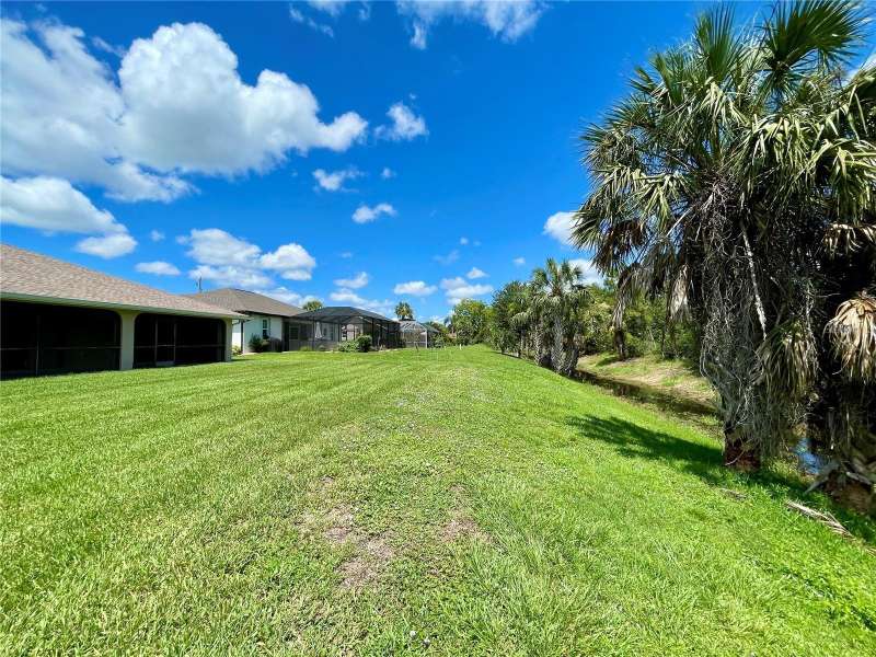 DESIRABLE 3bed, 2.5 bath, 2 car garage, well maintained 2,112sf, split floorplan home situated on a quiet, neighbor friendly cul de sac in Deep Creek, a Deed Restricted greenbelt community in Punta Gorda. This home is in an X flood zone, so no flood insurance is required! Many updates include: Toilet in 1/2 bath 2025, dishwasher, accordion shutters , re-piped home, roof and landscaping redone in 2023, a/c 2022, replaced waterline from meter to home 2020, windows preplaced and exterior painted in 2020, hot water heater 2018. There are ceiling fans and tile flooring throughout the home. It also has grab bars and "nurses call button" in several rooms. As you enter the home, the main living area has a cathedral ceiling, the Foyer, Dining area and Great room are open and spacious. The Great room has a beautiful view of the big backyard that backs up to the greenbelt. The Kitchen is off of the Dining area; with solid surface counters, wood cabinets, stainless refrigerator and dishwasher. At the end of the Kitchen is the Dinette, with large windows allowing in natural light and sliders to the large lanai. The huge Primary bedroom is just past the dining area. It has sliders out to the yard and a walk-in closet. The 2nd closet can be used as a linen closet. The bathroom has 2 separate vanities, walk in shower, tub, and separate water closet with a window. The guest rooms are on the opposite side of the home. The 2nd bedroom en suite has a walk-in closet and a private 1/2 bath. The 3rd bedroom has sliders out to the lanai. The guest bathroom has a walk-in shower and access to the lanai. There is also a large hall closet. The Laundry room is off the Foyer and accesses the garage. There are additional cabinets, a wash tub and a floor drain in the Laundry room. The oversized garage is 510sf. Close proximity to shopping, restaurants, and main roads (I75, Kings Highway, 776, and 41) for easy access to neighboring areas. There is a park and elementary school in the neighborhood. Easy access to Charlotte Harbor, the Peace and Myakka Rivers, and the Gulf of America, where you can enjoy everything from fishing, boating, swimming, boat tours, walking or bike riding the pet friendly Harbor Walk path along Charlotte Harbor; or enjoy the many state and local parks and beaches. Visit the neighboring small towns to enjoy festivals, farmer's markets and many local activities. Wonderful floorplan, great curb appeal, on a quiet street, with friendly neighbors, what more could you wish for??? Come see this gem and fall in love!