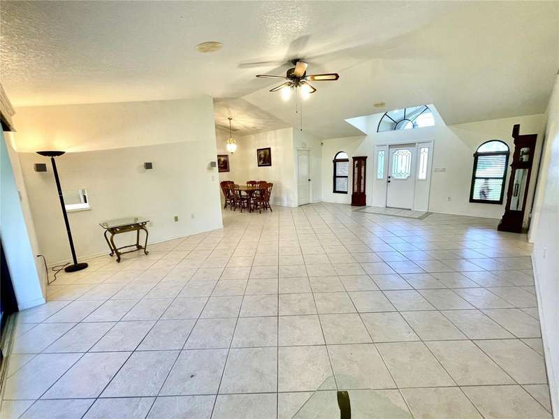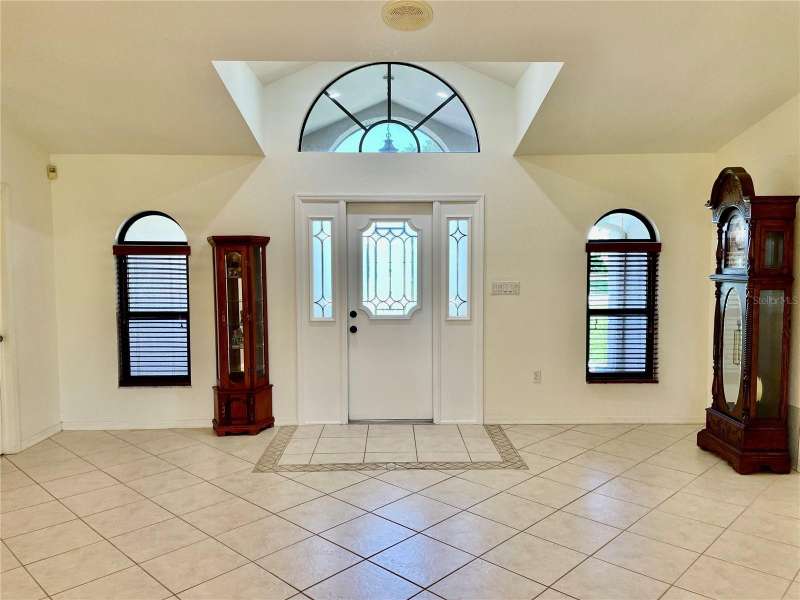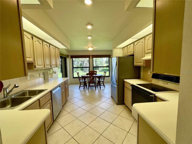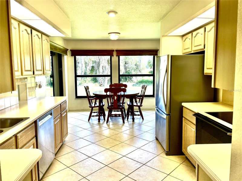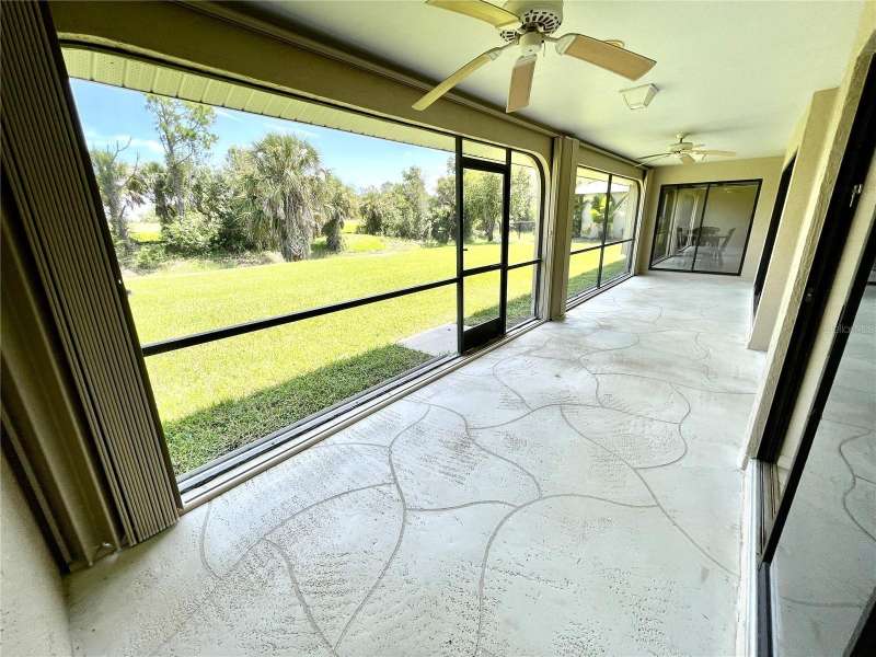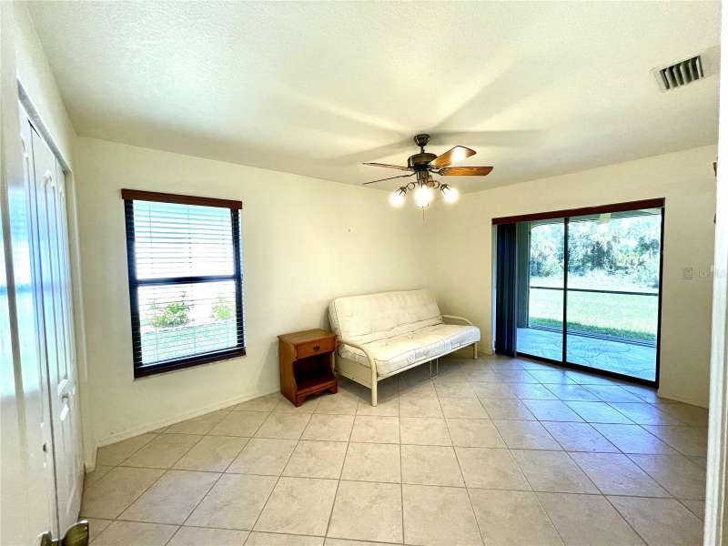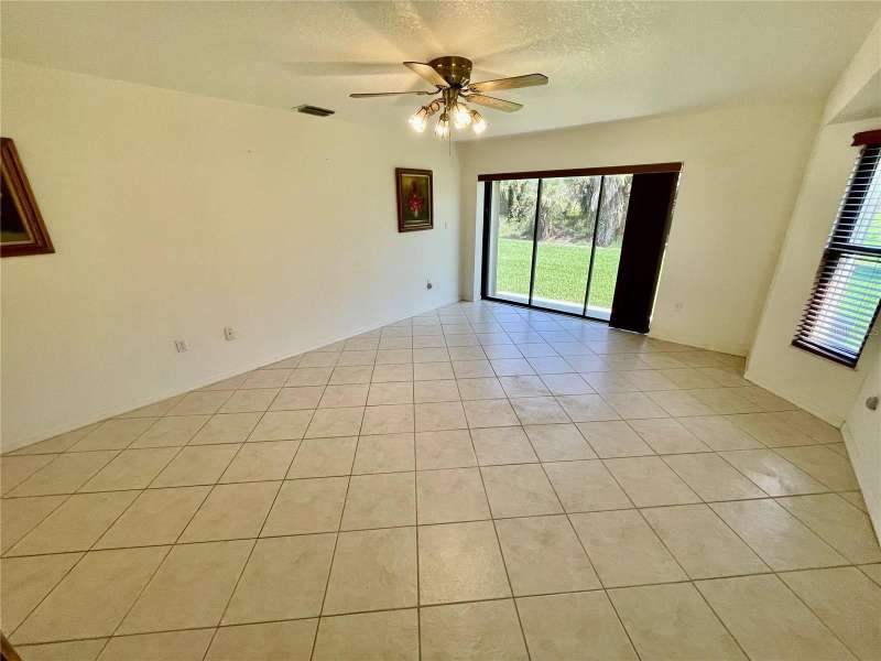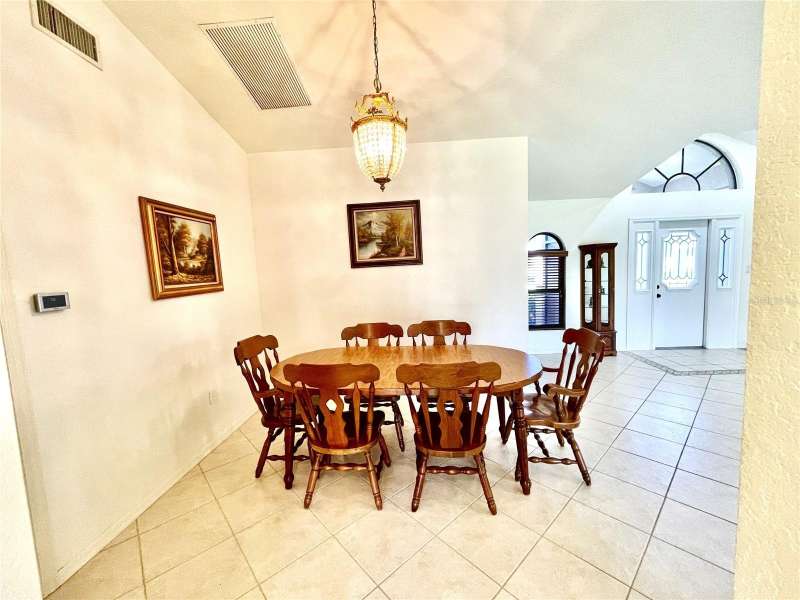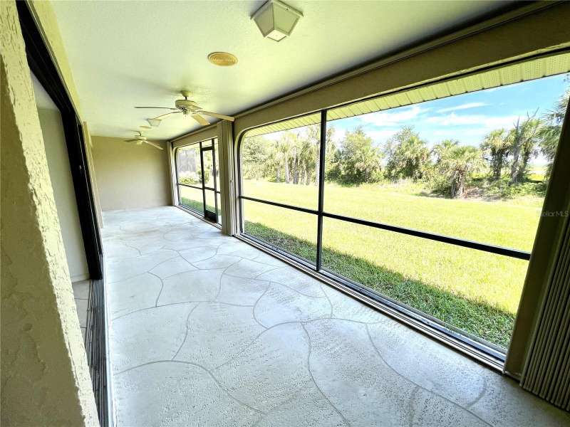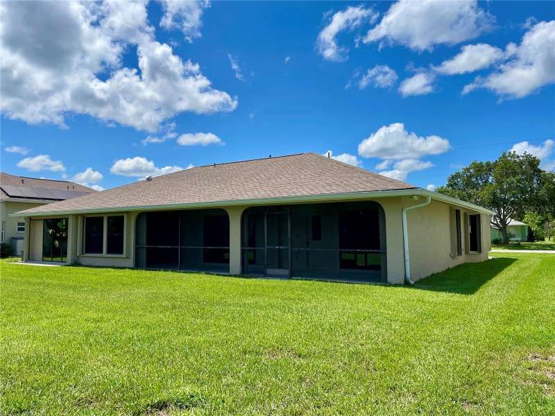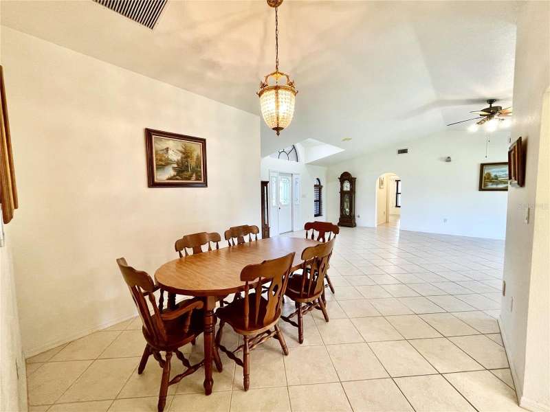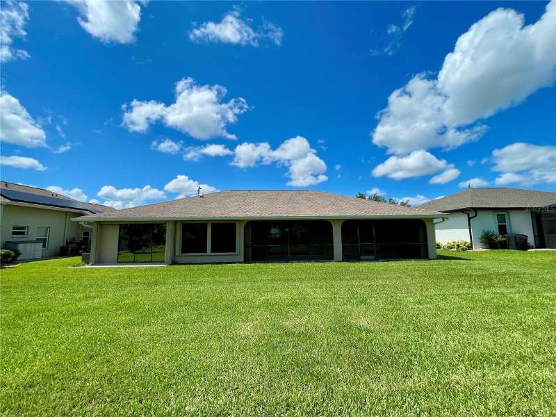 DESIRABLE 3bed, 2.5 bath, 2 car garage, well maintained 2,112sf, split floorplan home situated on a quiet, neighbor friendly cul de sac in Deep Creek, a Deed Restricted greenbelt community in Punta Gorda. This home is in an X flood zone, so no flood insurance is required! Many updates include: Toilet in 1/2 bath 2025, dishwasher, accordion shutters , re-piped home, roof and landscaping redone in 2023, a/c 2022, replaced waterline from meter to home 2020, windows preplaced and exterior painted in 2020, hot water heater 2018. There are ceiling fans and tile flooring throughout the home. It also has grab bars and "nurses call button" in several rooms. As you enter the home, the main living area has a cathedral ceiling, the Foyer, Dining area and Great room are open and spacious. The Great room has a beautiful view of the big backyard that backs up to the greenbelt. The Kitchen is off of the Dining area; with solid surface counters, wood cabinets, stainless refrigerator and dishwasher. At the end of the Kitchen is the Dinette, with large windows allowing in natural light and sliders to the large lanai. The huge Primary bedroom is just past the dining area. It has sliders out to the yard and a walk-in closet. The 2nd closet can be used as a linen closet. The bathroom has 2 separate vanities, walk in shower, tub, and separate water closet with a window. The guest rooms are on the opposite side of the home. The 2nd bedroom en suite has a walk-in closet and a private 1/2 bath. The 3rd bedroom has sliders out to the lanai. The guest bathroom has a walk-in shower and access to the lanai. There is also a large hall closet. The Laundry room is off the Foyer and accesses the garage. There are additional cabinets, a wash tub and a floor drain in the Laundry room. The oversized garage is 510sf. Close proximity to shopping, restaurants, and main roads (I75, Kings Highway, 776, and 41) for easy access to neighboring areas. There is a park and elementary school in the neighborhood. Easy access to Charlotte Harbor, the Peace and Myakka Rivers, and the Gulf of America, where you can enjoy everything from fishing, boating, swimming, boat tours, walking or bike riding the pet friendly Harbor Walk path along Charlotte Harbor; or enjoy the many state and local parks and beaches. Visit the neighboring small towns to enjoy festivals, farmer's markets and many local activities. Wonderful floorplan, great curb appeal, on a quiet street, with friendly neighbors, what more could you wish for??? Come see this gem and fall in love!