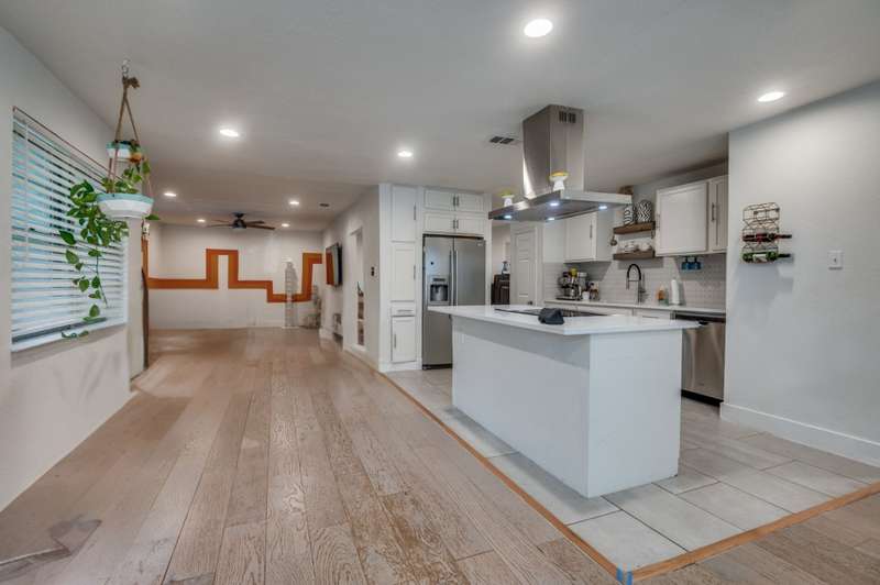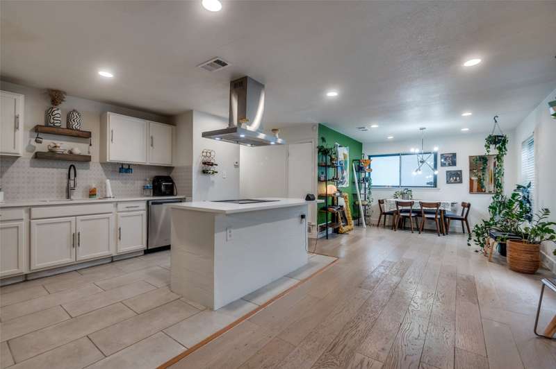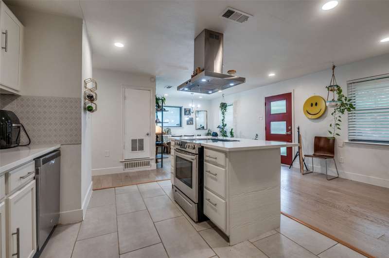 Where value meets style in Evergreen Acres! This recently renovated 3-bedroom, 2-bath home is priced below county assessed value. Move-in ready and set on a 7,500 SF lot, it features an open floor plan with wood-look vinyl flooring, quartz countertops, and a bright, updated kitchen. The spacious den-living area offers flexibility for entertaining or relaxing, while the oversized laundry room can double as a home office, mudroom, or pet space. The kitchen includes an electric range with vent hood and opens to a separate dining room with a statement light fixtureideal for hosting. Additional features include window blinds throughout and a 2-car driveway for easy parking. Just 20 minutes from Downtown Dallas and Bishop Arts, this home combines comfort, convenience, and style at a rare price point in a quiet, established neighborhood.