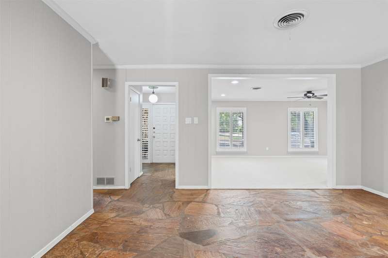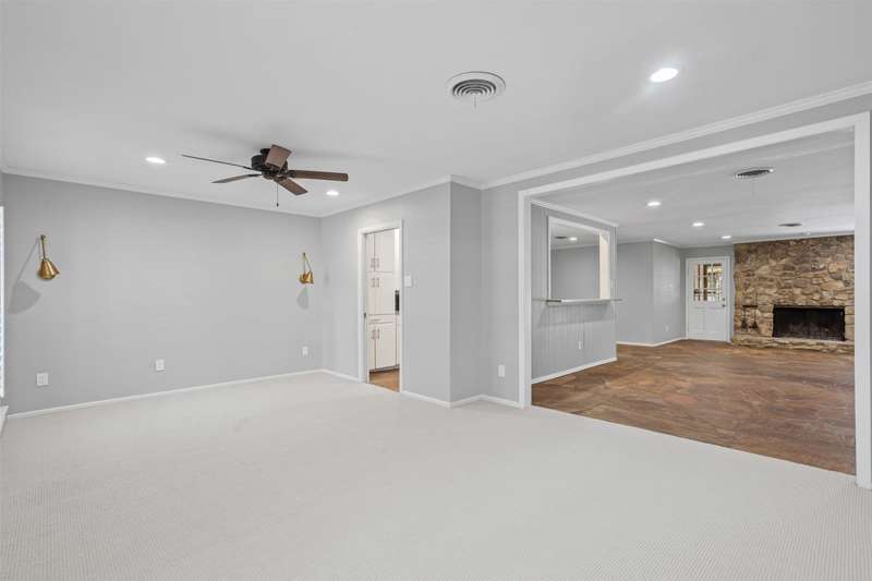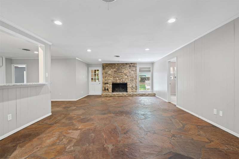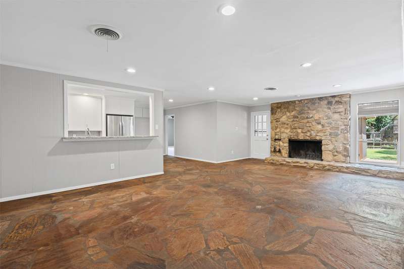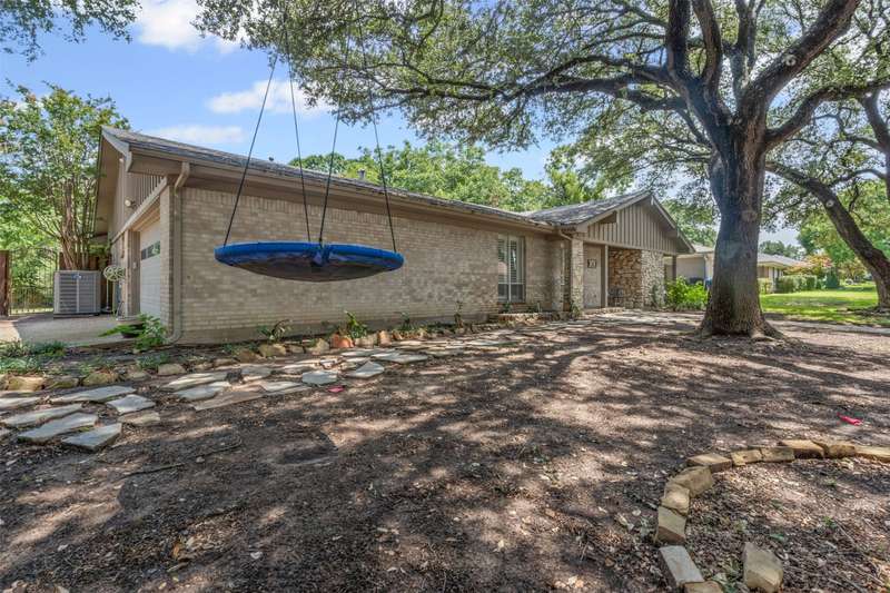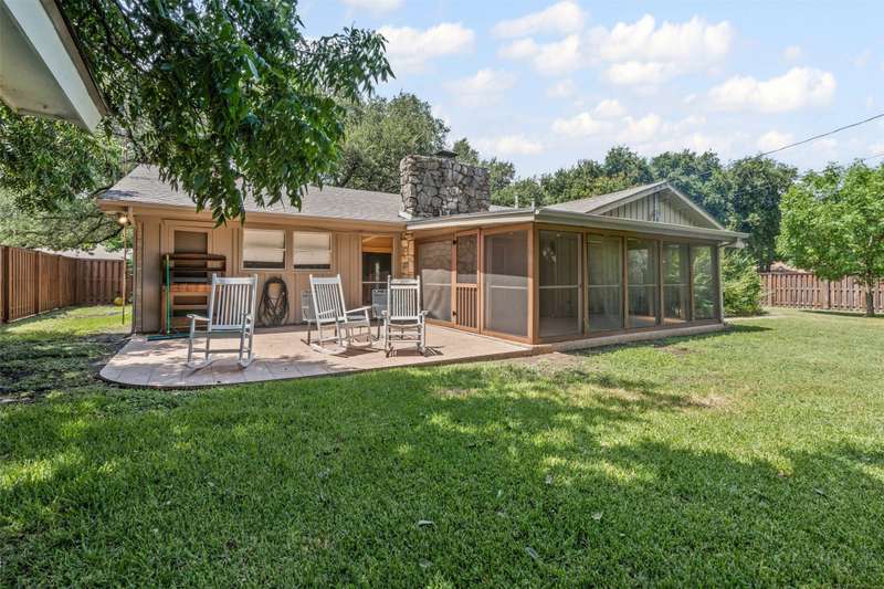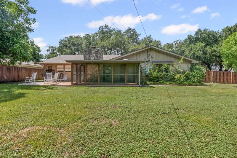 Welcome home to this charming ranch-style residence in the highly sought-after Overton Park school zone! Nestled on a corner lot shaded by mature trees, this updated home offers flexible living and dining spaces to fit your lifestyle. The open kitchen features granite countertops, stainless steel appliances, and plenty of storage.A spacious family room centers around a stunning floor-to-ceiling stone fireplace, creating a cozy and inviting focal point. The primary suite offers privacy with a dedicated study, while two secondary bedrooms share a well-appointed bath on the opposite side of the home. Additional features include new carpet, a convenient mud bench by the laundry room, a screened-in porch ideal for year-round enjoyment, and a large backyard perfect for play or entertaining