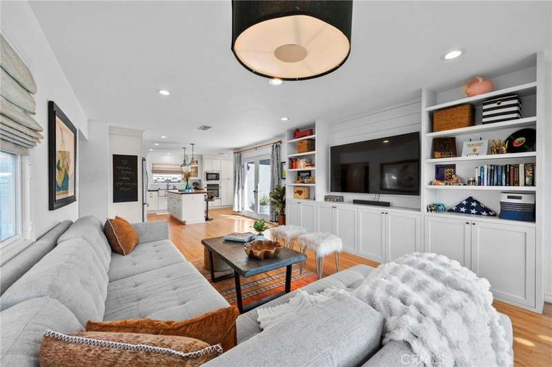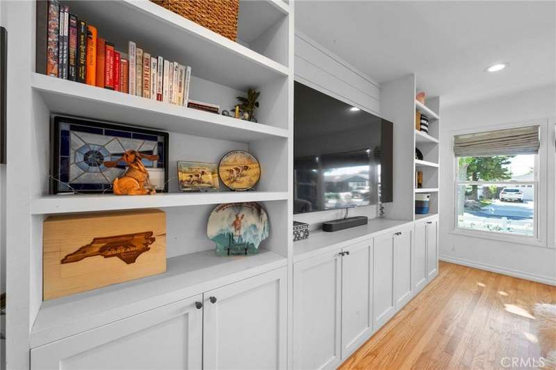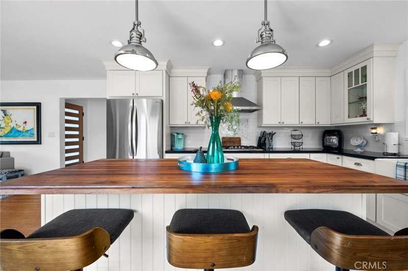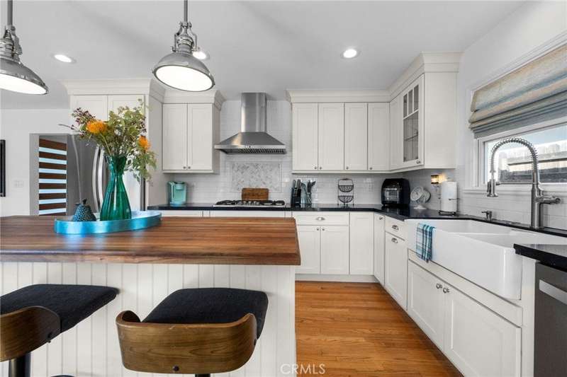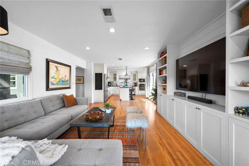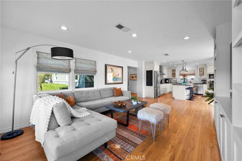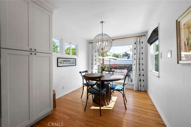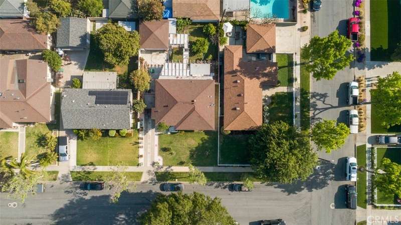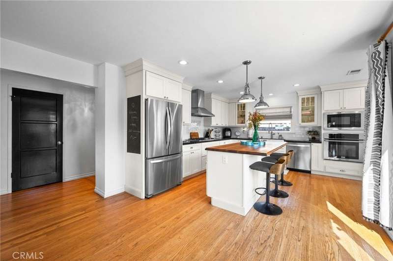 Welcome to this beautifully updated mid-century gem, built in 1952 and full of character! Nestled on a peaceful corner in the charming Park Santiago neighborhood—known for its tree-lined streets and vintage homes. This move-in ready residence blends classic design with modern updates in all the right ways. From the moment you arrive, the architectural details catch your eye: a sleek horizontal fence, a stylish wood-and-glass front door, fresh dark gray/green paint with crisp white trim, and newly added front steps and porch—all setting the tone for the contemporary touches inside. Step through the door and into an airy, open-concept layout designed for comfortable living and effortless entertaining. Warm original wood flooring flows throughout, complemented by all-white walls, recessed lighting, and French doors that open to a private backyard oasis. The spacious living room features custom built-in entertainment cabinetry and a view of the landscaped, fully fenced front yard. With windows on three sides, the dining area is bright and inviting—blurring the line between indoor and outdoor living. At the heart of the home is a beautifully appointed kitchen with a large island that seats four, perfect for gatherings and everyday life. Enjoy stainless steel appliances, a mix of butcher block and quartz countertops, glass-front cabinetry, and abundant natural light—making this space both functional and stylish. Outside, you’ll find two cozy patio areas, including one with a fire pit—ideal for relaxing under string lights on a warm evening. The detached 2-car garage includes new 6A electrical for car charging and a wide driveway for added convenience. This home offers three comfortable bedrooms and two tastefully updated bathrooms, including a private primary suite. The laundry room was remodeled with tile floors and a folding table with open shelves. The spacious, fully fenced front yard provides a secure play area or the perfect spot to unwind. With fresh interior and exterior paint, new insulation, an upgraded electrical panel, and newer HVAC, tankless water heater, plumbing, and roof systems, this home is not only beautiful but also thoughtfully maintained. All in all, this is a wonderful opportunity to own a stylish mid-century home in one of the area's most desirable, centrally located neighborhoods. Come see for yourself—you’ll feel right at home!