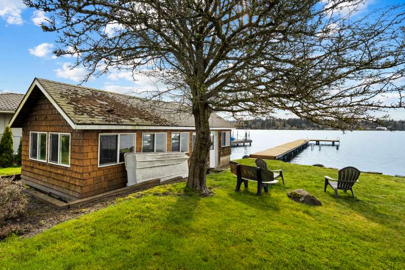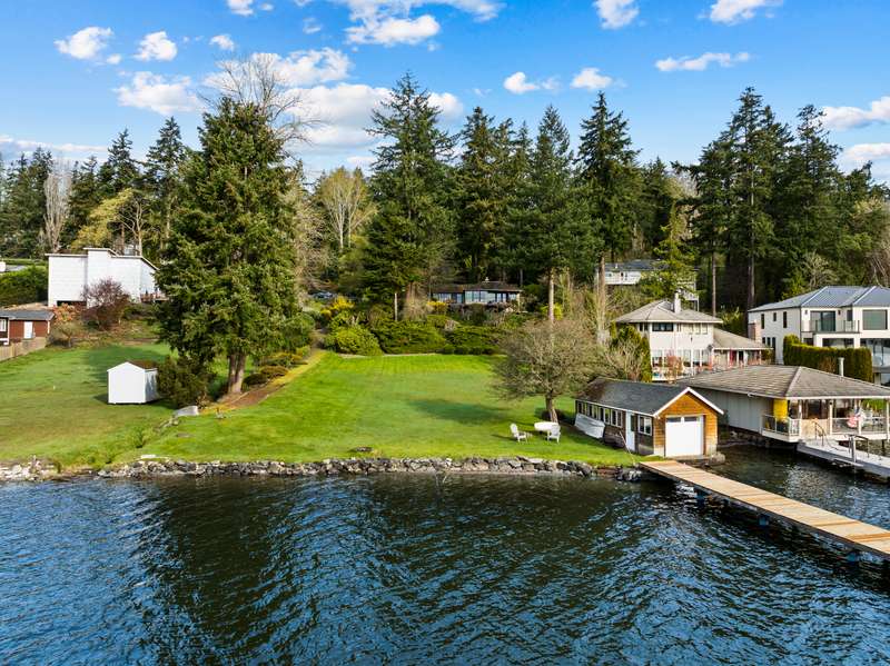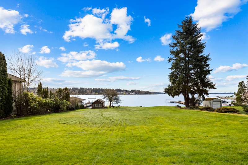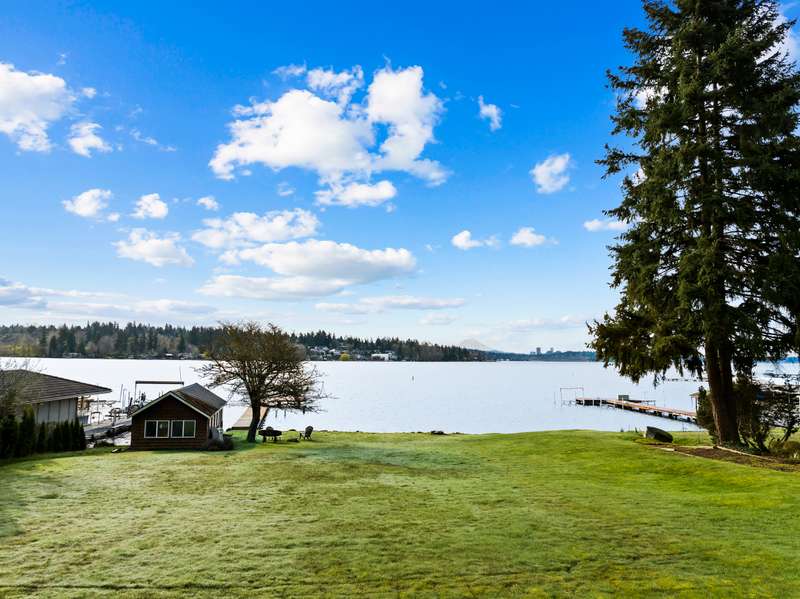 Spectacular waterfront acreage w/119’ of south-facing Juanita Bay waterfront! 5BR, 3BA 2,730SF w/ updated kitchen, hdwds & large newer composite deck. 64,203 SF (1.47 acres) w/lush plantings & huge lawn, boat house & 100’ dock. Southerly vistas looking at Mt. Rainier, Bellevue & Lk Washington w/ rose colored sunrises, golden sunsets & nearly endless maritime performances! Just blocks to Juanita Bay Pk & Juanita Village, 5-7 mins to dwntwn Kirkland’s eclectic shops & restaurants & I-405. Waterside oasis w/ expansive lawn is the perfect venue for festive celebrations – or peaceful enjoyment of life at its best. Whether you choose to renovate or build the large waterfront estate of your dreams, you don’t want to miss this amazing opportunity!