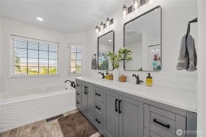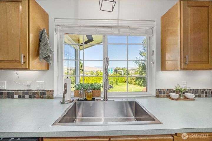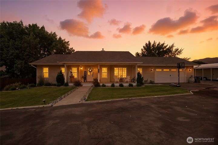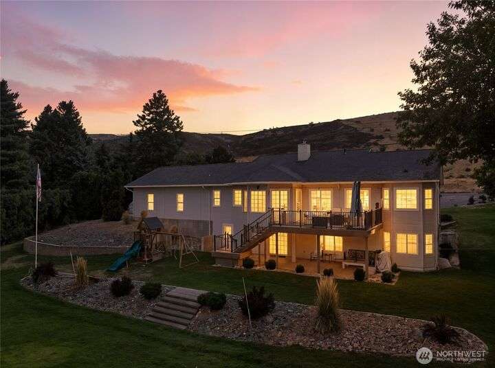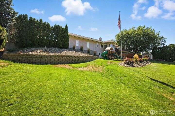 GREAT VALUE! Classic 3-bed/2.5-bath, 2,921 SF daylight rambler on a generous, west-facing 0.89-acre lot (38,768 SF) is sited perfectly to take advantage of the Enchantments & North Cascades backdrop. Found on the outskirts of East Wenatchee, home is conveniently located, allowing one to come and go out of town. Natural light-filled interior spaces, a functional main floor layout with the primary bedroom, dining, laundry, powder, and great room living, accommodate an easy living floor plan. Downstairs, find 2 bedrooms, a bonus room, a family room, a full bath, & an egress to enjoy the sprawling landscape. Property is served by Greater Wenatchee Irrigation District, allowing one to have garden spaces or continue to have nicely groomed lawns.