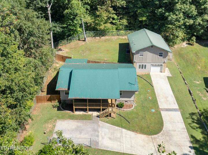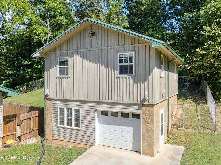 Freshly painted throughout, this charming 2-bedroom, 2-bath home offers 1,120 sq ft of comfortable living space with wide hallways, a spacious kitchen, and front and back decks for outdoor enjoyment. The property also features a detached 720 sq ft apartment above a private garage, complete with a full kitchen, living room, bedroom, full bath, and washer/dryer hookups—ideal for guests, multi-generational living, or rental income. The garage below includes its own bathroom and a bar, creating a flexible space for storage, hobbies, or entertaining. With the ability to be used for short-term/overnight rentals as well as long-term leases, this property offers excellent versatility. Conveniently located just minutes from town while still providing a peaceful setting, it's a great choice for a primary residence, vacation retreat, or income-producing investment. ***Will not go FHA/VA due to 90 day flip rule***