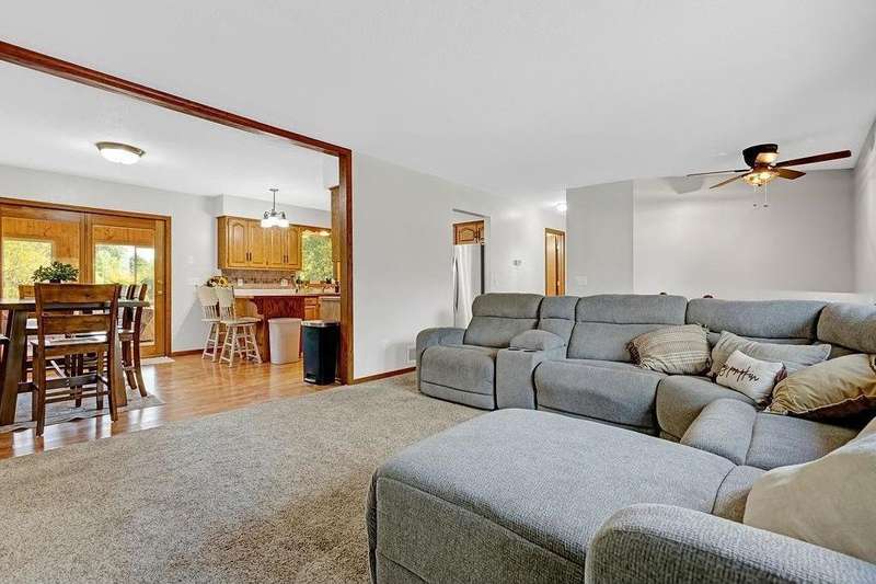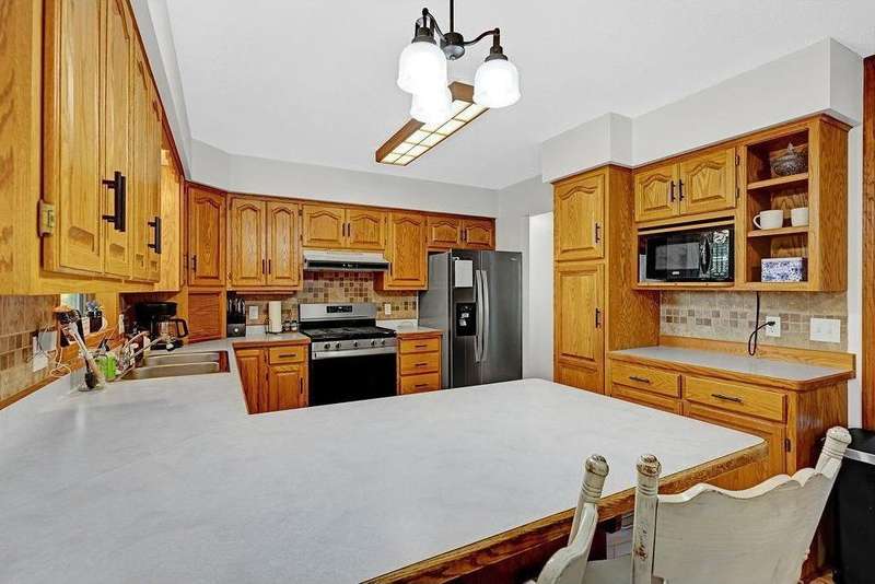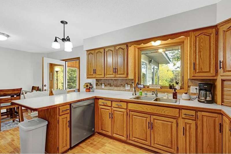Welcome to your private retreat on 1.52 wooded acres at the end of a quiet cul-de-sac! This well-maintained 3BR/2BA home offers over 2,250 sq ft of finished living space, including a spacious family room with gas fireplace in the large walkout lower level family room. Enjoy peaceful views from the three-season porch off the kitchen. Key updates include: Anderson windows (2015), furnace (2022), hot water heater (2018), dishwasher (2020), and all new appliances. The property features a 22x26 second garage, sprinkler system, natural woodwork, and a mix of concrete and gravel driveways. Located in North Branch School district, this home combines privacy, comfort, and convenience. Don’t miss this rare opportunity to own a slice of nature with easy access to town amenities!