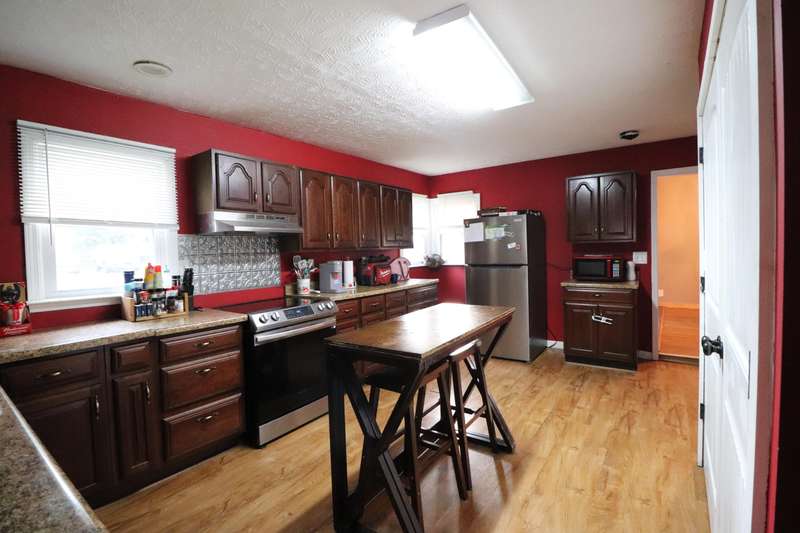 Nestled on a prime corner lot, this home offers a more pleasing, more private setting with expansive outdoor space perfect for entertaining!! The charming 4 bedroom home offers an open concept with great space for entertaining indoors as well as out. Large kitchen with nice wood cabinetry and adjacent dining area with gas fireplace. Spacious primary bedroom with half bath and walk-in closet that includes a walk-out to the expansive back deck. Nice paint with newer HVAC. Plenty of parking with the extra driveway and concrete pad complete with wooded area in back of the home for privacy or new build. This home also includes an outbuilding for storing all the things you don't use everyday, hobby shop, or work shop. Located in the quaint subdivision of Highland Heights on a quiet street, this is a don't-miss opportunity for personal customization and/or future plans!! Easy commuting with the AA Hwy close by!!!