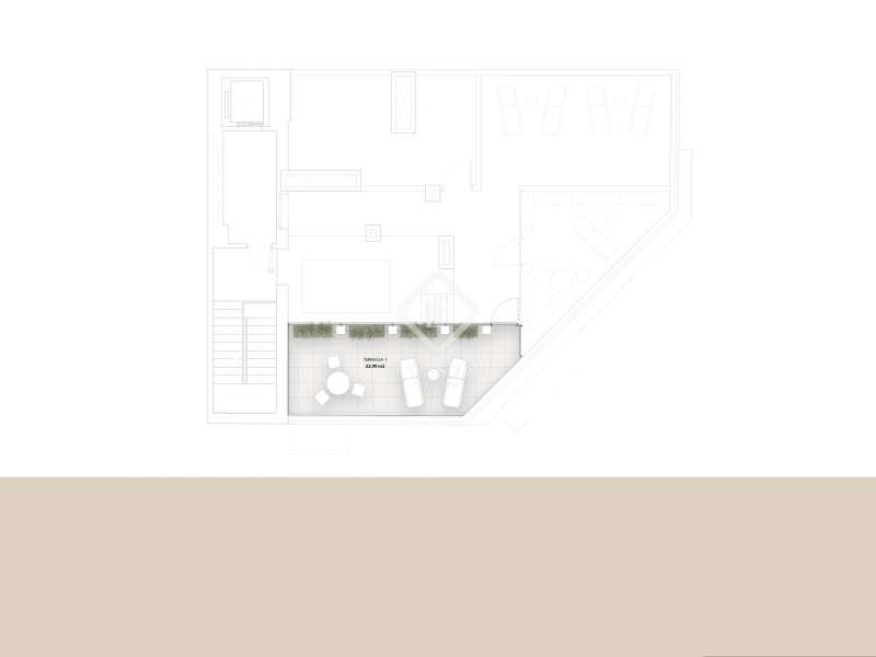 This charming apartment is located on the fourth floor of the Castillejos Sant-Pau building. With its 84 m² and 30 m² of outdoor space, it redefines the residential experience and the concept of refinement and functionality. It has three bedrooms and two bathrooms, and a northeast exposure, maximizing the sun and providing a bright and welcoming atmosphere. Upon entering, we are welcomed by a practical kitchen that blends harmoniously with a bright dining room living room and an exterior terrace, a private corner to enjoy the outdoors. The night area features a clever layout , consisting of a main bedroom with an en-suite bathroom and a second single bedroom , both with access to the same large balcony. The apartment also features an additional single bedroom and a second separate bathroom for added convenience and privacy. The property also features an exclusive 20 m² private terrace on the building's rooftop, offering stunning panoramic views of the city and an ideal space to relax and enjoy Barcelona's sunny climate. High-end finishes and meticulous attention to detail define the essence of this home, reflecting a commitment to excellence. Ultimately, this property perfectly combines functionality and style in a strategic location. Don't hesitate to contact us for more information about this exceptional property and discover the uniqueness of living in Castillejos Sant-Pau.