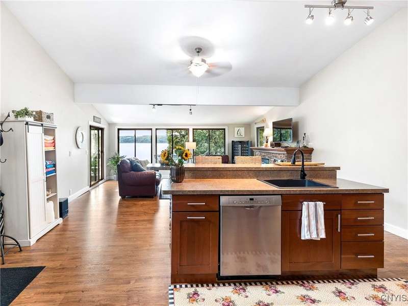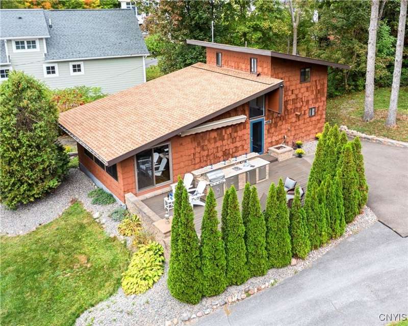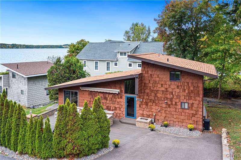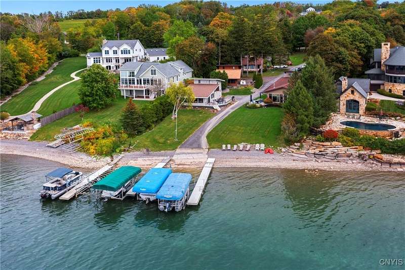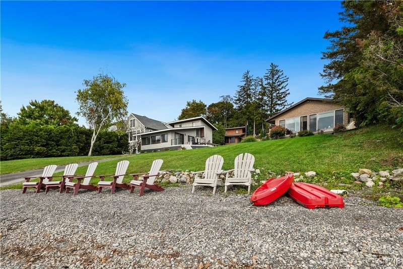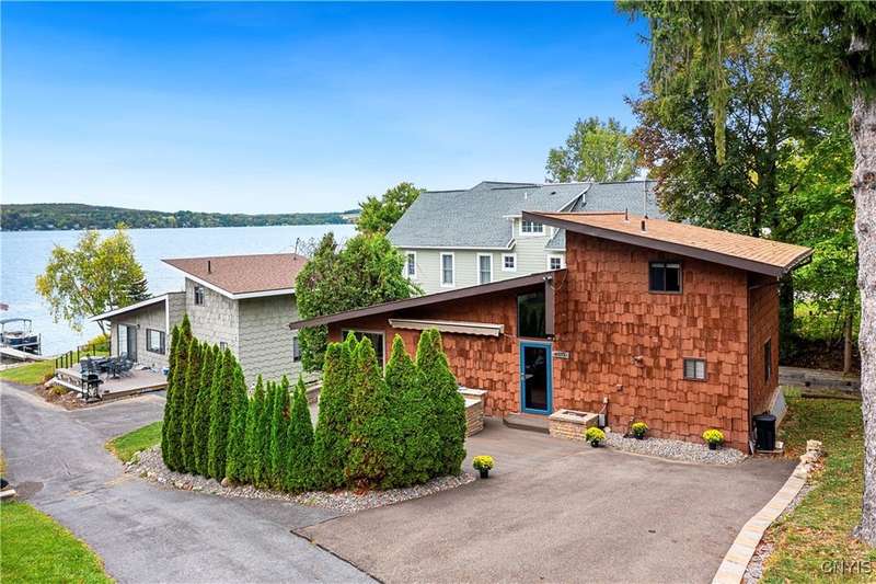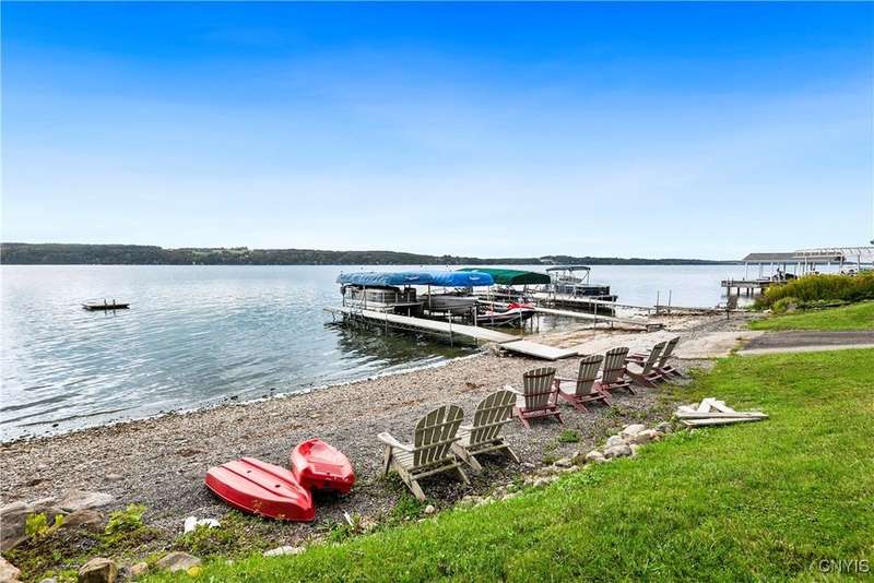 Welcome to Leopold Lodge, LLC ? Cottage "C" on Skaneateles Lake. Located just 4 miles from the picturesque village of Skaneateles, this beautifully updated retreat offers breathtaking lake views and spectacular sunsets. Cottage "C" offers parking at your door step and features 2 bedrooms and 2 full baths. The space has been thoughtfully designed for both comfort and style. The kitchen is a true highlight with Kraftmaid cherry cabinetry, granite countertops, a center island with seating, and stainless-steel appliances?all flowing seamlessly into the bright living area with panoramic lake views. On the main floor, you'll find a bedroom currently set up with two twin beds and a full bath with walk-in shower conveniently across the hall. A stacked washer/dryer and on-demand hot water add everyday ease. Upstairs, a spiral staircase leads to the spacious primary suite with private ensuite. Outdoor living takes center stage here with sweeping lake views from the private composite deck. The fully equipped outdoor kitchen, complete with granite countertops, propane grill, refrigerator, bar sink, abundant prep and dining space, and a power awning for shade, provide ample space for entertaining. Gather around the cozy fire pit or simply relax and take in the view. With a mini-split system and natural gas fireplace, you'll stay comfortable whatever the weather, while level access to the pebble beach and waterfront mere steps from your door make lake living effortless. Leopold Lodge encompasses 1.3 acres with 99 feet of pristine Skaneateles Lake frontage, shared by five cottages in this truly special community. Ownership includes 20 shares (one-fifth interest) along with exclusive use of Cottage "C." Owners enjoy benefits such as boat hoist rights, use of common areas, shared maintenance expenses, and low, low property taxes! Just pack your bags?Cottage "C" is move-in ready and waiting for you to enjoy the very best of Skaneateles Lake living.