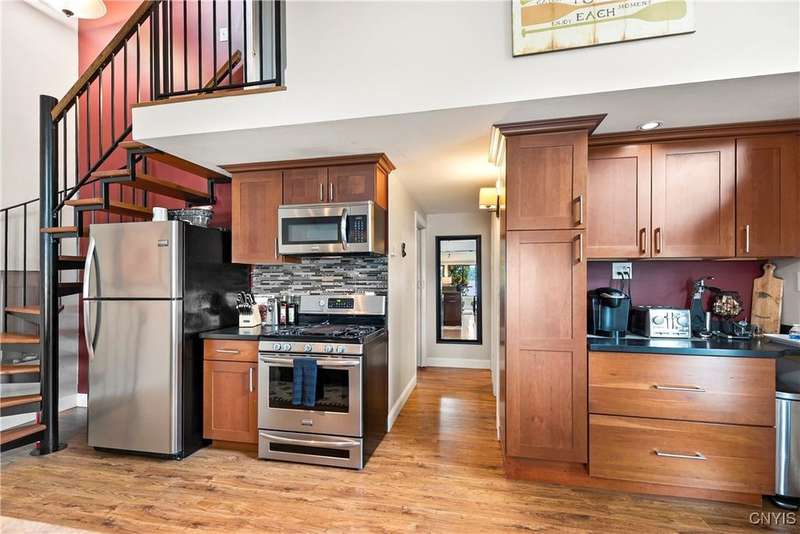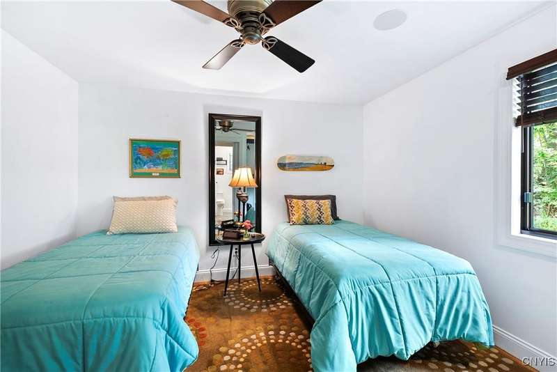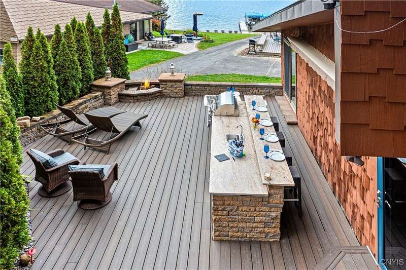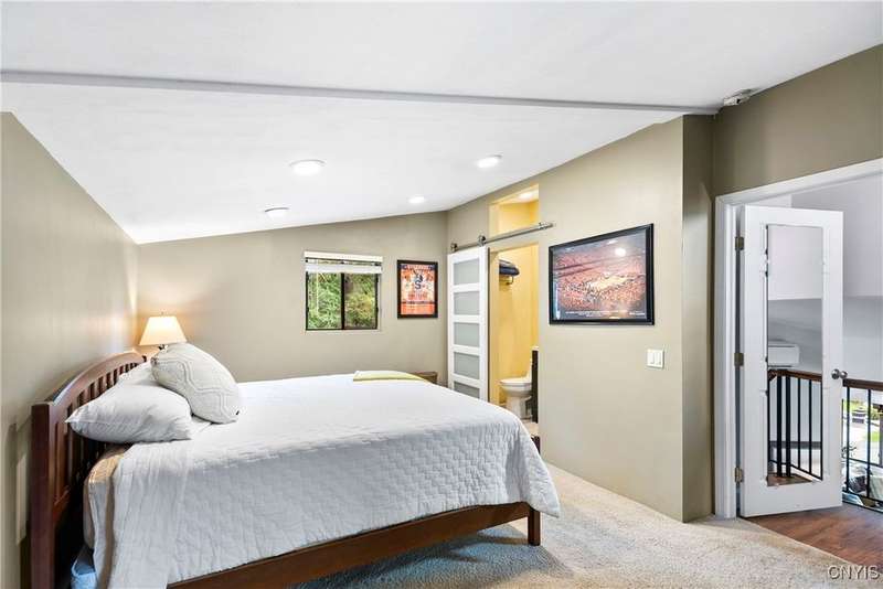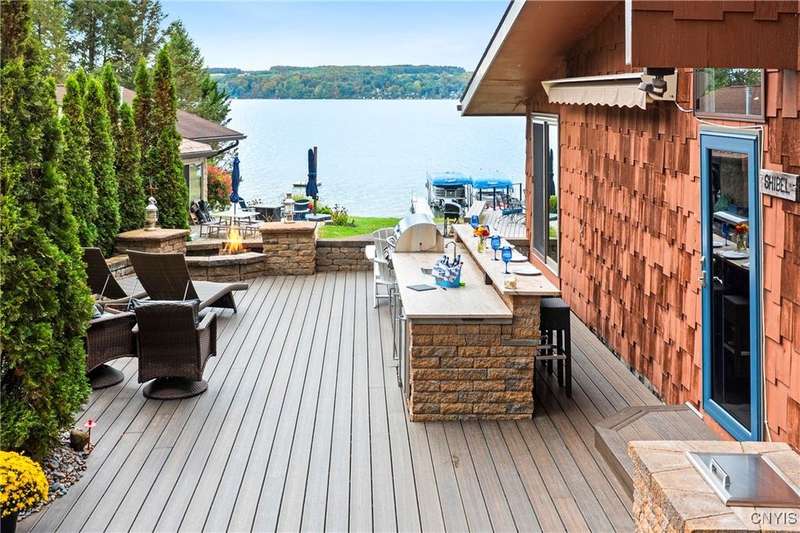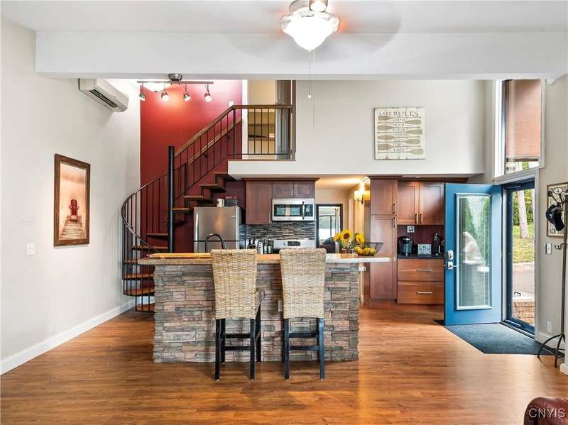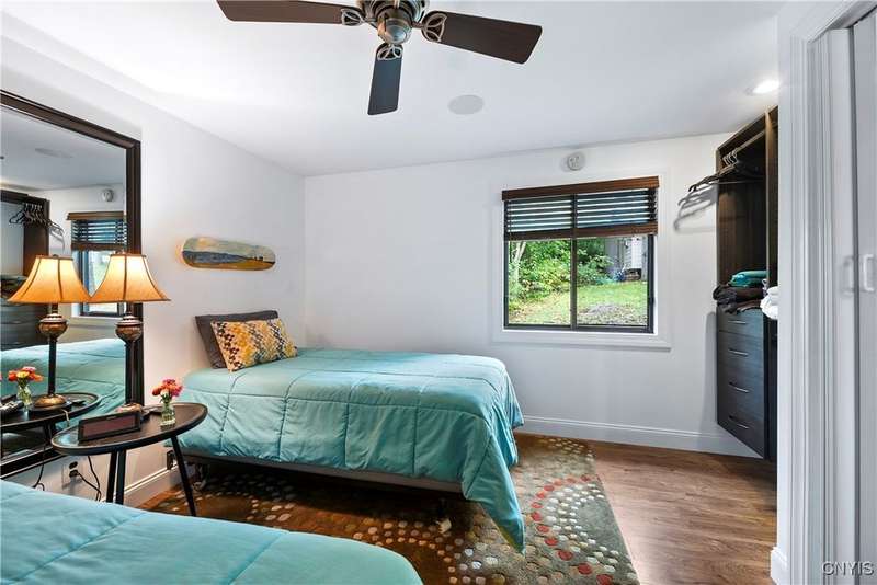 Welcome to Leopold Lodge, LLC ? Cottage "C" on Skaneateles Lake. Located just 4 miles from the picturesque village of Skaneateles, this beautifully updated retreat offers breathtaking lake views and spectacular sunsets. Cottage "C" offers parking at your door step and features 2 bedrooms and 2 full baths. The space has been thoughtfully designed for both comfort and style. The kitchen is a true highlight with Kraftmaid cherry cabinetry, granite countertops, a center island with seating, and stainless-steel appliances?all flowing seamlessly into the bright living area with panoramic lake views. On the main floor, you'll find a bedroom currently set up with two twin beds and a full bath with walk-in shower conveniently across the hall. A stacked washer/dryer and on-demand hot water add everyday ease. Upstairs, a spiral staircase leads to the spacious primary suite with private ensuite. Outdoor living takes center stage here with sweeping lake views from the private composite deck. The fully equipped outdoor kitchen, complete with granite countertops, propane grill, refrigerator, bar sink, abundant prep and dining space, and a power awning for shade, provide ample space for entertaining. Gather around the cozy fire pit or simply relax and take in the view. With a mini-split system and natural gas fireplace, you'll stay comfortable whatever the weather, while level access to the pebble beach and waterfront mere steps from your door make lake living effortless. Leopold Lodge encompasses 1.3 acres with 99 feet of pristine Skaneateles Lake frontage, shared by five cottages in this truly special community. Ownership includes 20 shares (one-fifth interest) along with exclusive use of Cottage "C." Owners enjoy benefits such as boat hoist rights, use of common areas, shared maintenance expenses, and low, low property taxes! Just pack your bags?Cottage "C" is move-in ready and waiting for you to enjoy the very best of Skaneateles Lake living.