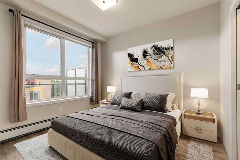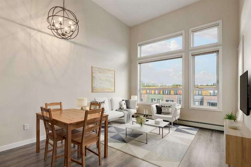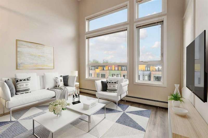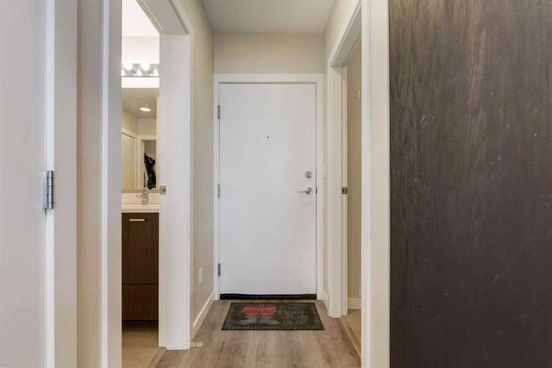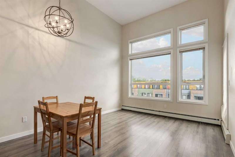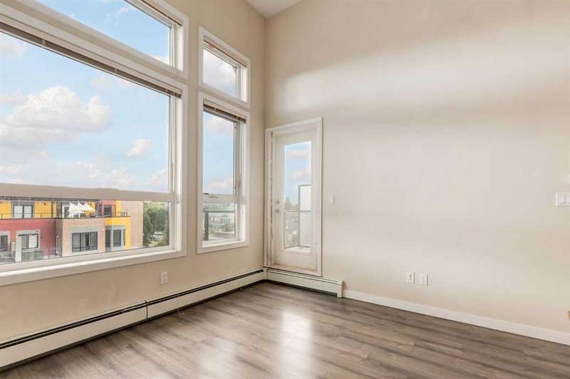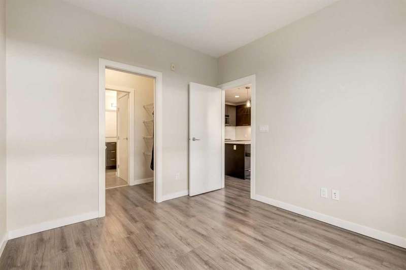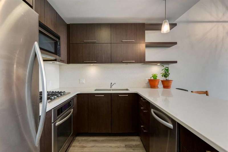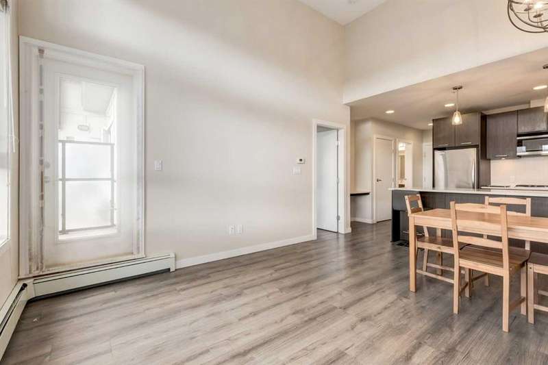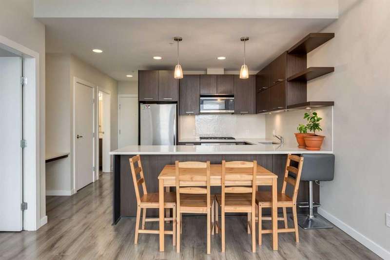 Enjoy incredible city views with sunny southwest exposure in the highly sought-after NEXT Condominium. This top-floor, 1-bedroom, 1-bathroom unit provides close to 600 square feet of living space with 13-foot ceilings in the living area and ample windows, allowing for abundant natural light throughout the day. The open-concept layout includes quartz countertops, stainless steel appliances, a gas cooktop, and a large island overlooking the living room, designed for efficient use of space and easy entertaining. The master bedroom features a 4-piece ensuite, a walk-through closet, and in-suite laundry. Additional features include a gas line for a barbecue, a chandelier in the dining area and master bedroom, a cozy den suitable for an office, in-unit storage, an assigned storage locker, and titled parking. NEXT offers a range of amenities, including a fitness center, underground visitor parking, bike storage, car and pet wash, a sheltered courtyard, and a garden area. This pet-friendly complex (with approval) is located just steps from Bridgeland’s amenities, including restaurants, cafes, bars, and shopping, and is minutes from the downtown core. 2025 City Assessment Value is $357,500(Unit $347,500 & Parking stall $10,000). Please click the Virtual Tours for more details!