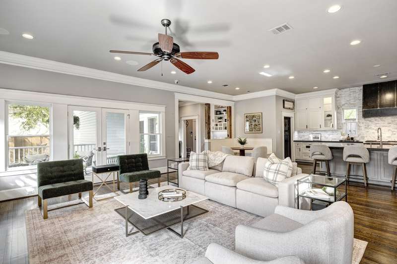 Set in the heart of the Heights - a rare find renovated & expanded by Southland Homes in 2014. Featured in a national magazine, this home expertly blends antique touches with modern features. Chef’s dream kitchen offers island topped w/leathered granite, Sub-Zero fridge, 48” Wolf range w/ custom steel vent-hood & Calacatta Gold marble backsplash. Breakfast room, wet bar w/wine fridge & ice maker. Open pass-through to dining room ensures seamless flow. Kitchen opens to light-filled family room w/fireplace & direct access to covered back porch for effortless indoor-outdoor living. Study offers custom cabinetry & shiplap ceiling. The luxurious primary suite features chic bath w/free-standing tub & walk-in shower clad in dramatic mosaic tile w/dual shower heads & rain shower. Mudroom, turfed backyard, oversized walk-in closets, guest bed on 1st floor, ample storage, & oversized garage. Less than half mile from dining & shopping on 19th. This home is not to be missed! All info per Seller.