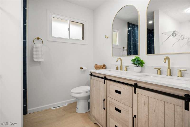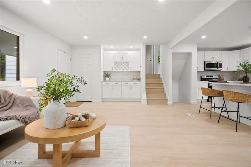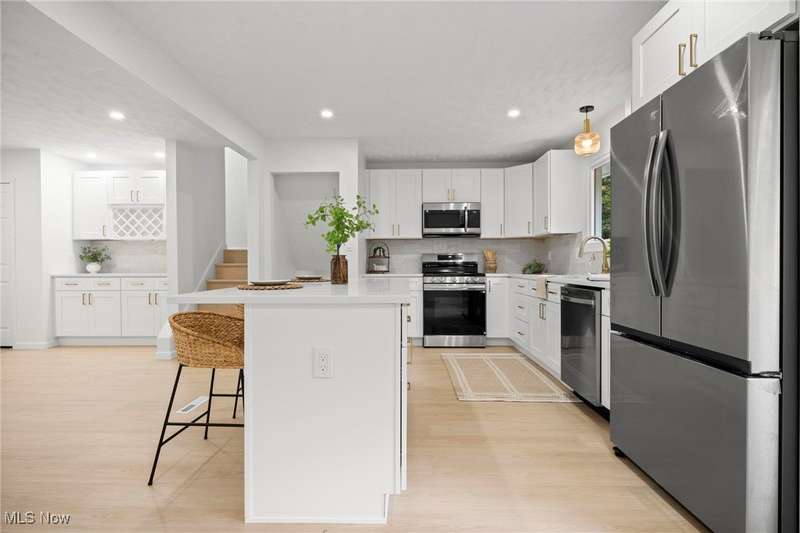 Welcome to 9035 Wallings Road - a stunning, fully renovated residence that perfectly blends modern elegance with serene natural surroundings. Nestled on nearly 2 acres in North Royalton, this 3-bedroom, 2-bath home offers over 2,000 square feet of luxurious living space designed for both comfort and style. The open-concept layout is anchored by a chef-inspired kitchen featuring white shaker cabinetry, quartz countertops, a dry bar, and premium stainless steel appliances. White oak luxury vinyl flooring flows seamlessly throughout, enhancing the home's bright and sophisticated aesthetic. The primary suite serves as a private retreat with a spacious walk-in closet and a spa-like ensuite bath. The finished walkout basement provides additional living space, perfect for entertaining or relaxing. Step outside to enjoy peaceful views and ample outdoor space on your expansive 1.9-acre lot. Every detail has been thoughtfully curated to deliver a refined living experience in one of North Royalton's most desirable settings.