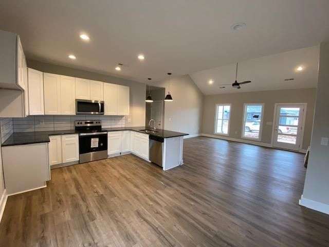 Home has tile backsplash in kitchen with granite countertops electric range and oven, microwave, garbage disposal with double stainless kitchen sink. Living room has vaulted ceiling with ceiling fan. Master bedroom has trey ceiling with ceiling fan. Master bath has a soaker tub and separate tiled shower with glass door and a double sink vanity with granite countertops. Guest bathroom has tub and shower combination and granite countertops on vanity. This home has the following incentives: 4.8% 30-year fixed-rate (APR 5.96%) from Swan Financial Home Loans. NMLS#2473. This is for VA, USDA & FHA loans. *Rate with approved credit & approved offer. Terms and conditions apply.
