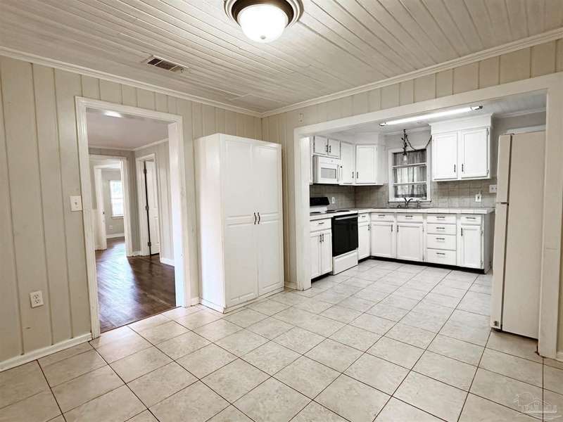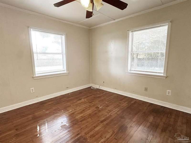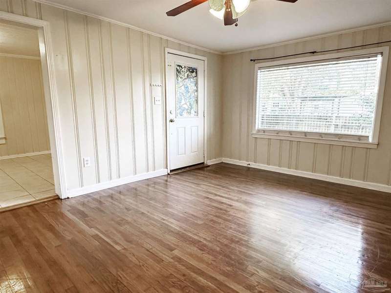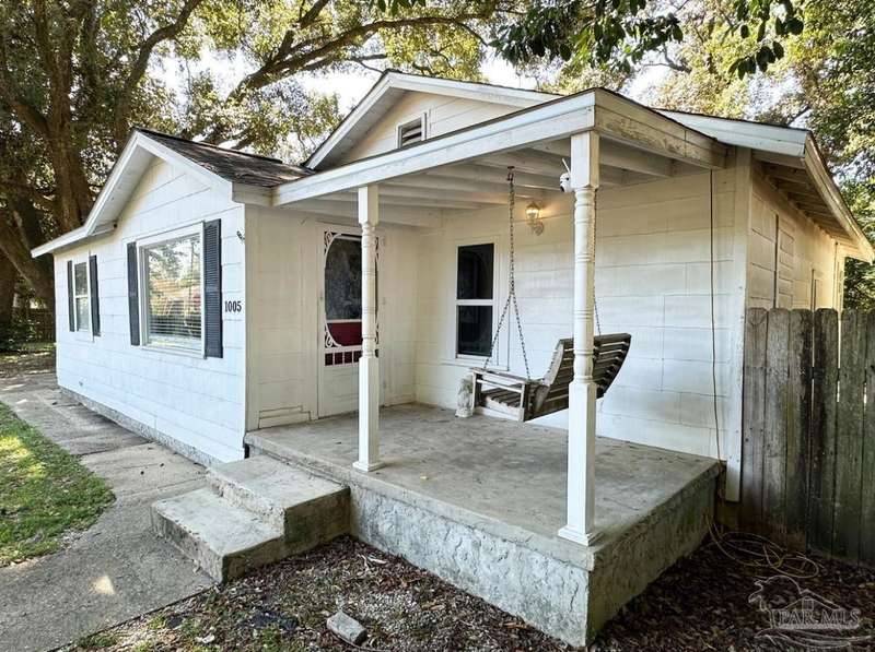 Charming 3-Bedroom Home on a Spacious Double Lot! Welcome home to this inviting 3-bedroom gem situated on a generous 0.33-acre double lot. A covered front porch sets the stage for the warmth inside, where you'll find original hardwood floors, cozy built-ins, and wood plank ceilings in the kitchen and dining area-details that give this home exceptional character. The large kitchen opens seamlessly to the dining space, making it ideal for both everyday living and entertaining guests. A separate laundry room offers added convenience and leads to the expansive, fully fenced backyard. This property includes an additional parcel, offering endless possibilities: enjoy the oversized yard, build another home, or add a garage or carport on the existing concrete slab. The home and lot are already separated on city tax rolls, simplifying future building plans. Recent upgrades ensure peace of mind, including a new roof (2018), brand-new HVAC system (2025), and a newer water heater. Perfectly located just 10 minutes from downtown Pensacola and 20 minutes from NAS, you'll be close to shopping, dining, and everyday conveniences. Whether you're a first-time homebuyer or an investor seeking opportunity, this property offers comfort, character, and plenty of potential!