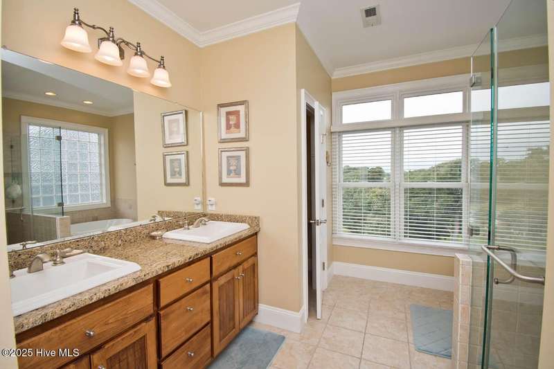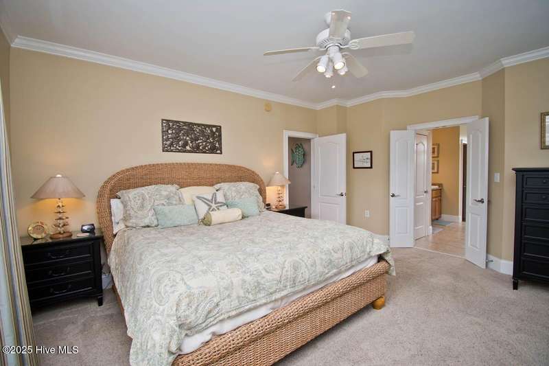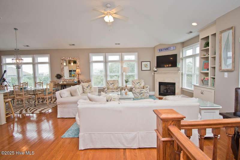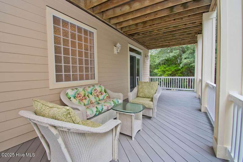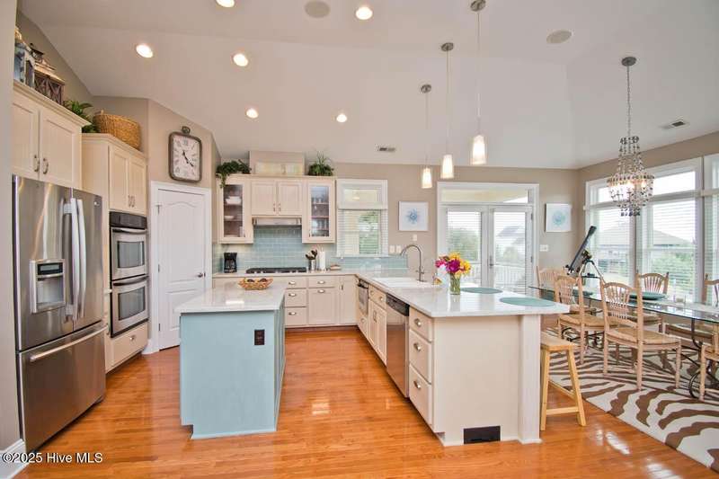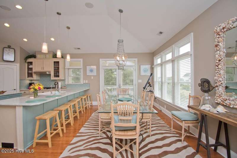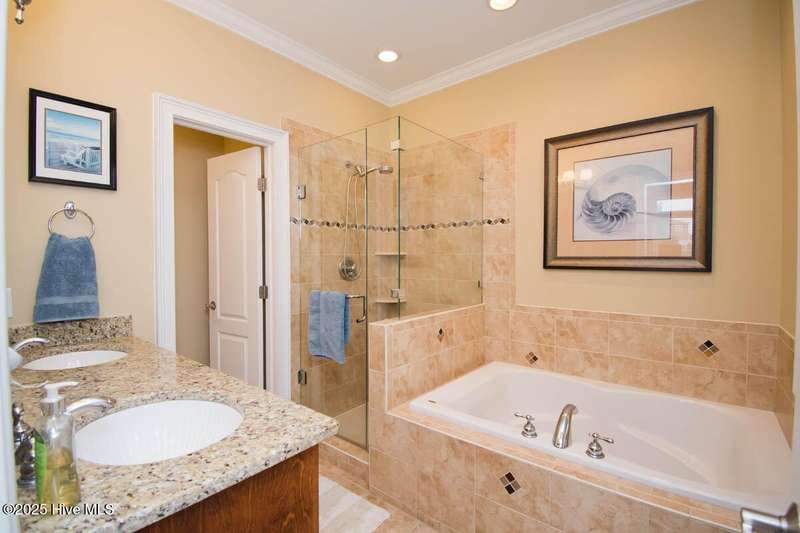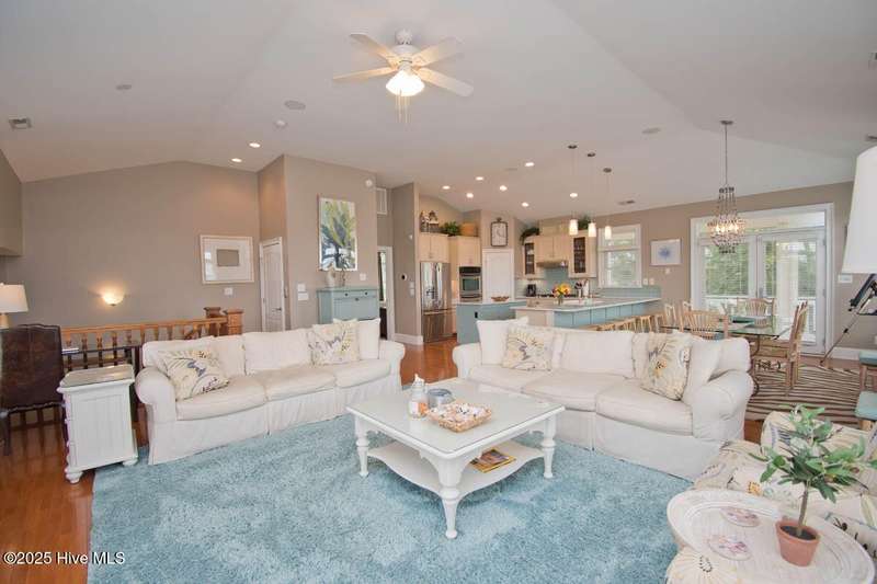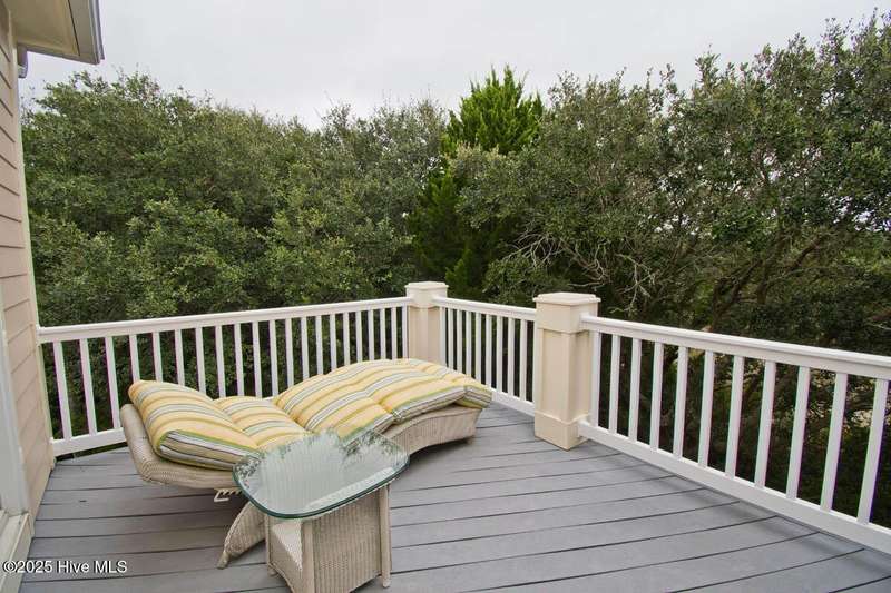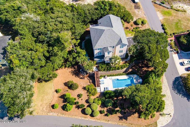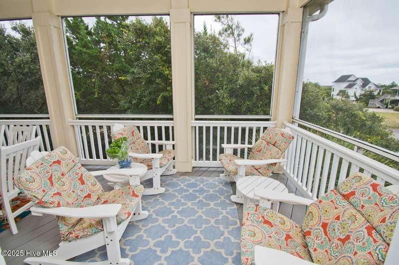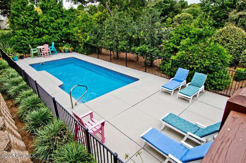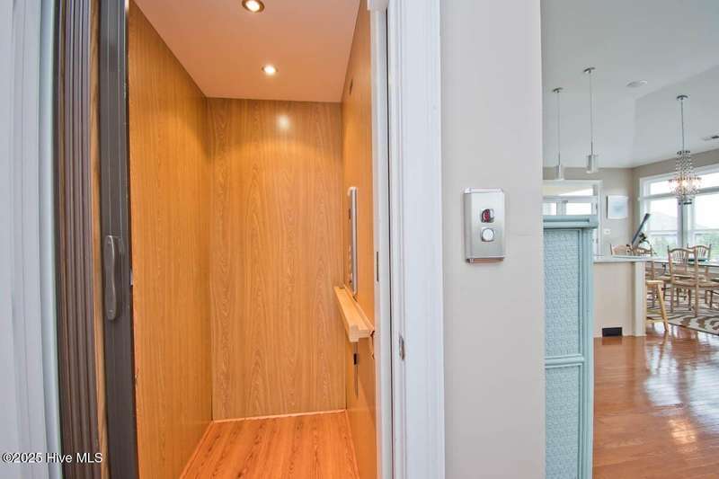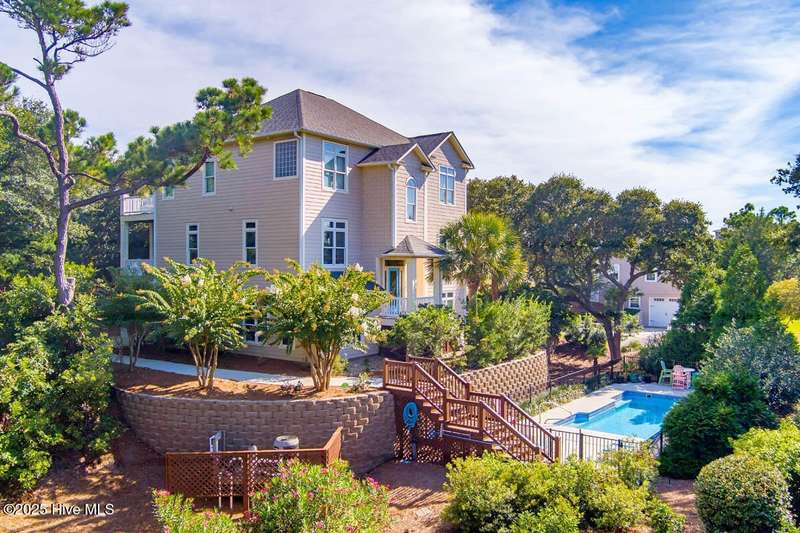 Step into COASTAL ELEGANCE in this IMMACULATE 3,335 sq. ft. fully furnished home in the prestigious, gated, oceanfront community - Lands End! Offering 4 bedrooms (2 master suites) + an additional bunk room, 5.5 baths, and a 3-car garage, this home blends luxury, privacy, and functionality—both inside and out. The reverse floor plan fills the top level with natural light, ocean breezes, and sunset views, plus a screened porch for year-round enjoyment. An elevator takes you to all 3 levels. All levels feature 9-foot ceilings, with the exception of the living, dining and kitchen areas, where vaulted ceilings create an open, airy feel. Set on a private, elevated lot with a peek of the ocean from the 3rd level, you'll also have bonus views of the nearby pickleball and tennis courts, making it easy for a quick match! You'll enjoy a private, heated saltwater pool with underwater multi-color LED lighting, hot tub, outdoor shower, and abundant composite decking with Polywood furniture - perfect for entertaining or relaxing after a day at the beach. The chef's kitchen features a 6-burner Kitchen Aid gas cooktop, double oven, separate Kitchen Aid ice maker, and microwave drawer, while recent updates include a GOLD fortified roof, refreshed pool tile, HVAC systems, and more. With community amenities like an oceanfront clubhouse, pool, tennis & pickleball courts, this property delivers the best of coastal living—move-in ready and beautifully furnished. A golf cart (included!) makes beach access quick and easy. At just under .50 acre, you'll enjoy exceptional privacy due to the adjacent wooded common area that separates the closest neighbor. Make plans to tour this beautiful home today and soon you can be living a wonderful, coastal lifestyle in Emerald Isle!