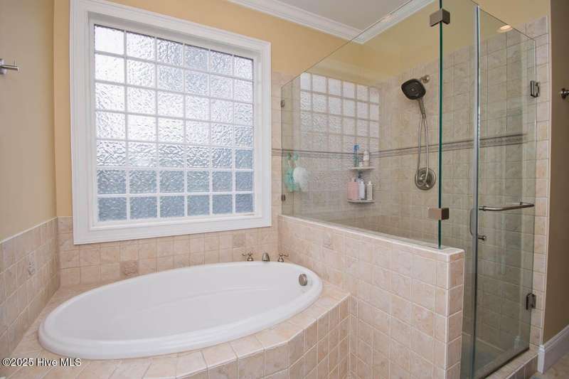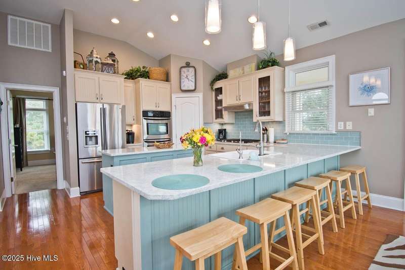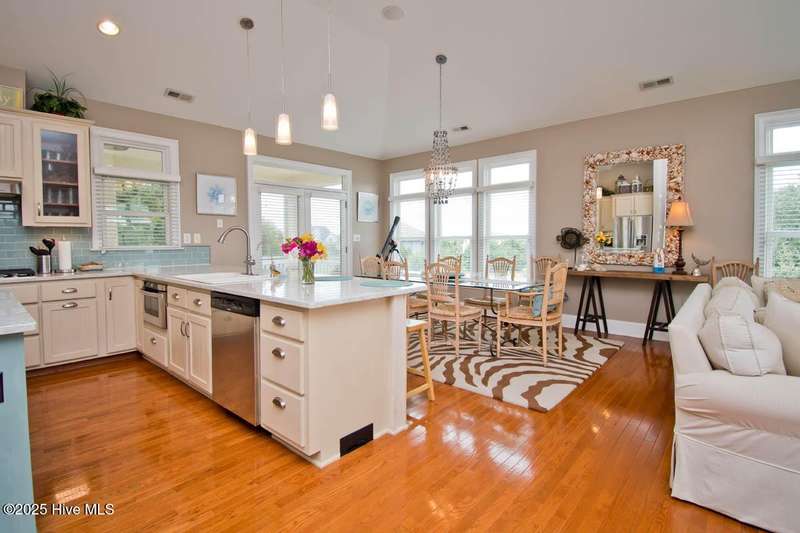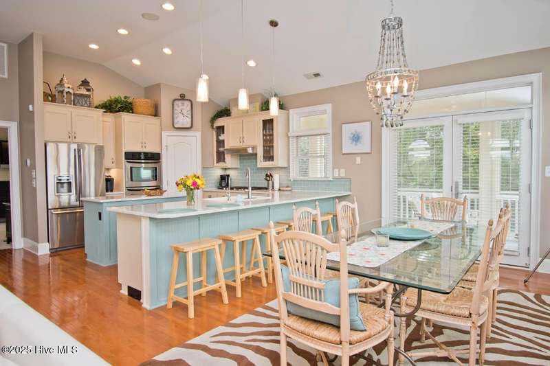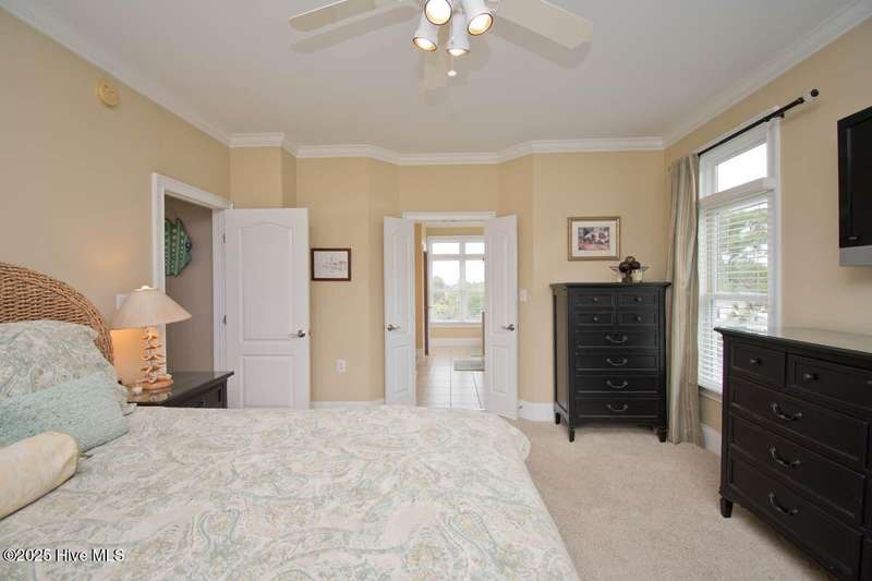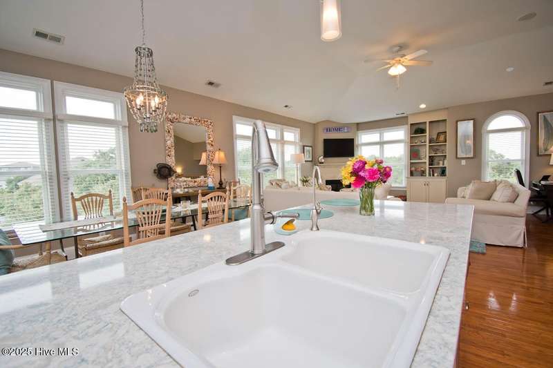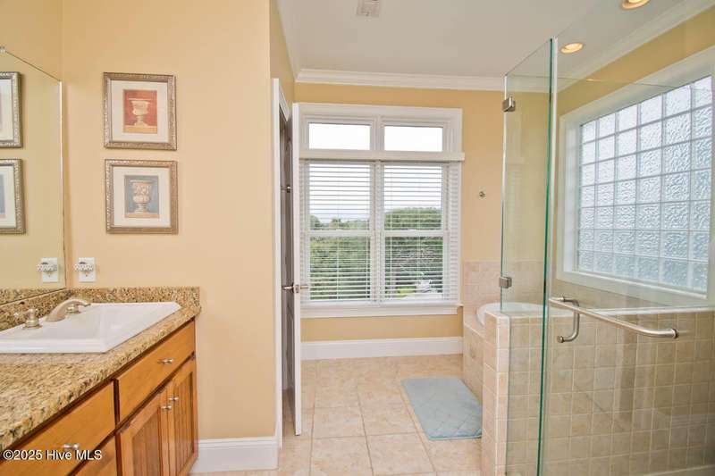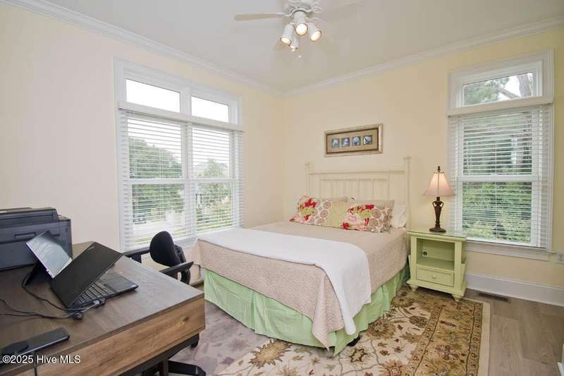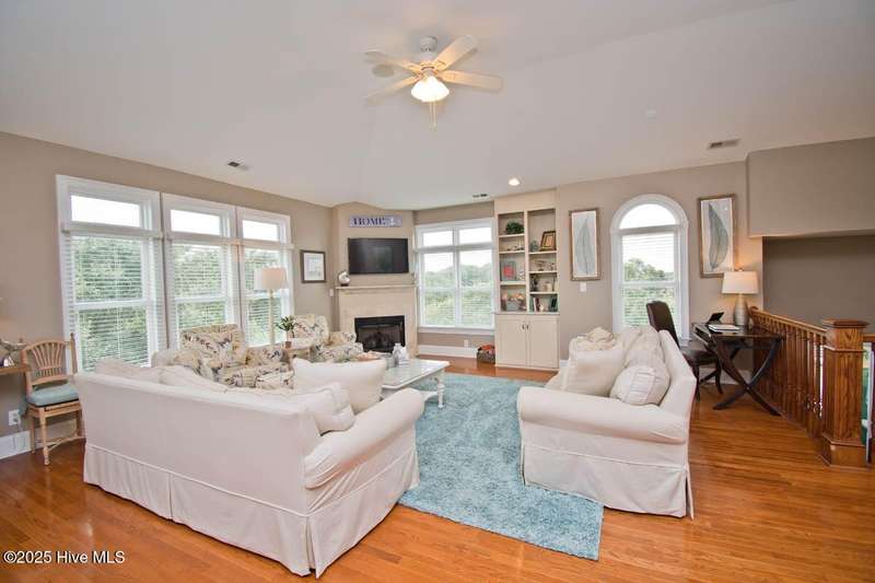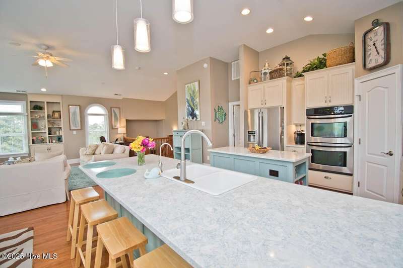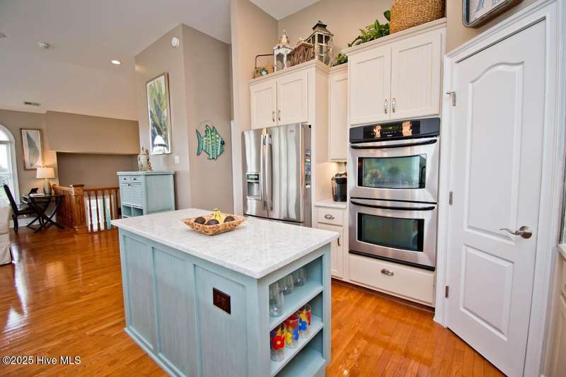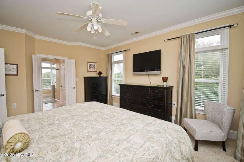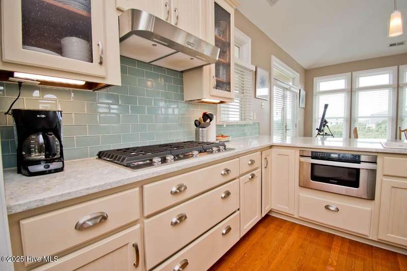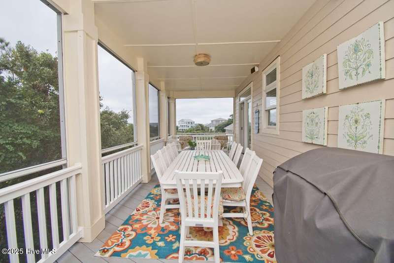 Step into COASTAL ELEGANCE in this IMMACULATE 3,335 sq. ft. fully furnished home in the prestigious, gated, oceanfront community - Lands End! Offering 4 bedrooms (2 master suites) + an additional bunk room, 5.5 baths, and a 3-car garage, this home blends luxury, privacy, and functionality—both inside and out. The reverse floor plan fills the top level with natural light, ocean breezes, and sunset views, plus a screened porch for year-round enjoyment. An elevator takes you to all 3 levels. All levels feature 9-foot ceilings, with the exception of the living, dining and kitchen areas, where vaulted ceilings create an open, airy feel. Set on a private, elevated lot with a peek of the ocean from the 3rd level, you'll also have bonus views of the nearby pickleball and tennis courts, making it easy for a quick match! You'll enjoy a private, heated saltwater pool with underwater multi-color LED lighting, hot tub, outdoor shower, and abundant composite decking with Polywood furniture - perfect for entertaining or relaxing after a day at the beach. The chef's kitchen features a 6-burner Kitchen Aid gas cooktop, double oven, separate Kitchen Aid ice maker, and microwave drawer, while recent updates include a GOLD fortified roof, refreshed pool tile, HVAC systems, and more. With community amenities like an oceanfront clubhouse, pool, tennis & pickleball courts, this property delivers the best of coastal living—move-in ready and beautifully furnished. A golf cart (included!) makes beach access quick and easy. At just under .50 acre, you'll enjoy exceptional privacy due to the adjacent wooded common area that separates the closest neighbor. Make plans to tour this beautiful home today and soon you can be living a wonderful, coastal lifestyle in Emerald Isle!