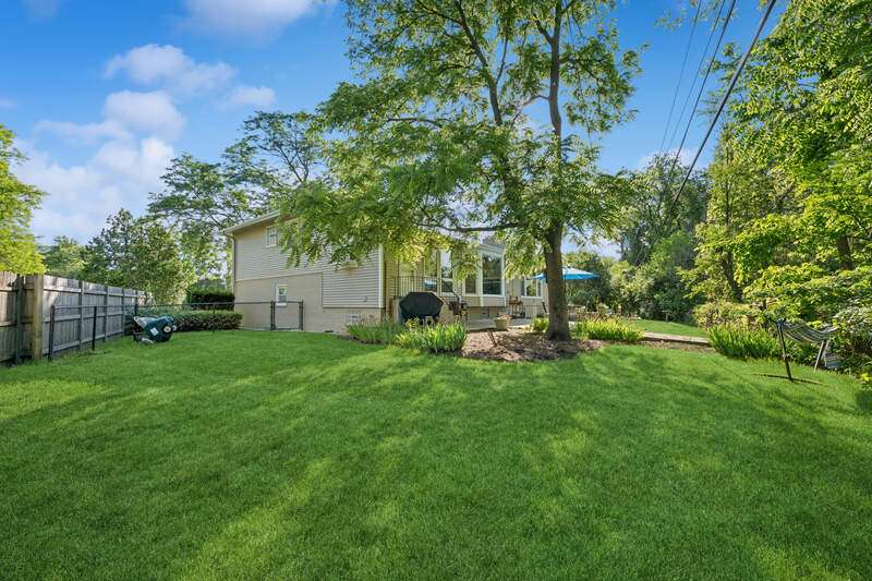 Welcome to this Freshly Painted, spacious home at the end of a quiet cul-de-sac. Ready to move right in! The amazing property is almost 1/2 acre, and provides the perfect setting for this 4 Bedroom, 2 1/2 Bath home. You'll Love the wonderful open floor plan. The granite tiled Entry leads to a fabulous light, bright Family Room with bay windows, raised hearth fireplace, and hardwood floors...perfect for entertaining! The updated Powder Room & garage are conveniently located off the foyer too. The Living Room, and Dining area have dramatic vaulted ceilings, and overlook the wide fenced yard. Enjoy the updated kitchen with 42 " cabinets, granite counters & newer appliances... Easy access to the yard & patio too. Additional land beyond the yard is a wonderful privacy buffer, and enables opportunities for lots of fun activities. The Upper level with skylight (& remote controlled shade) has 4 Bedrooms, including The Primary Suite & a totally remodeled Primary Bath with steam shower, and 3 additional Bedrooms, updated Hall Bath, & huge walk-in linen closet. There is also a sub-basement with an area that could be work-out area, playroom, & separate laundry area & storage closets. Additional features include: Hardwood floors & recessed/flush lights throughout. Some of the major updates include: Roof(2023), Siding(2023), Garage Door(2023), Kitchen- (most appliances '24), Patio(10yrs) & more! Close to Parks, Pool & Deerfield's top rated schools!!