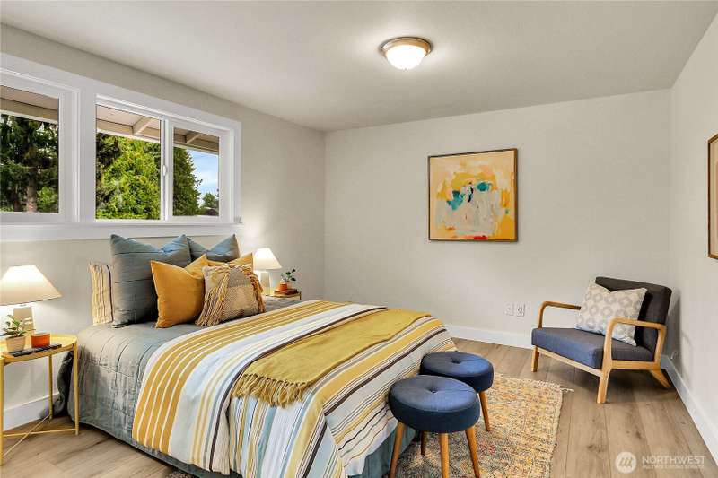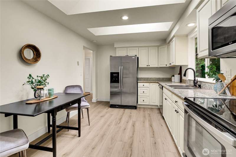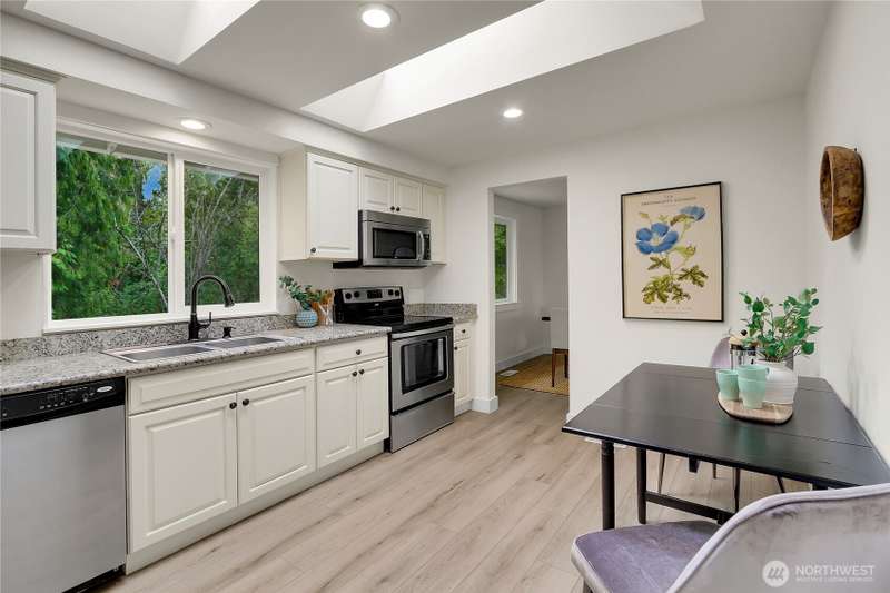 Welcome to this beautifully maintained split-level home nestled on a quiet street in the heart of Kirkland. Upper level features hardwood floors, bright living and dining areas, and a kitchen with ample storage—perfect for entertaining. Upper level also includes a primary suite with private bath, and an additional full bath for guests. Lower level offers a second bedroom, third full bath, and flexible bonus room for an office, media room, or guest space. Enjoy a fully fenced, private yard with room for gardening, pets or play. An attached two-car garage for storage and parking convenience. Located in the Lake Washington School District, close to parks, shopping, dining, transit, and I-405.