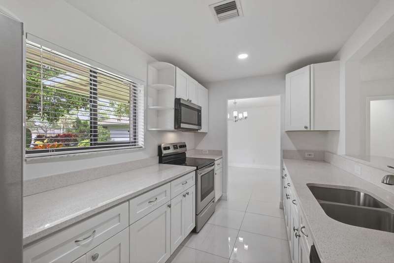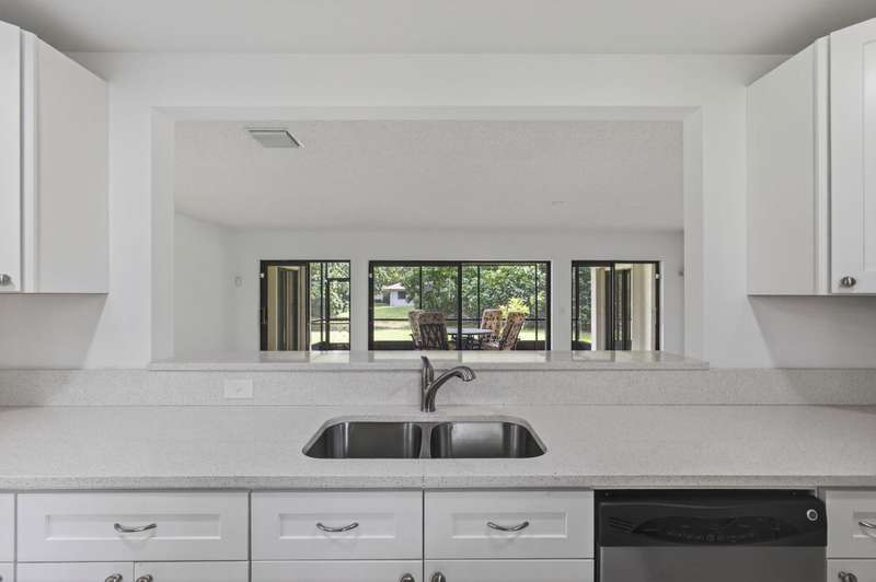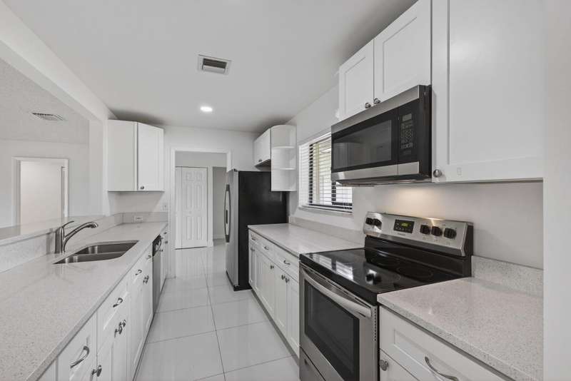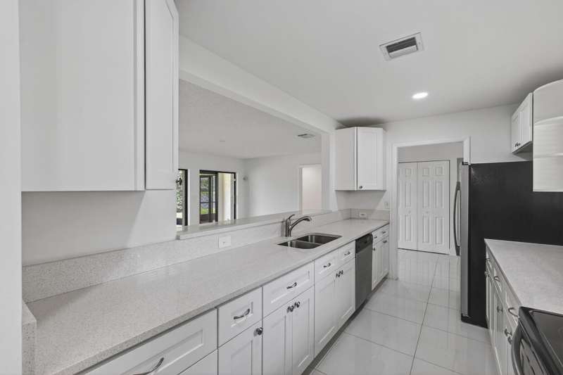 This is the home you've been waiting for! Easy living in this completely renovated, move-in ready 3 bedroom, 2 bath lakefront home located in the peaceful hidden oasis of Fox Hollow. Living here is like living in a nature reserve, nestled into mature lush native landscape that supports the local water birds, butterflies and wildlife. Enjoy a kaleidoscope of colors of the lake from sunrise to sunset. Tucked away at the end of a quiet cul-de-sac, this waterfront home has a desirable split floor plan and coveted open living concept. The kitchen features wood white Shaker cabinetry, stainless appliances and quartz countertops. There is a walk-in pantry off the kitchen that provides additional storage. The main living area has gleaming white large scale tile throughout. The
