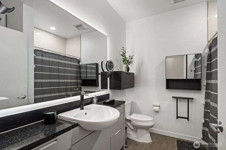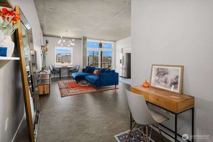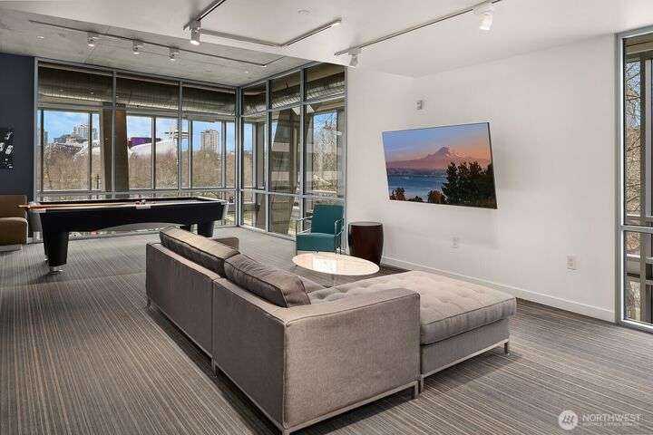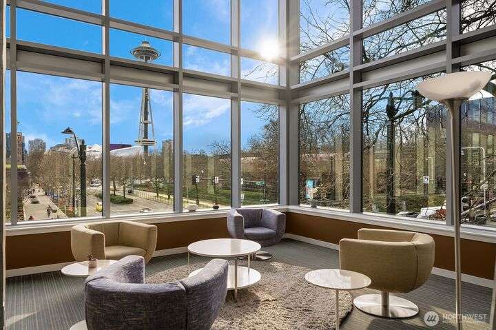 Built of steel and concrete, the Lumen was created to provide peaceful and luxurious living, community spaces, views of Downtown Seattle, South Lake Union and the Space Needle while bringing urban living with European style to Queen Anne. This exceptional home features soaring ceilings, exposed concrete, designer light fixtures, full size w/d, expansive walk-in closet, air conditioning, private balcony and impressive views of Downtown Seattle and South Lake Union. Enjoy a multitude of common area features including concierge, outdoor entertaining spaces with BBQ, media room, event space and game room with pool table. Located minutes from the Seattle Center, Climate Pledge Arena, Downtown and South Lake Union.
