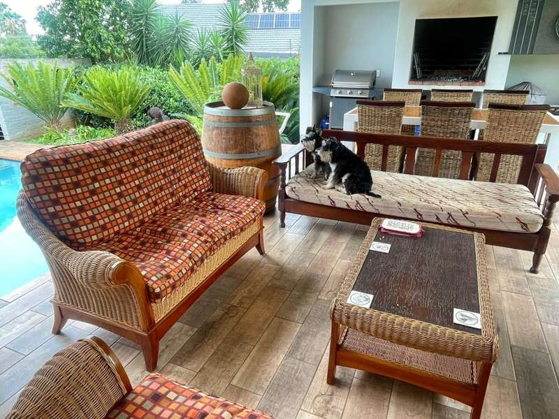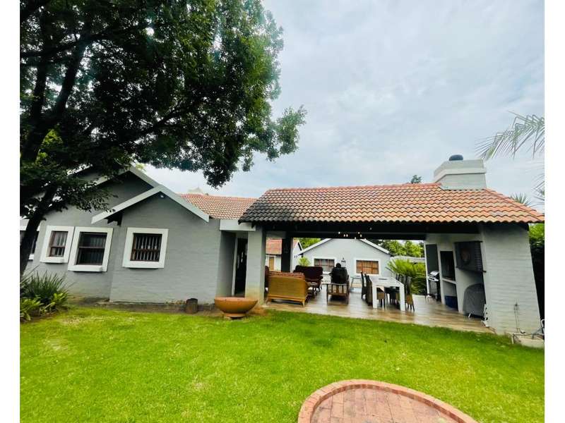 LYNNWOOD SOUTH VILLAGE Charming cottage style family home with a beautiful garden and poolside patio located in a 24 hour security village. A single story home with entrance hall and open plan dining and lounge area. Modern kitchen with granite tops, scullery and breakfast nook. Four spacious, north facing bedrooms, main en suite with walk in cupboard. Second bathroom with shower and third with bath. Separate family room with bar area opens unto a large covered patio with build in braai Extras Double garage Staff Quarters Outside office and second double garage which can easily be converted to a flatlet or studio. Borehole Boma braai Easy access to N1 Dual mandate Call to arrange your private viewing.