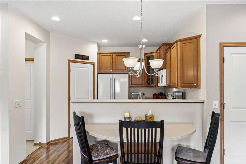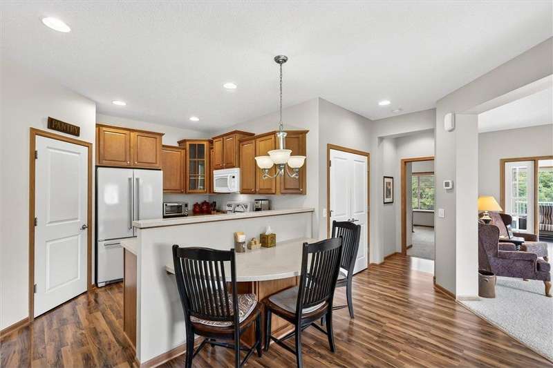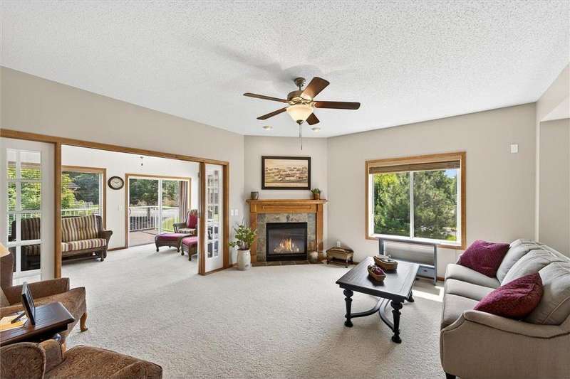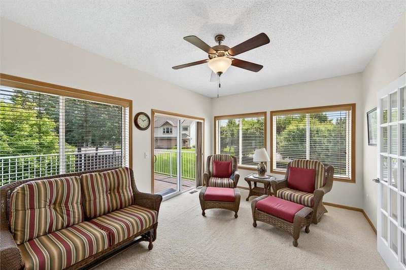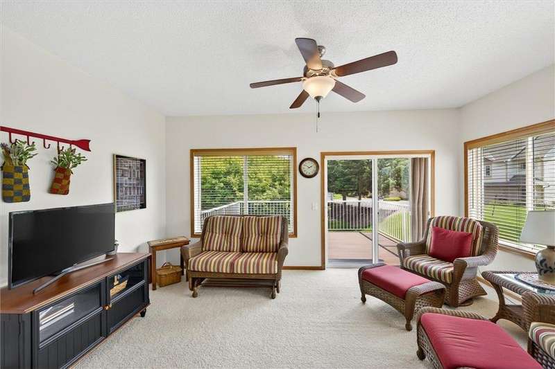 The one level living you've been waiting for. This home is set on a corner lot in a quiet neighborhood with nature views from every window and your newer maintenance free deck. The main floor has a beautiful sunroom and a great layout including two bedrooms and two bathrooms on the main level as well as a very spacious laundry room. The lower level adds two more bedrooms, a full bath and plenty of space for a family room and crafting space. Many updates including newer roof, driveway, garage door, maintenance free deck, and many appliances. Less than 5 minutes to charming downtown Victoria and golfing. Wineries, the MN Landscape Arboretum and expansive parks are close by. The Laketown neighborhood is quiet and walkable.