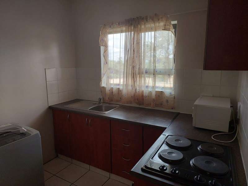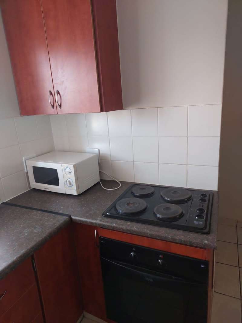 Neat one bedroom flat in a secure complex with security prepaid meter One bedroom flat with open plan kitchen lounge Bath room bath basin and toilet with a shower above the bath Kitchen with a under counter oven and a 4 plate hob with cupboards Ideal for the first time buyer or investor Single carport call to view.