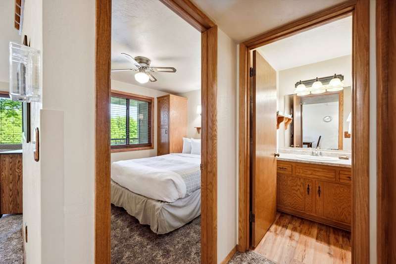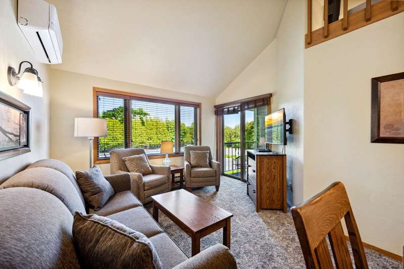 Don't miss out on this exceptional opportunity! This second-floor suite boasts two bedrooms, a living room with a sleeper sofa, a full kitchen, and a dining area. Enjoy the privacy of a bedroom with a king bed an additional bedroom with a king bed in the semi-private loft. Relax as you overlook the outdoor pool area from your unit. The Waterbury Inn offers fantastic amenities including an indoor pool with a hot tub, an outdoor pool, an exercise room, a playground, and a picnic area with gas grills. Conveniently located just a short distance from Ephraim and downtown Sister Bay.