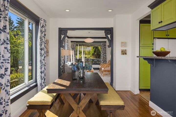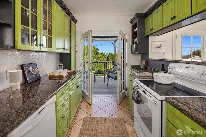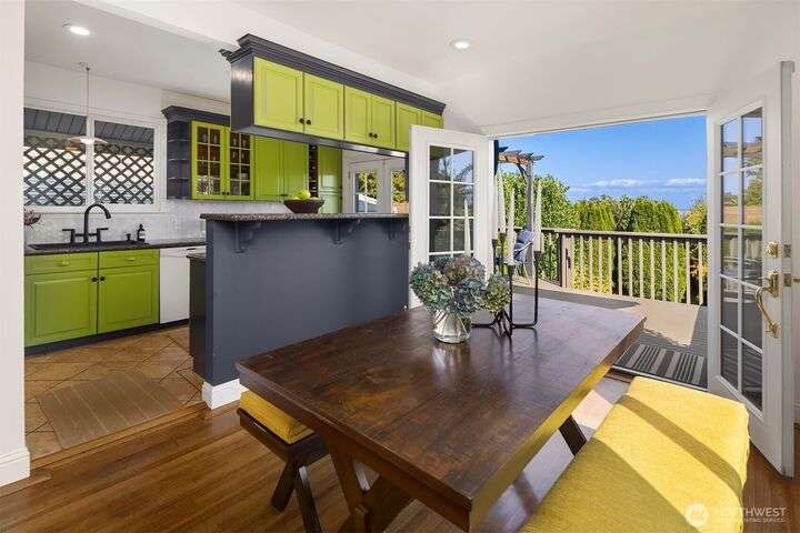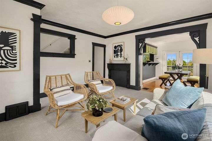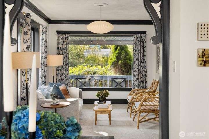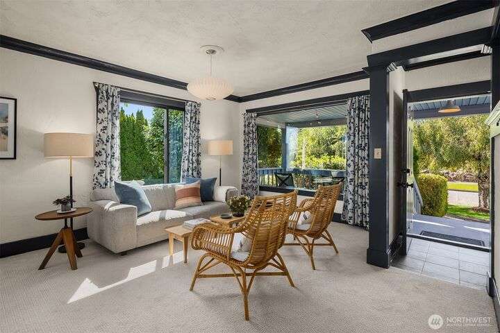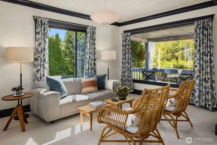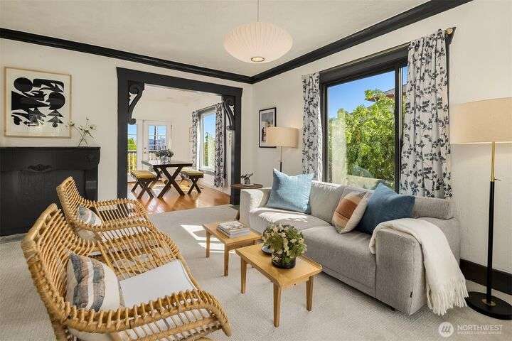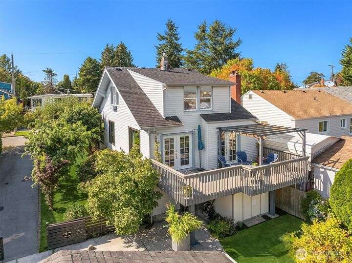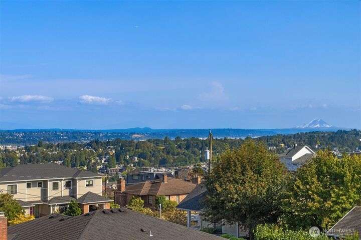 Located in the charming neighborhood of Belvidere resides this stylish & sophisticated home. Light filled rooms enhanced with vintage crown molding, modern light fixtures & open floor plan invites you in. Kitchen & dining room each with french doors leading to generous size deck offering views of Mt. Rainier, Cascade Mountains & City Skylines. Other highlights are spacious bedrooms, full bath on upper level, newer 3/4 bath in the lower level, plus bonus rooms & 2022 new roof. Lush gardens & private backyard enrich outdoor living & includes atwo-car garage sized studio/office & plenty of offstreet parking. Easy jaunt to restaurants, cafes, farmers market & shopping in the Junction. This home is very special!