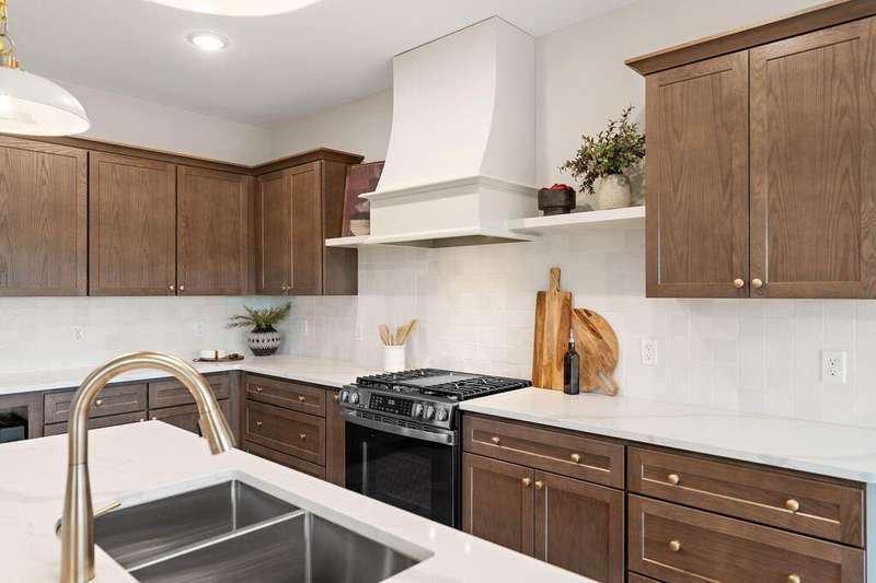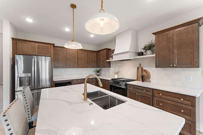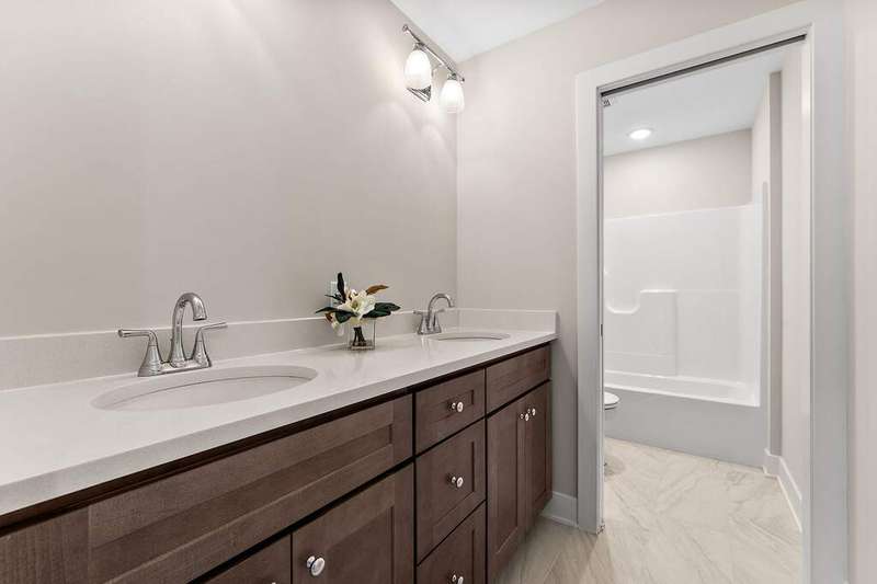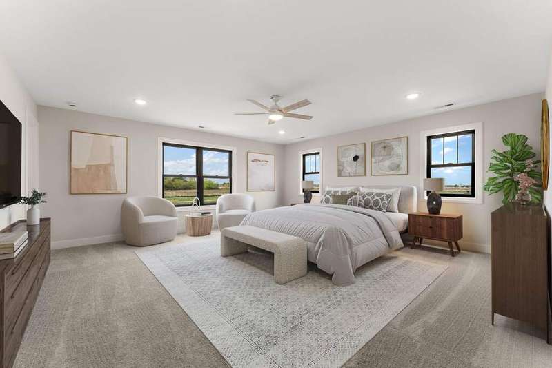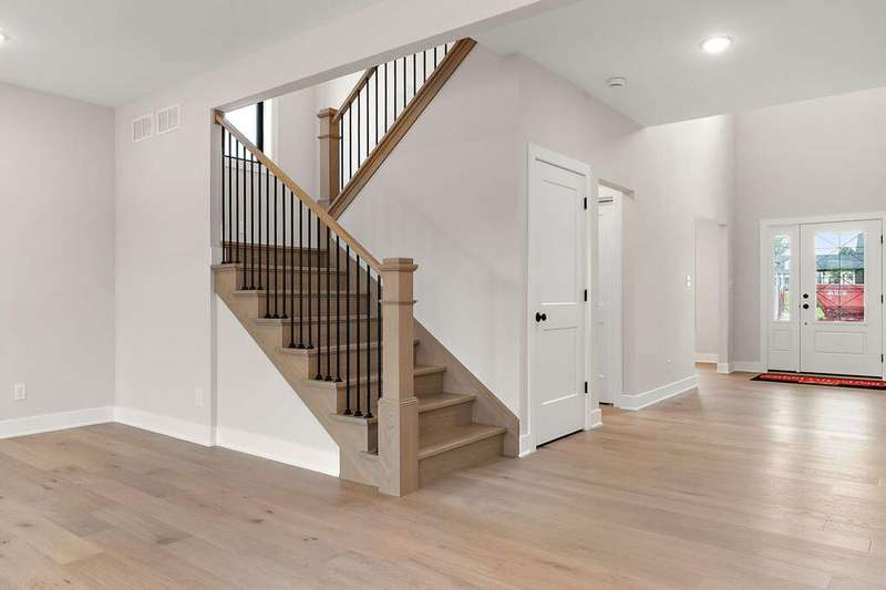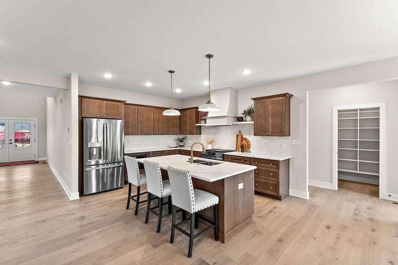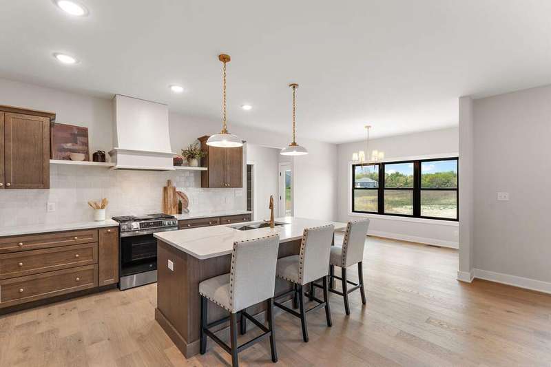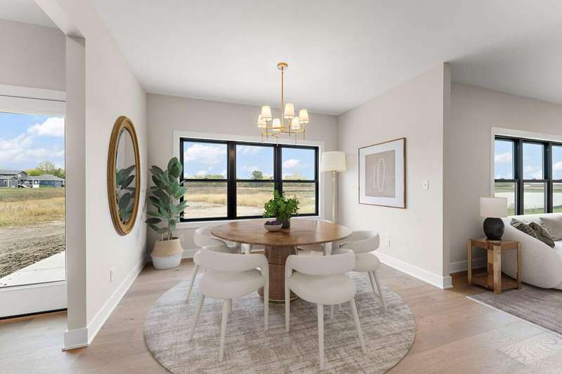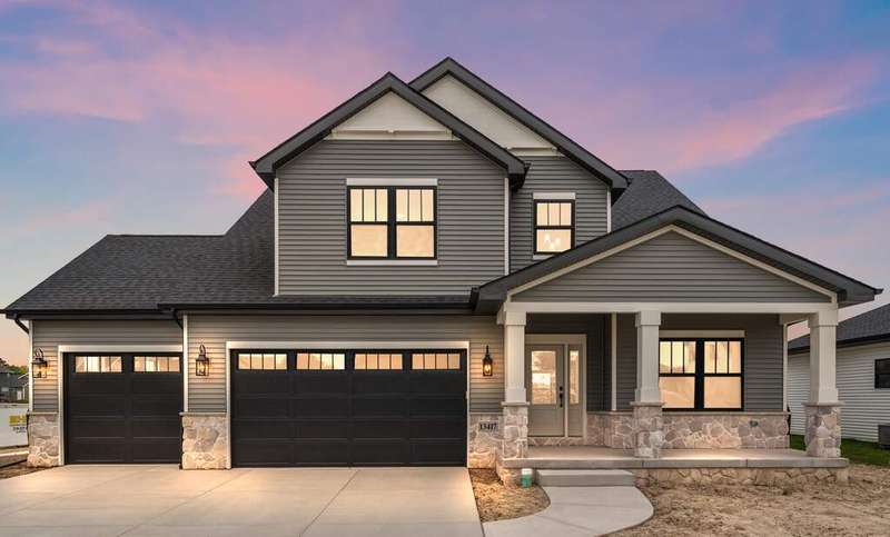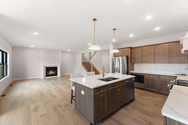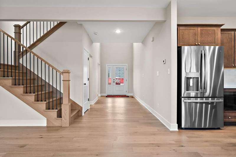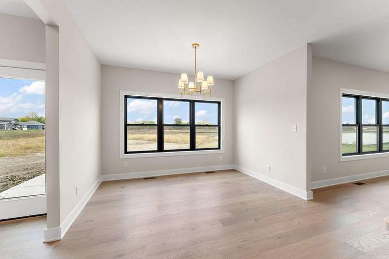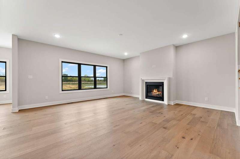 Welcome to the Parker, a stunning new construction in the picturesque Lakeside subdivision. This beautifully designed two-story home is COMPLETED AND READY TO MOVE IN and offers 4 spacious bedrooms, 2.5 baths, and a modern open-concept layout. The oversized great room features a cozy fireplace and flows effortlessly into the gourmet kitchen, showcasing quartz countertops, elegant Spring Orchard cabinetry, stainless steel appliances, and a walk-in pantry. Engineered hardwood flooring extends throughout the main living areas, adding warmth and continuity to the space. The main floor also includes a versatile den, a convenient mudroom, and a stylish half bath. Upstairs, the primary suite is your private retreat, complete with a large walk-in closet and a luxurious ensuite bath featuring dual vanities and a custom-tiled shower. Three additional bedrooms, a full bath, and a laundry room complete the upper level. Thoughtful details abound throughout the home, including 9' ceilings on the main level, quartzvanities in the bathrooms, iron baluster stair railings, and an 8' ceiling full basement offering plenty of potential. The 3-car garage is fully insulated, drywalled, and painted plus a sink for added convenience. Situated on a desirable corner lot with scenic pond views, this home is directly across from the community park--perfect for outdoor enjoyment. Don't miss your opportunity to make the Parker your dream home in Lakeside!