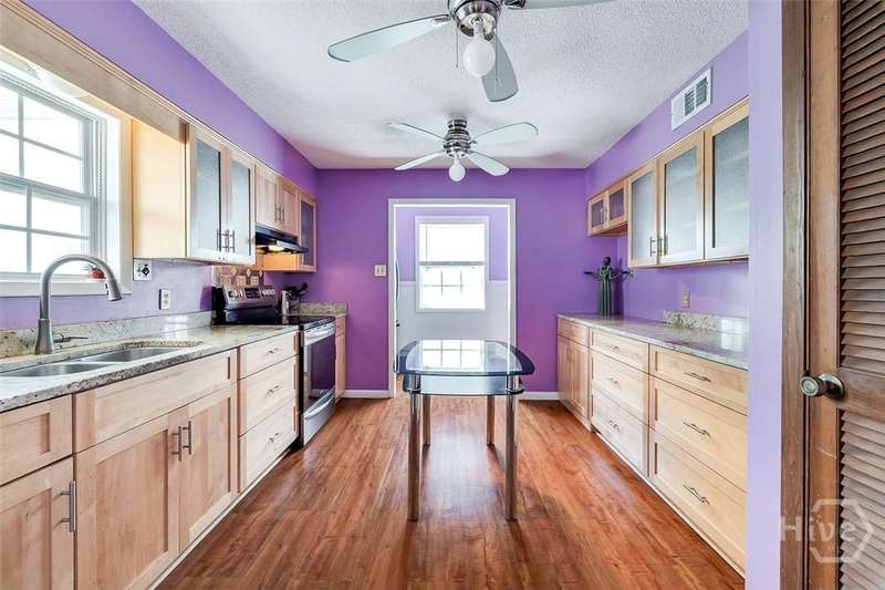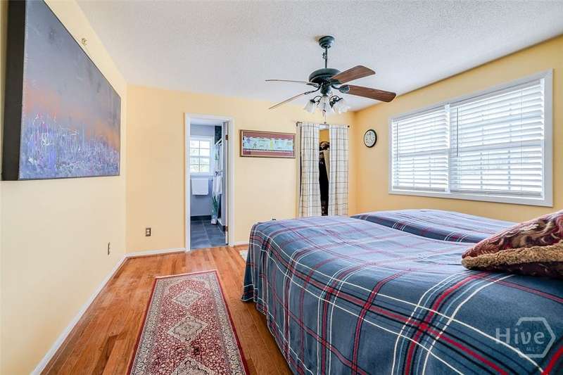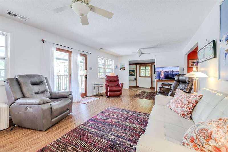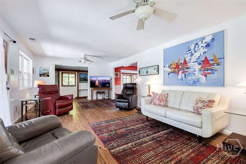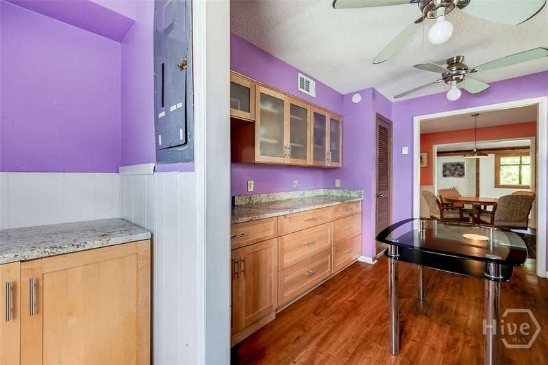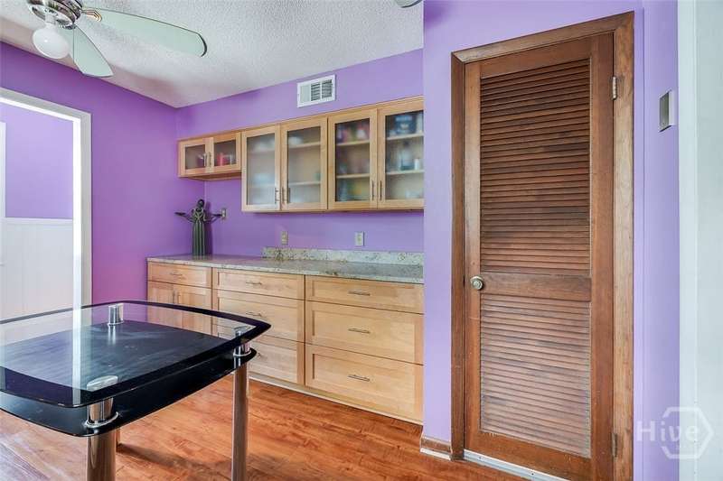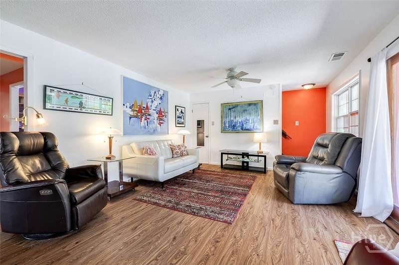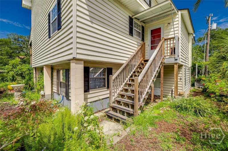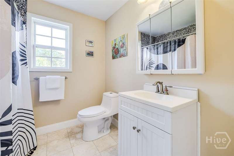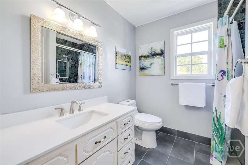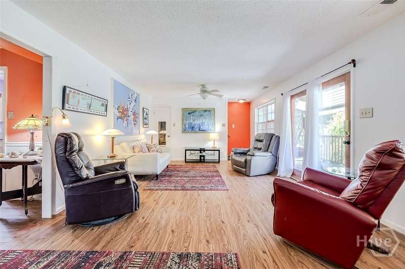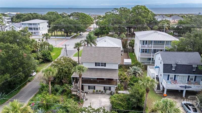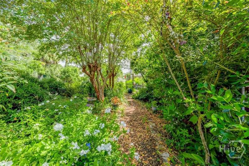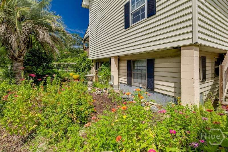 Priced to sell! This Tybee Island retreat, situated just three blocks from the beach boardwalk! This oasis features a spacious three-story layout, beautiful gardens and a second story balcony ideal for soaking up ocean breezes. The main floor living spaces feature luxury plank vinyl flooring in all areas. Updated kitchen with maple cabinets, granite counters & pantry for extra storage. A cozy sunroom with built-in shelving is perfect for use as office, reading room or library. The second floor has two large primary suites, each with ensuite baths, fully tiled showers & walk-in closets. Third level bedroom has a large half bath. The ground level of the building has hard brick flooring, is plumbed with full bath and kitchen & has two doors leading to the gardens. A gardeners half bath with a door leads to the gardens & outside storage rooms for tools. This lush master gardener oasis has many unusual plants perfect for our area. Enjoy island life & the beach along with beautiful gardens.