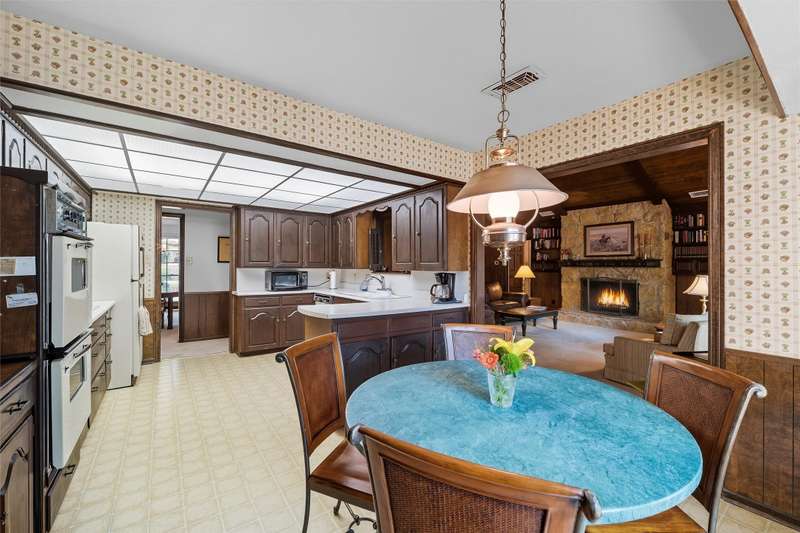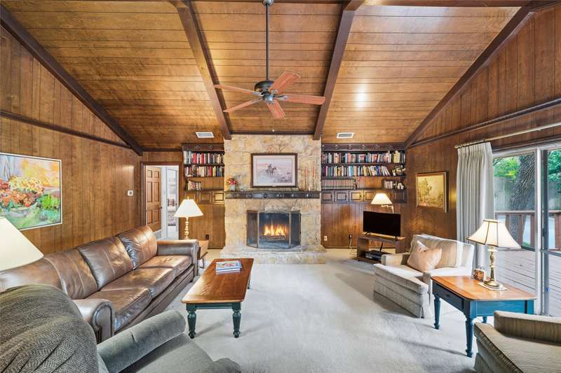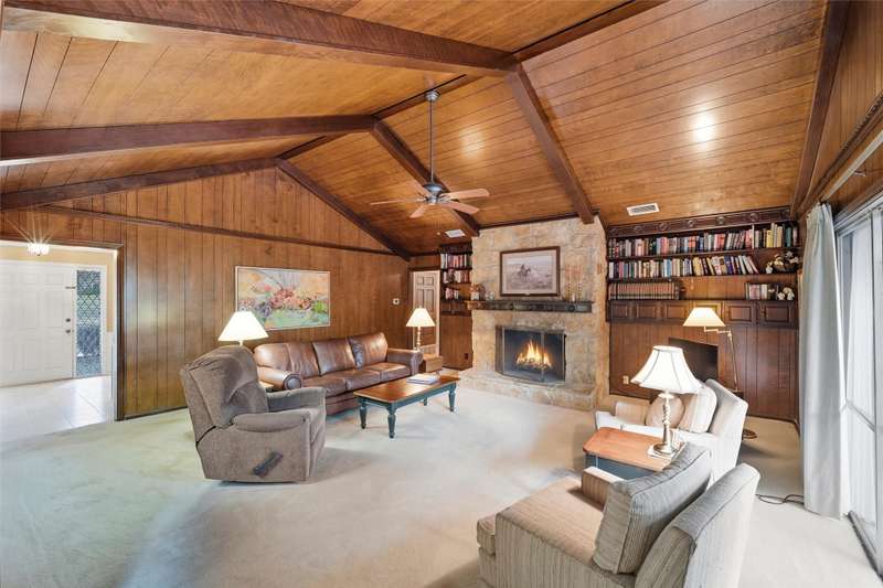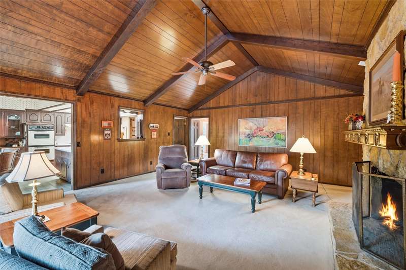 Coveted Shady Valley Estates one-story home is ready to find it's new owners! Hills and trees abound in this neighborhood where people tend to stay awhile. This lovely traditional home has such spacious rooms and a fantastic floor plan featuring an expansive family room with a beamed vaulted ceiling,and a large stone fireplace with built-in shelves anchoring each side. So much space to show off photos, treasured decorative items and-or books! Large sliding doors provide peaceful views and lead to a wood deck and the huge backyard! Several trees bring shade to the enormous yard beyond the driveway! Upon entering, a spacious entry with two coat closets sits between formal dining and living spaces. The front living room would make a great office! The kitchen has an open pass-through to the family room and renovation possibilities abound! The primary suite is enormous, offering plenty of options for renovations here, too! There's a fourth bedroom with a private en-suite bathroom on the same side as the primary suite. This room situation would make a great multi-generational family option. Two good-sized bedrooms and another full bathroom are found on the other side of the home. Don't miss this opportunity to bring this lovely home back to life and enjoy the good life in Shady Valley Estates!