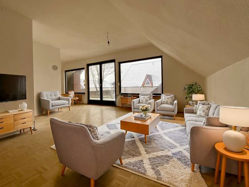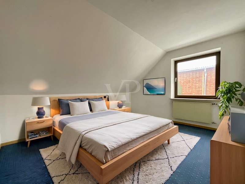 With this property, Von Poll Immobilien Hannover Region Süd offers you a spacious two-family house on a 764 m² plot. The house was built in 1983 in solid construction and, with a living space of approx. 189 m², offers a wide range of possible uses. Whether as a spacious single-family home for a large family, as a multi-generational home or as a two-family home for the live-and-let concept, this property impresses with its flexible room layout and the potential for individual conversion. As a two-family home, the house offers two small families or two generations a cozy home. The basis for this are 2 apartments, each with a spacious living/dining room, two bedrooms, a kitchen and a bathroom on the first floor and two bathrooms on the first floor. On the first floor there is also a further room including a shower room. This area is located in front of the apartment and is therefore a refuge for guests or an adult child. The approx. 40 m² living area on the first floor is particularly noteworthy. This living center is separated into two living zones by a wide passageway and offers space for both the long dining table and the cozy couch corner in front of the homely fireplace. The double-leaf patio door provides access to the garden and, like the two wide window fronts, lets in plenty of sunlight. The bathroom, which is located between the two bedrooms, will delight you. The bathroom was completely redesigned in 2023 using high-quality materials and is barrier-free. It offers maximum comfort: a floor-level rainforest shower with a wide glass partition, underfloor heating and towel warmer ensure a refreshing shower experience. The lighting and ventilation are automatically controlled. The apartment on the 1st floor awaits you with an equally spacious living ambience. The approx. 30 m² studio in particular impresses with its wide window front, which floods the room with natural light and offers the opportunity to step out onto the partially covered balcony in front. The balcony stretches across the entire width of the house and was recently redesigned. A guarantee for relaxing hours outdoors! In winter, a wood-burning stove in the studio could provide additional warmth - the necessary chimney connection is available. The size of the kitchen allows for flexible furnishing scenarios, for example a dining area could also be integrated here. If you would like to use the house as a large family, there are a variety of redesign options. Family life could take place on the first floor. In this case, the adjoining room could be added to the kitchen, thus meeting the demand for an open, modern solution. The apartment on the 1st floor could become the sleeping area. The studio becomes a luxury bedroom with an integrated dressing area and the kitchen, like the other two rooms, is set up as a children's room. Two bathrooms avoid the morning traffic jam in front of the bathroom door. In the spacious basement, next to the boiler room and the laundry room, there is a party room with a bar that invites you to celebrate with friends. 2 radiators provide the necessary coziness here. Four practical storage rooms and a further shower room round off the space available in the basement. One of the rooms is equipped with a radiator and - in combination with the bathroom - could be used almost perfectly as a retreat for your guests. Direct access from the basement to the garage is very convenient. Two further garages with additional storage space are located on the property. Overall, this two-family home offers a bright and spacious living atmosphere with versatile usage potential. An interesting opportunity to acquire a comfortable home that can be adapted to different living requirements!